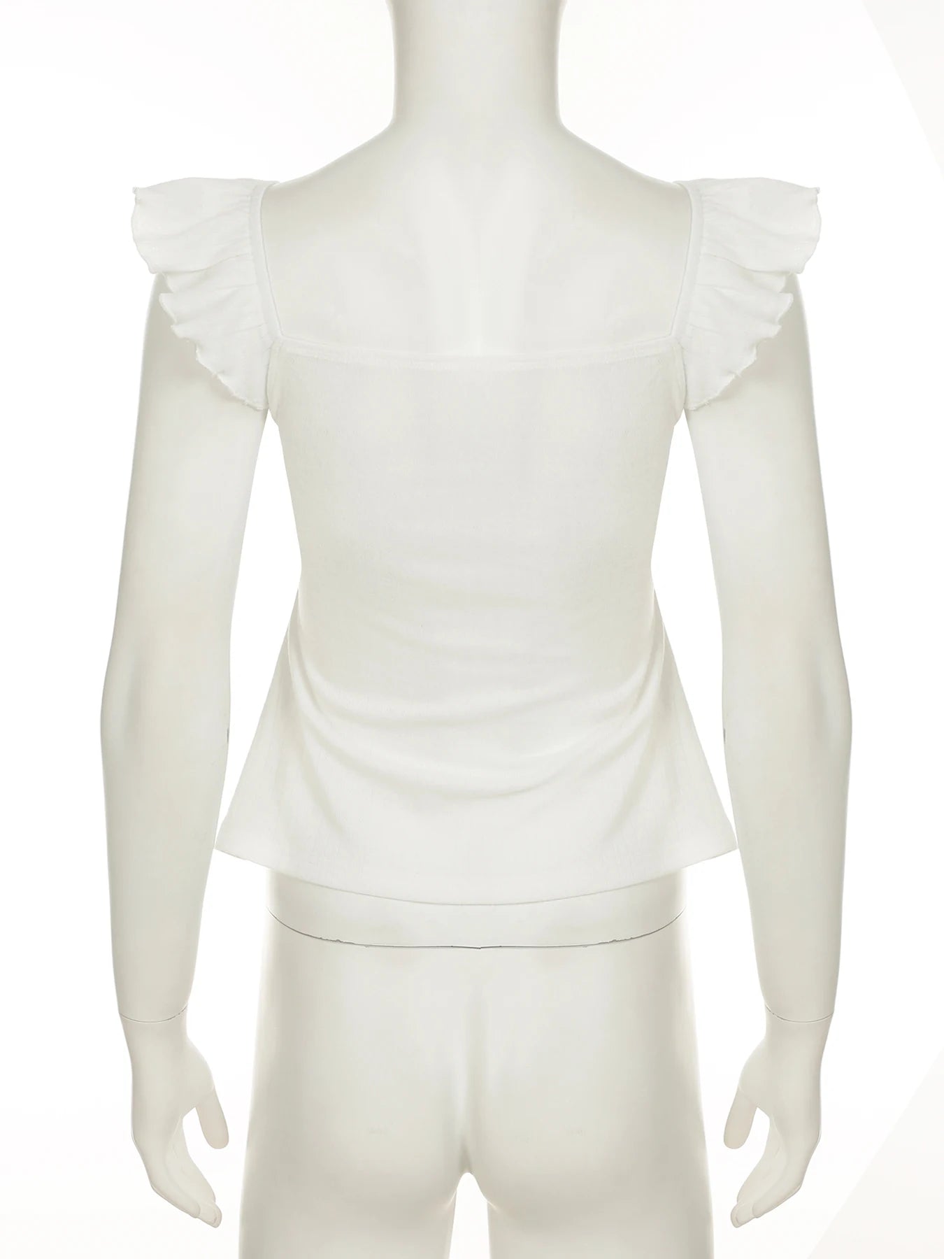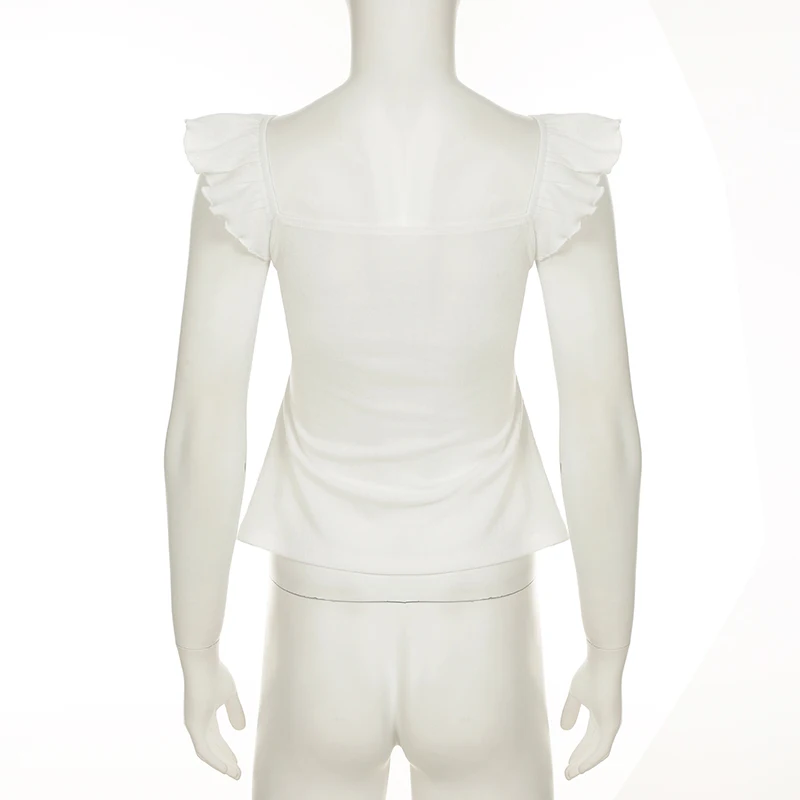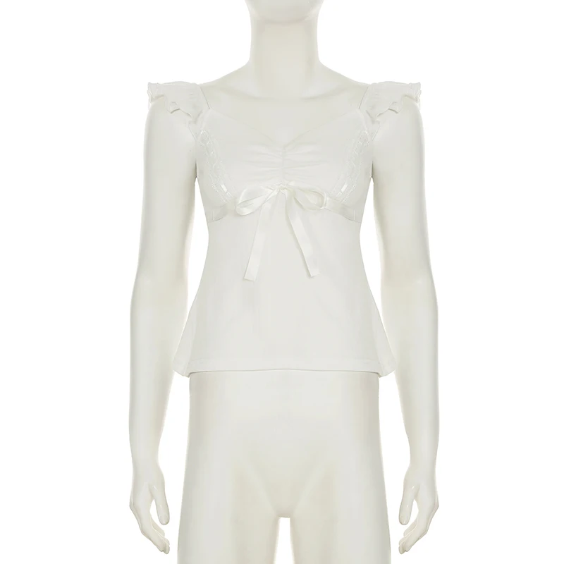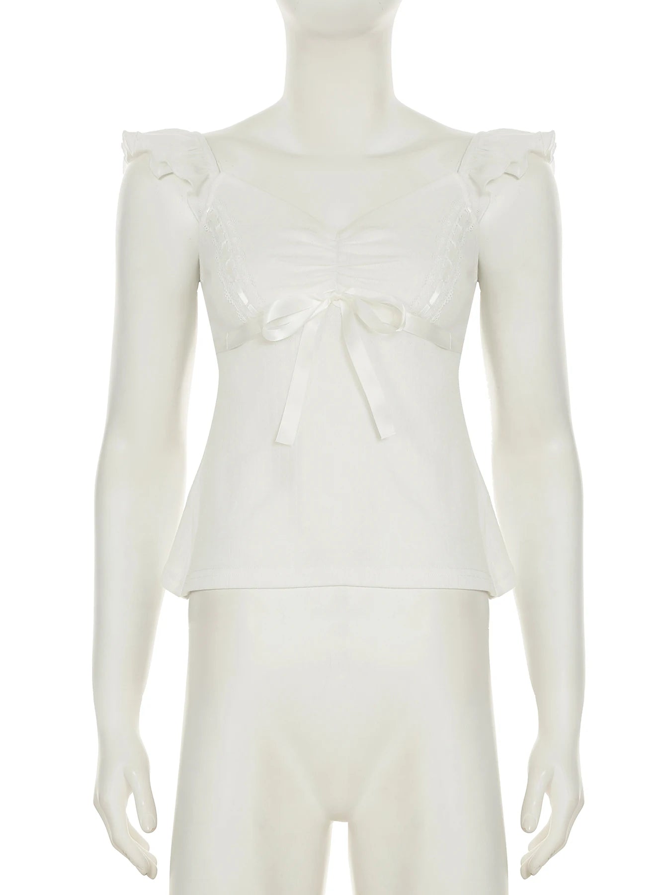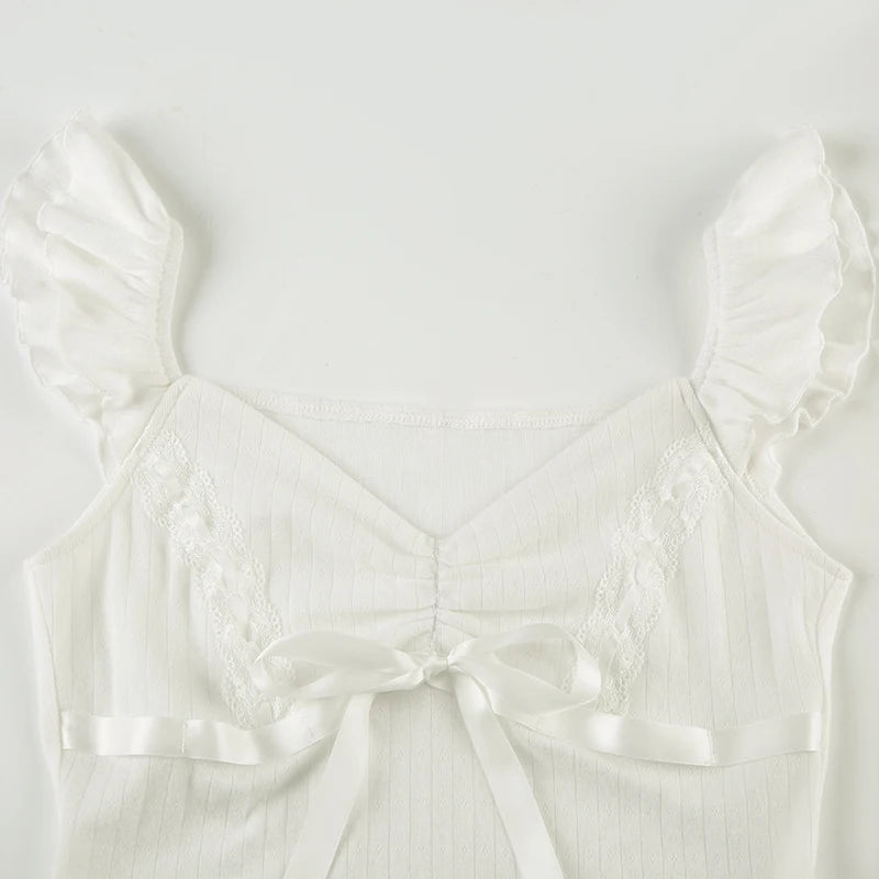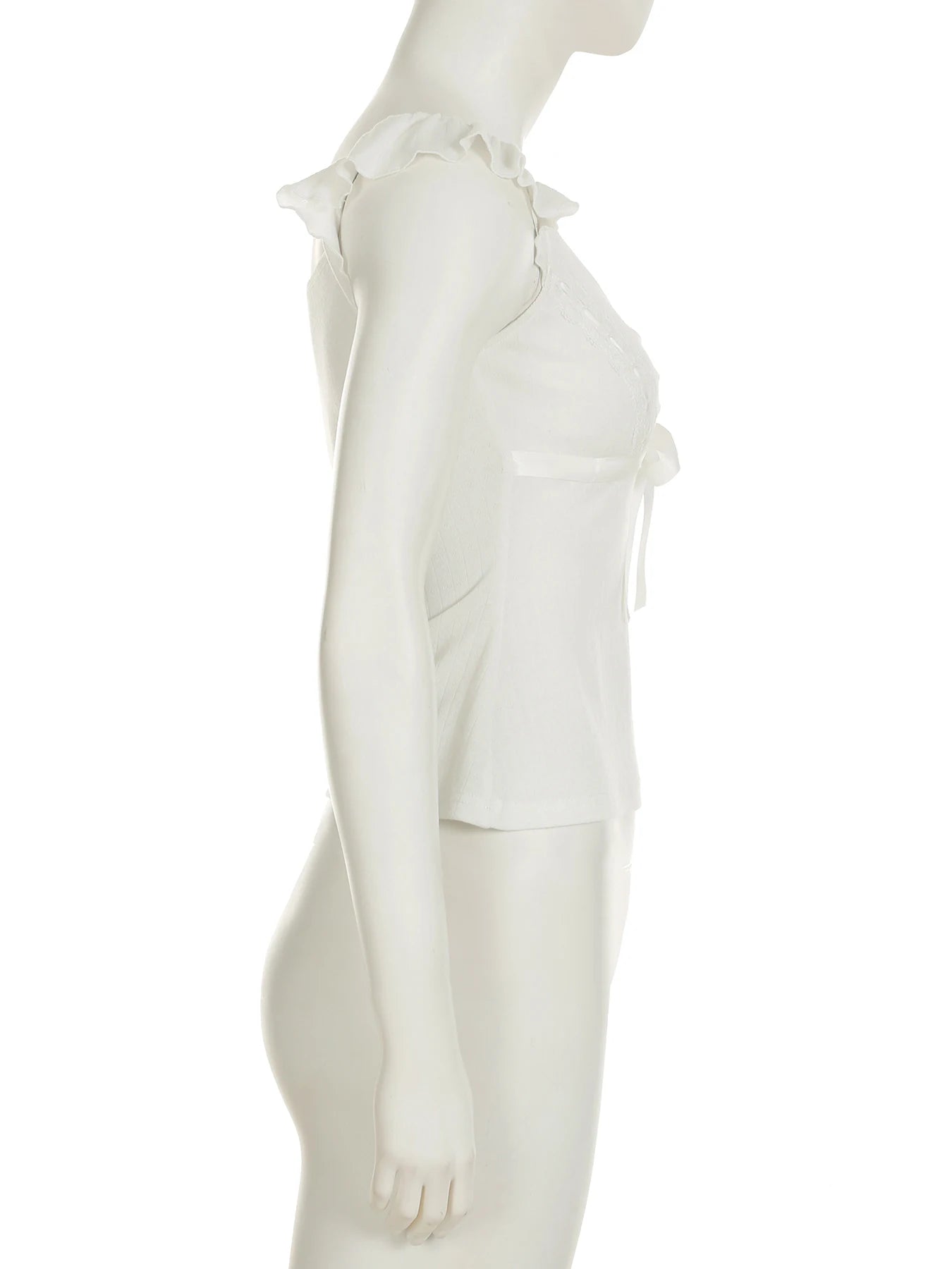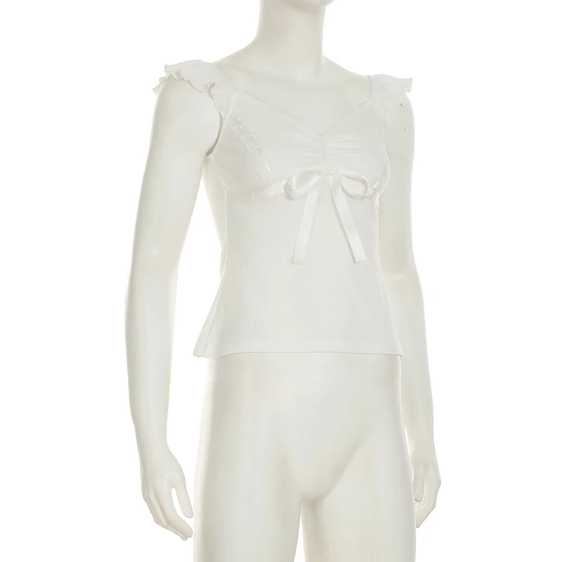 Cyflymder Sweet Bow Bandage Folds Tank Tops Holiday Casual Slim Solid Square Collar V-Neck Tops Women 2025 Summer Fashion Lady