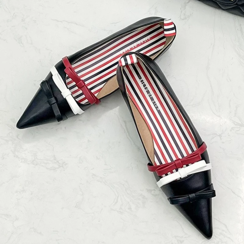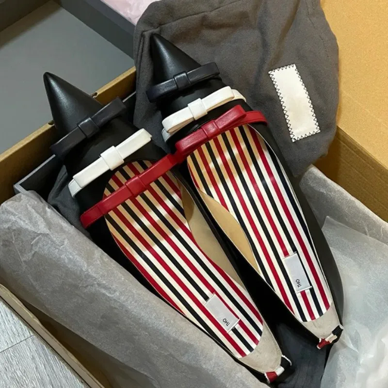 Cyflymder Sweet Bow Mixed Color Pointed Toe Designer Shoes Women Comfort Shallow Flats Elegant Dress Party Shoes Ladies Zapatos De Mujer