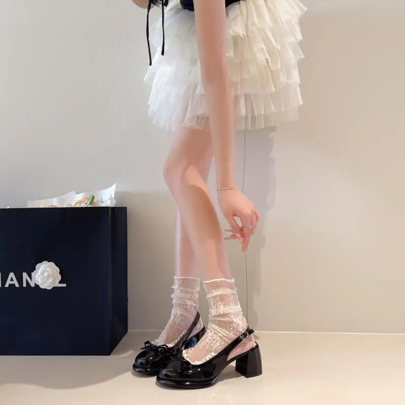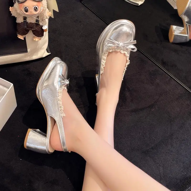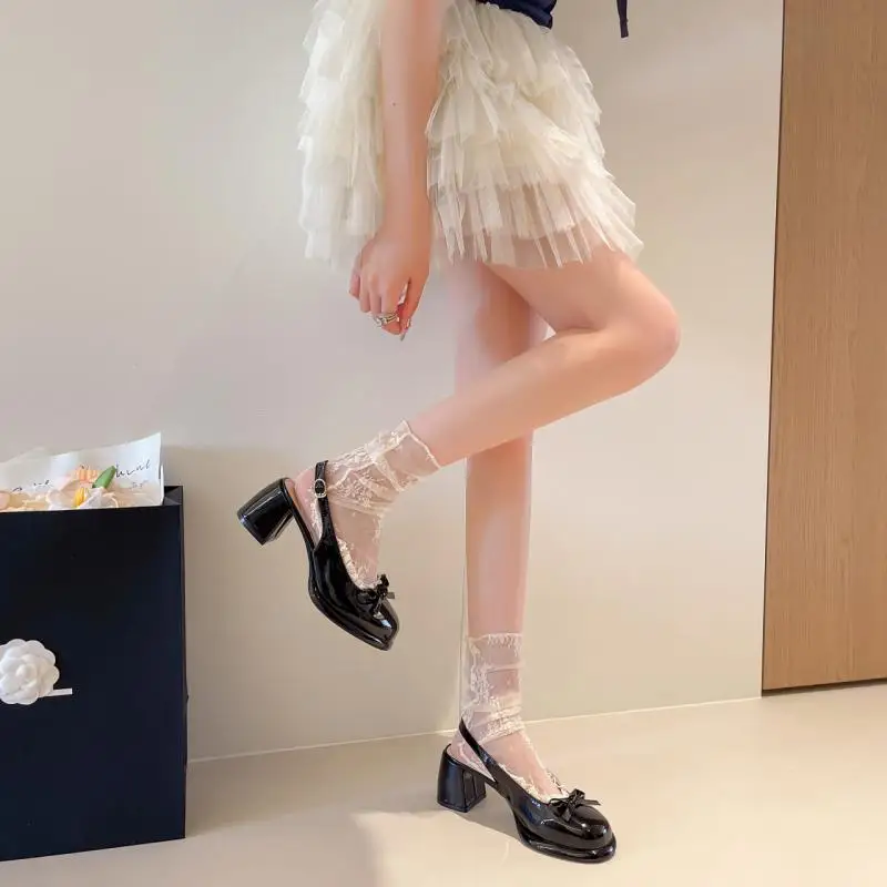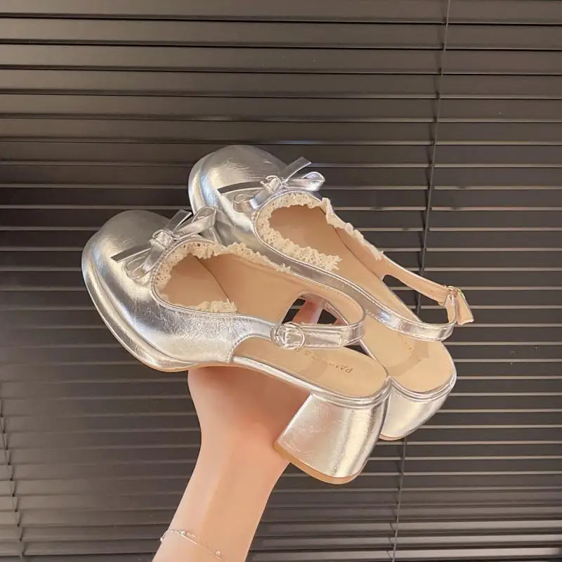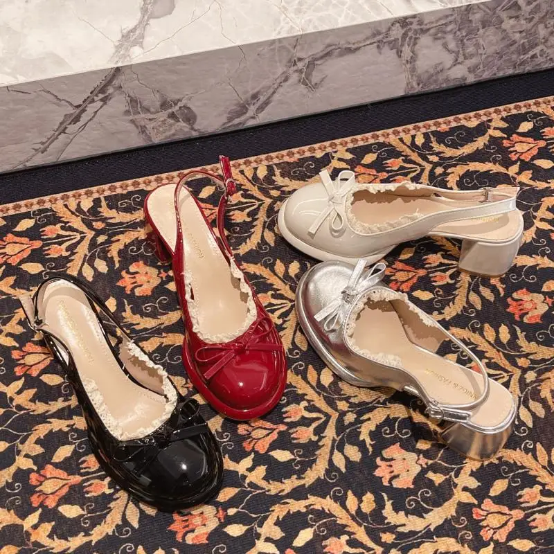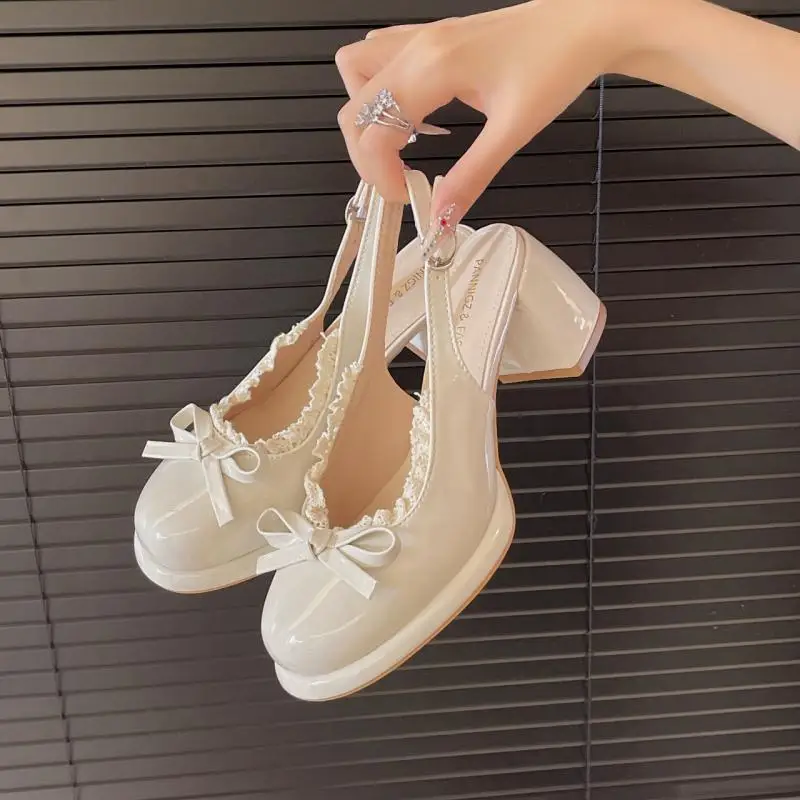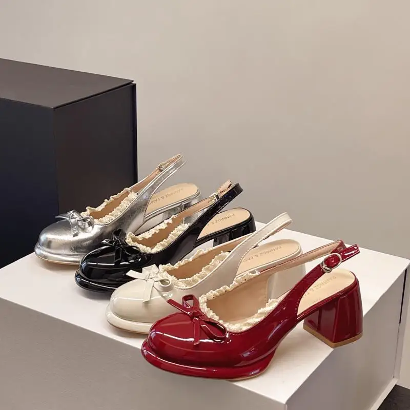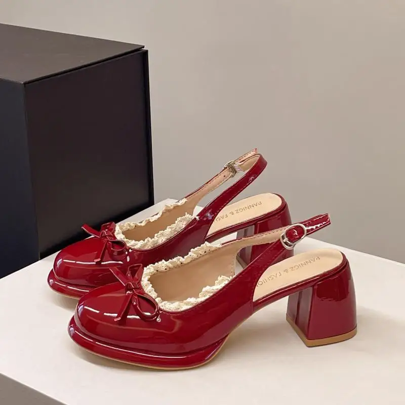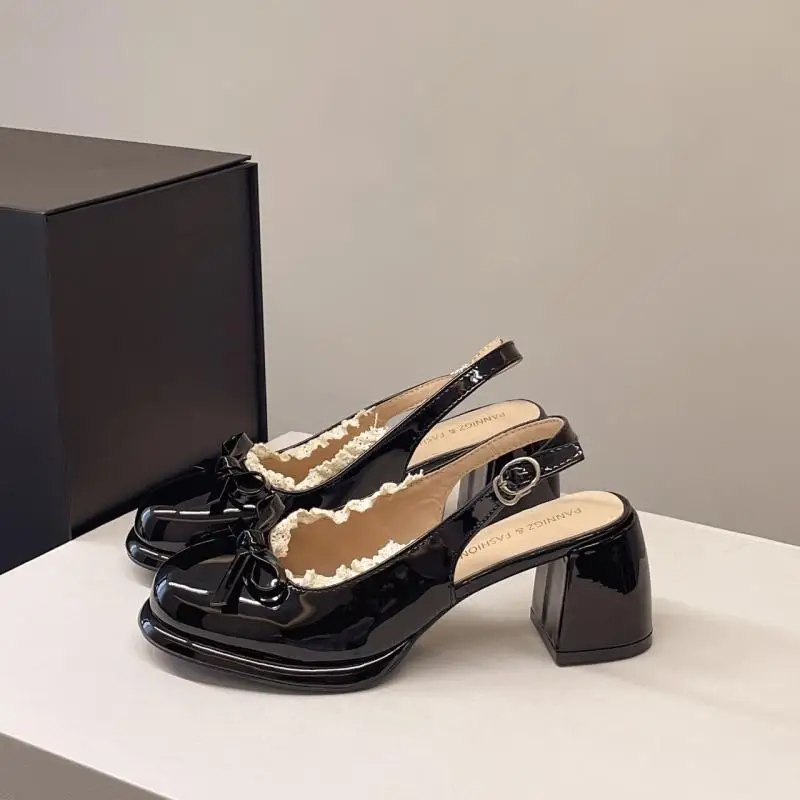 Cyflymder Sweet Bowknot Patent Leather Mary Jane Shoes Women Summer Pointed Toe High Heel Sling Back Pumps Fashion Party Dress Shoes