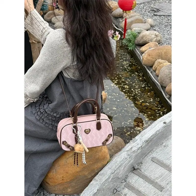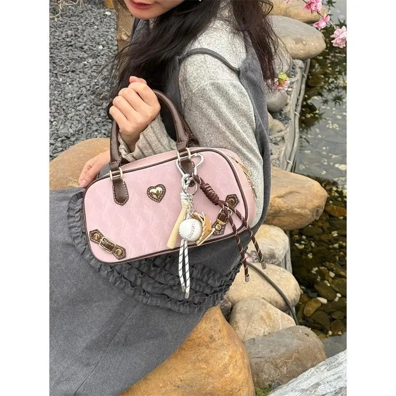 Cyflymder Sweet Cool Pink Square Bag Purse Women High Street Handle Bowling Messenger Bag Female Casual Crossbody Bags Aesthetic