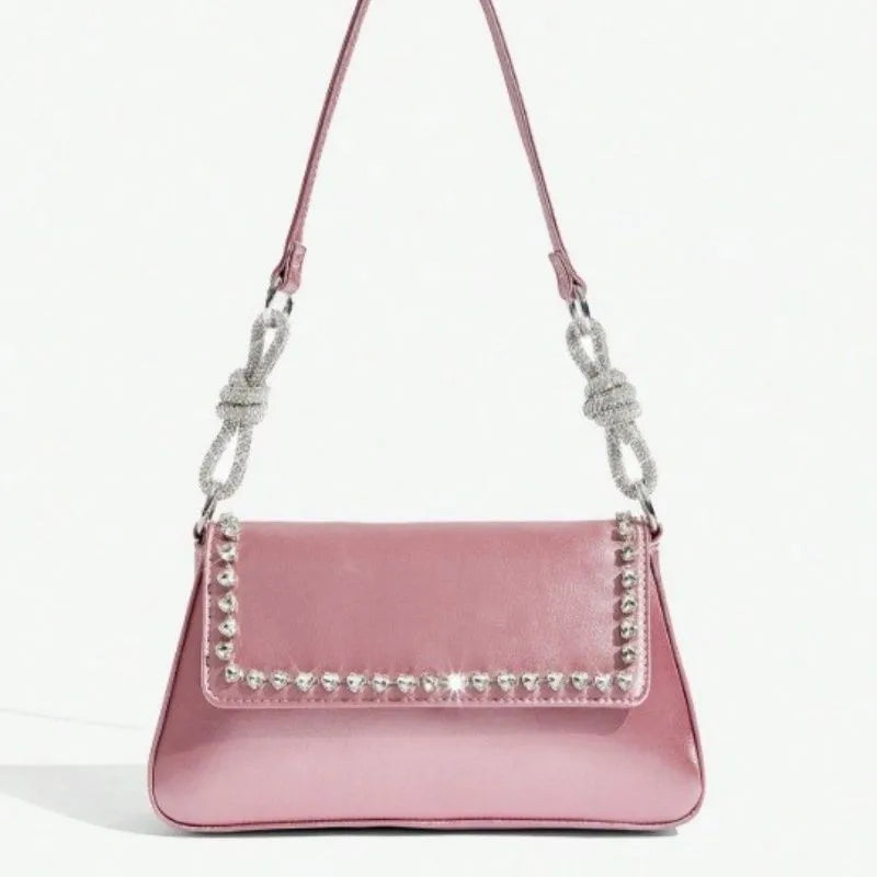 Cyflymder Sweet Cool Pink Y2k Bags Women Hot Girls Leather Handle Pillow Bag Purse Ladies Vintage Diamond-Encrusted Shoulder Bag