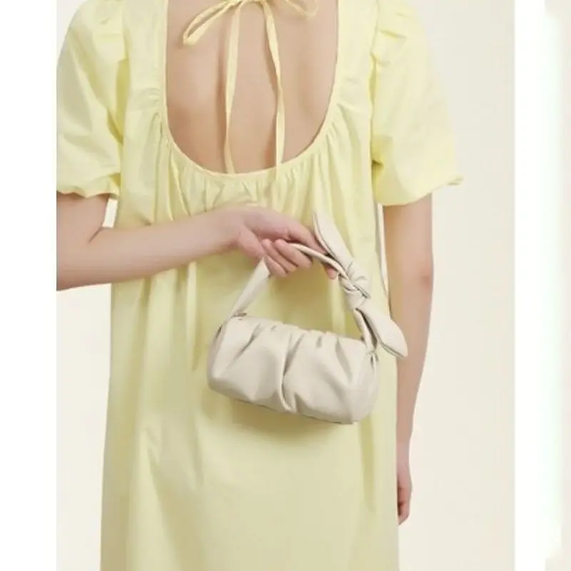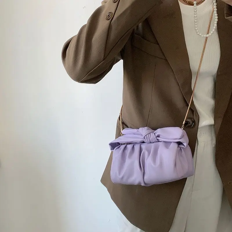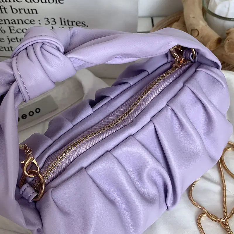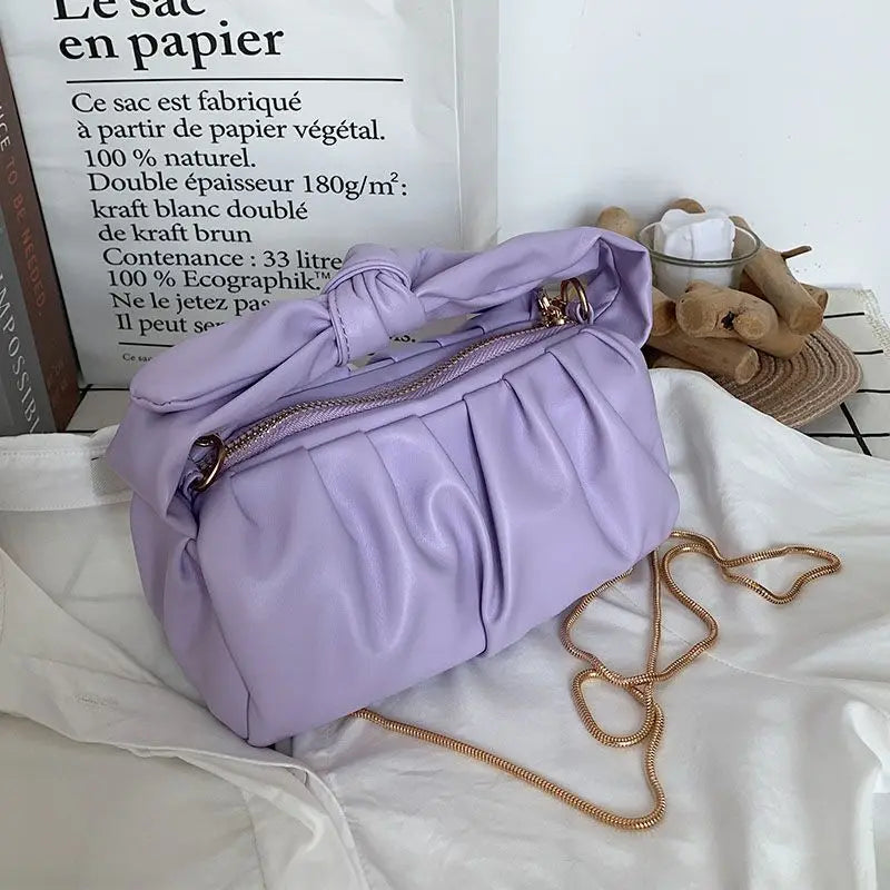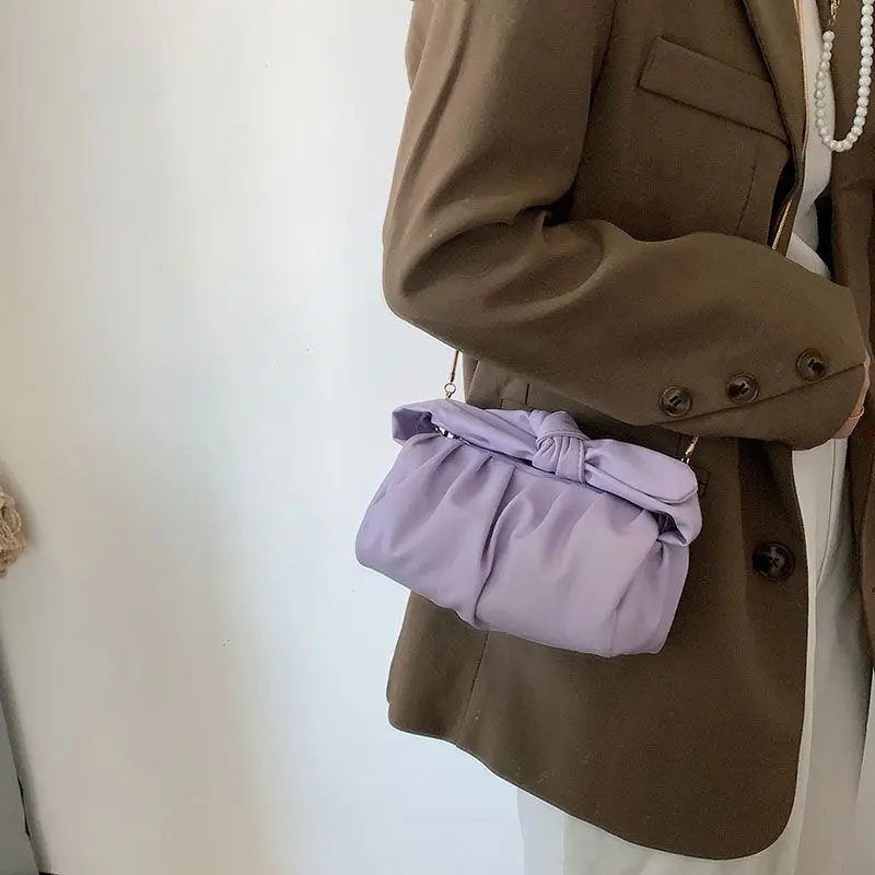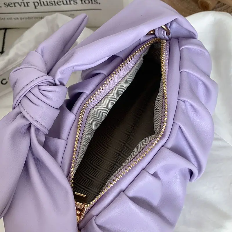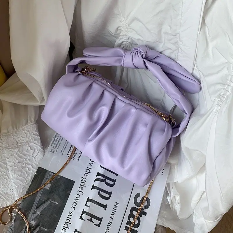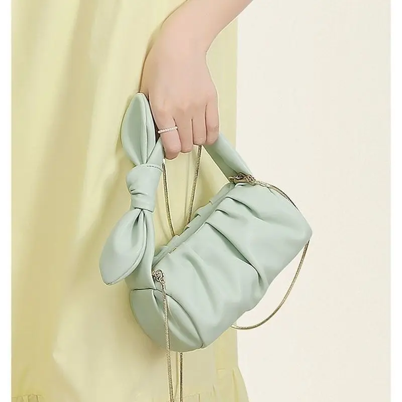 Cyflymder Sweet Cute Handbag Women Versatile Pleated Cloud Bag Bow Handle Ladies Minimalist Design Chain Shoulder Bag Chic 2025
