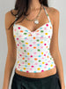 Cyflymder Sweet Dot Printed Halter Tops Sexy Slim Bandage Slash Neck Sleeveless Tank Tops Women 2025 Summer Fashion Streetwear