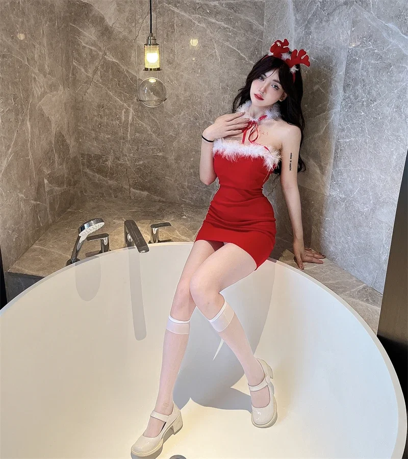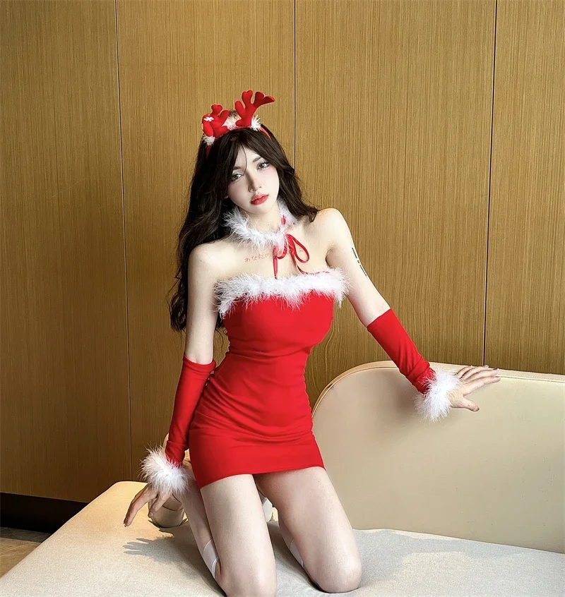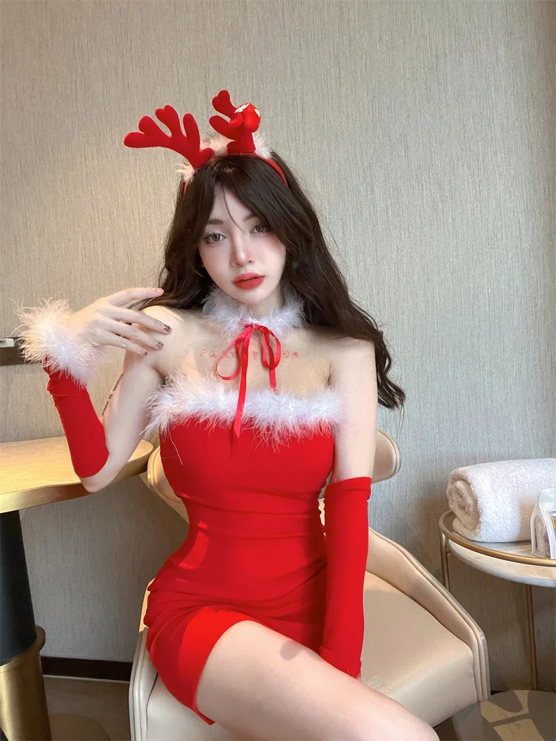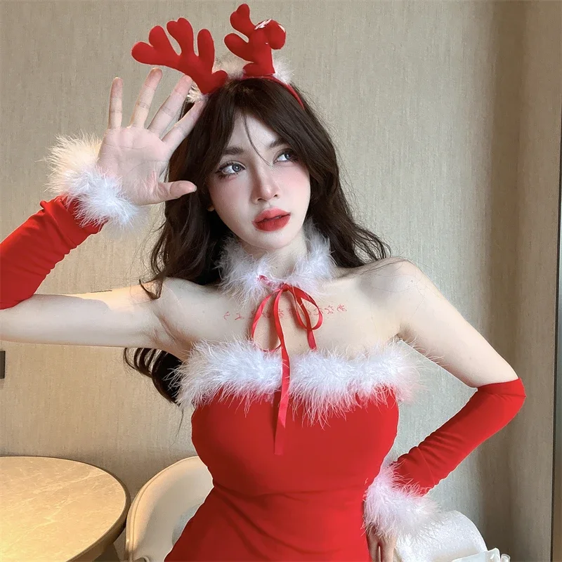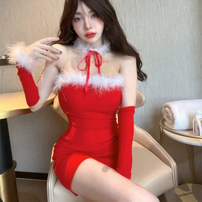Cyflymder Sweet Hot Girl Christmas Tight Hip Wrap Dress Women's Autumn/winter Sexy Off Shoulder Long-sleeved Dress Fashion Female Clothes