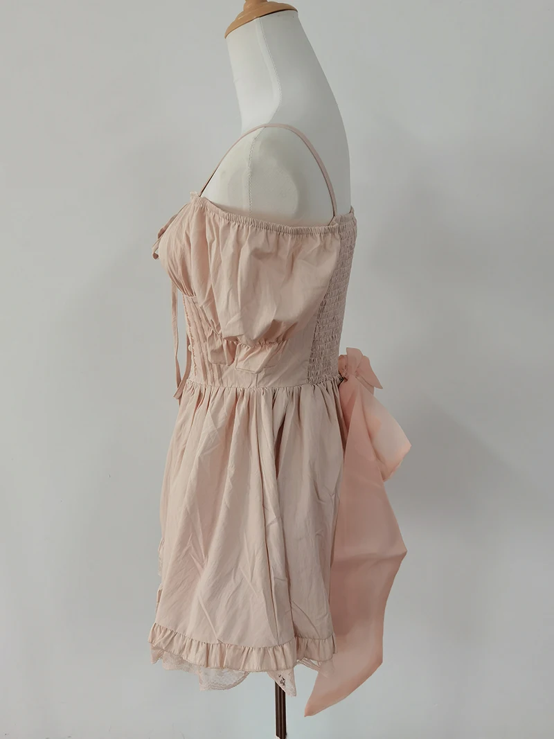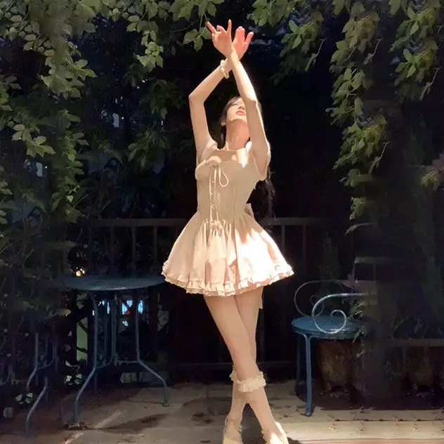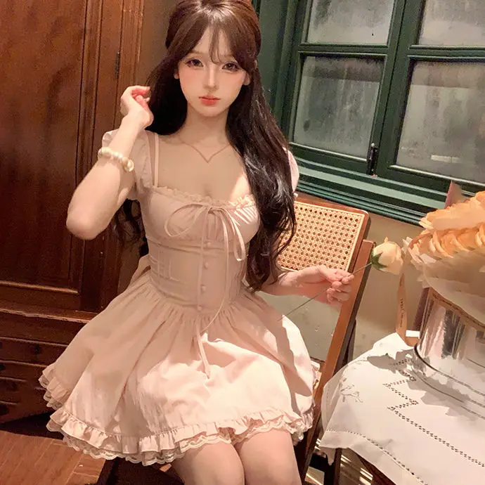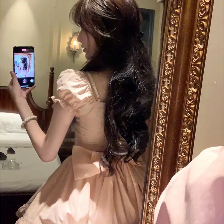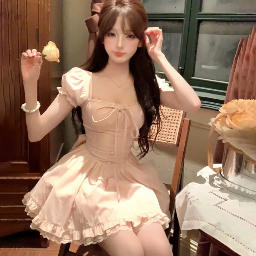 Cyflymder Sweet Hot Girl Pure Sexy Bow Square Collar Dress for Women's Summer Slim Fit A-line Short Dress Fashion Female Clothes
