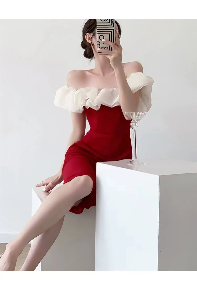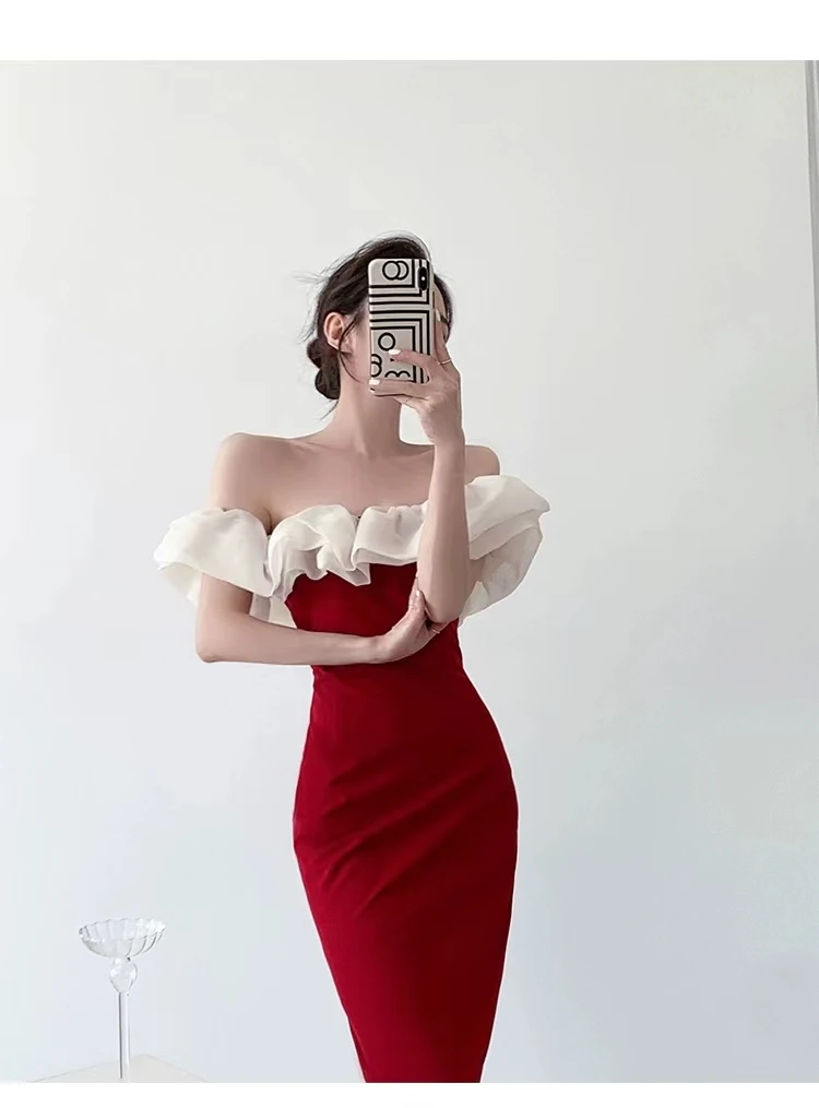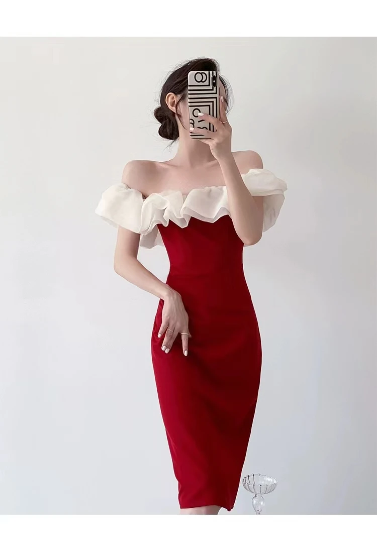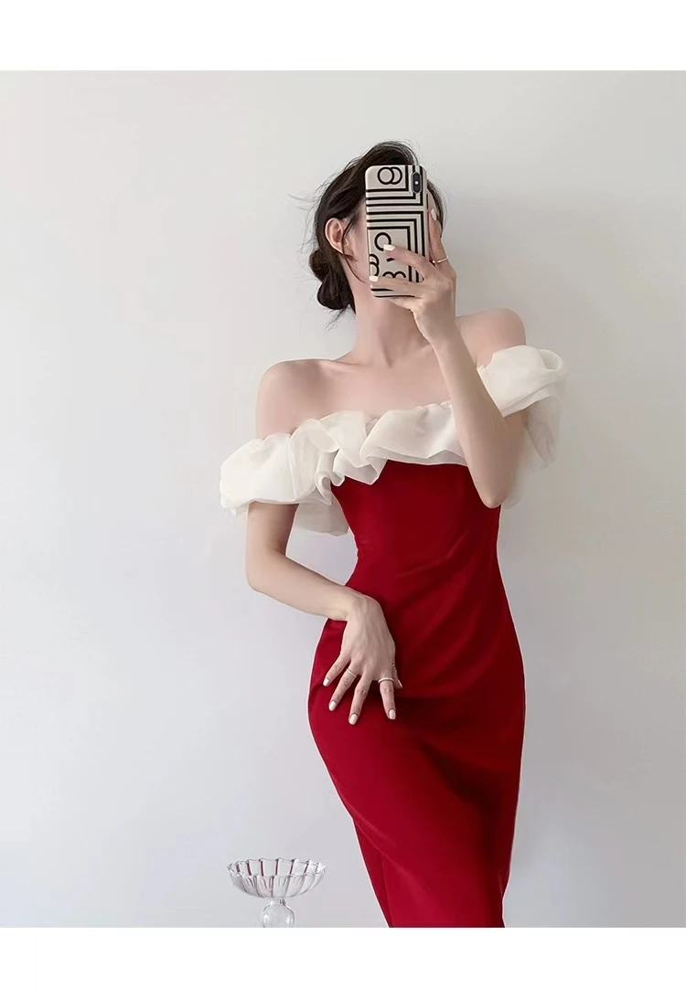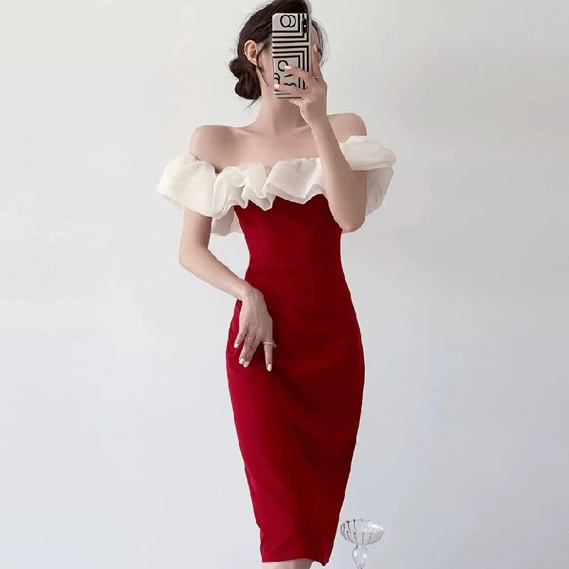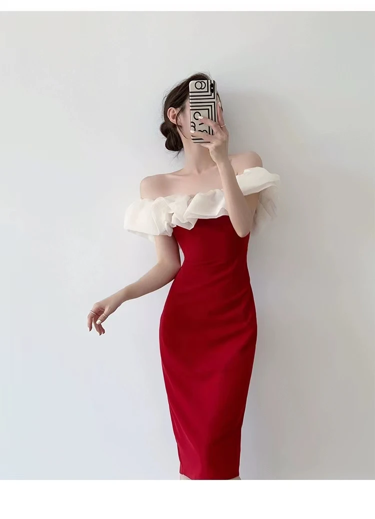 Cyflymder Sweet Hot Girl Pure Sexy Off Shoulder Dress for Women's Summer Slash Neck Slim Fit Party Dress Fashion Female Clothes
