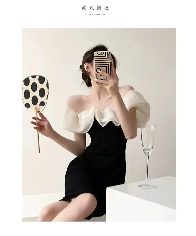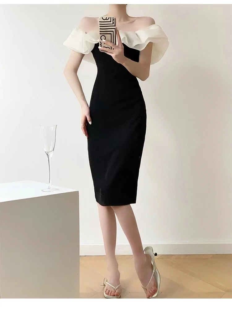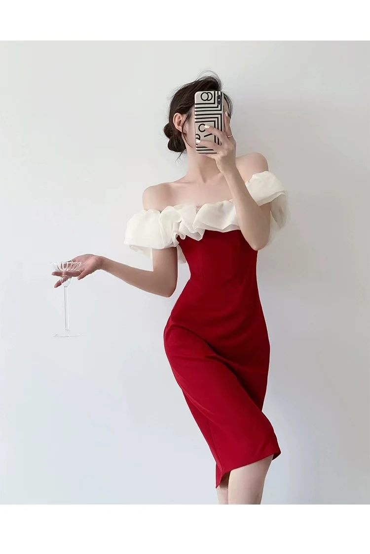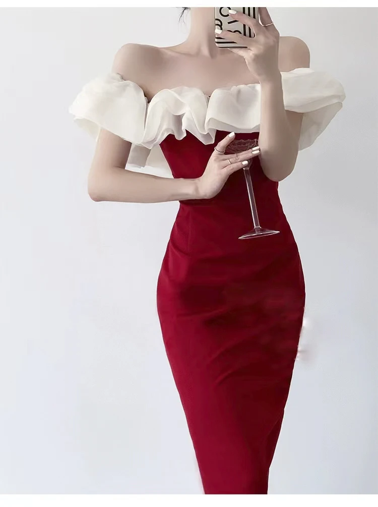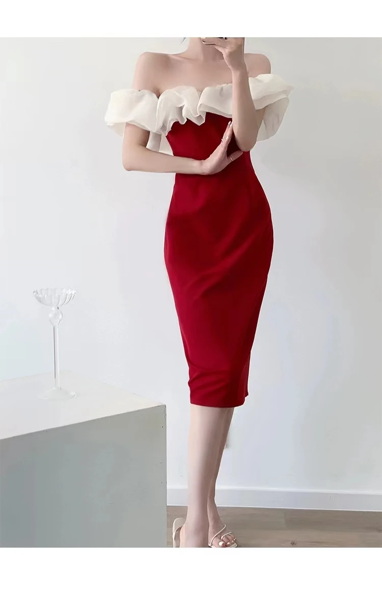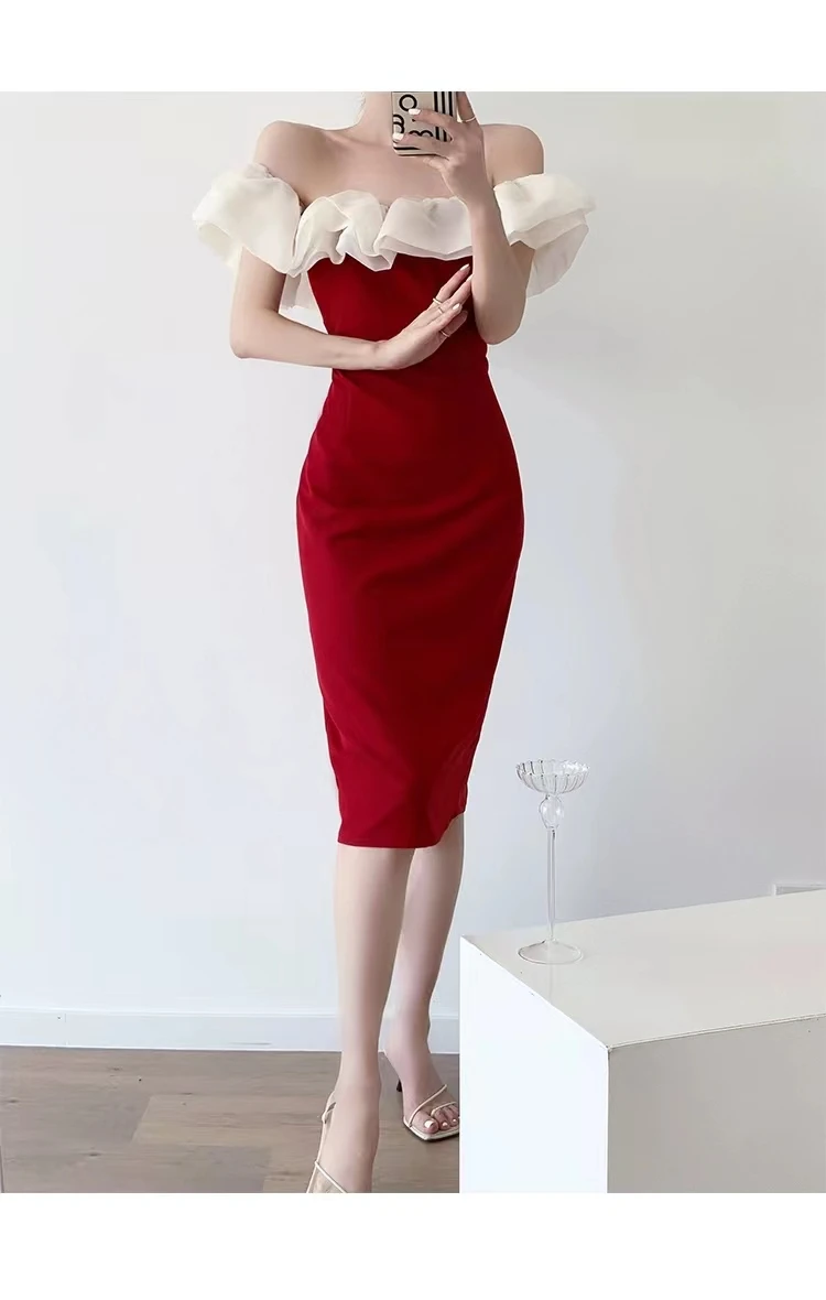 Cyflymder Sweet Hot Girl Pure Sexy Off Shoulder Dress for Women's Summer Slash Neck Slim Fit Party Dress Fashion Female Clothes