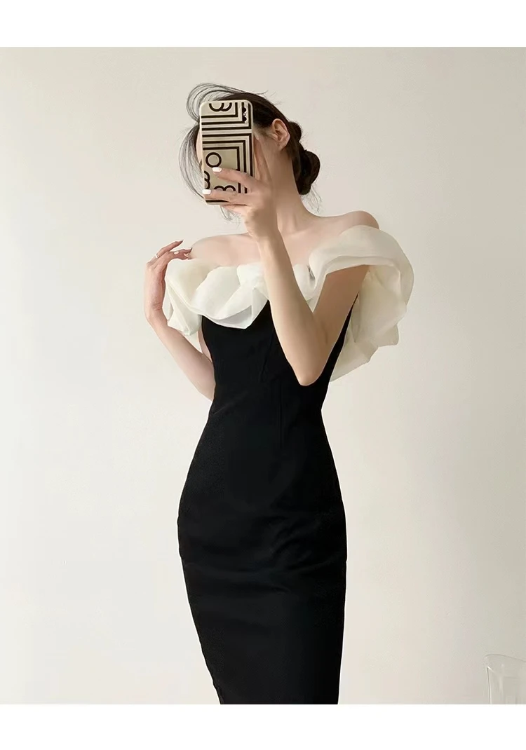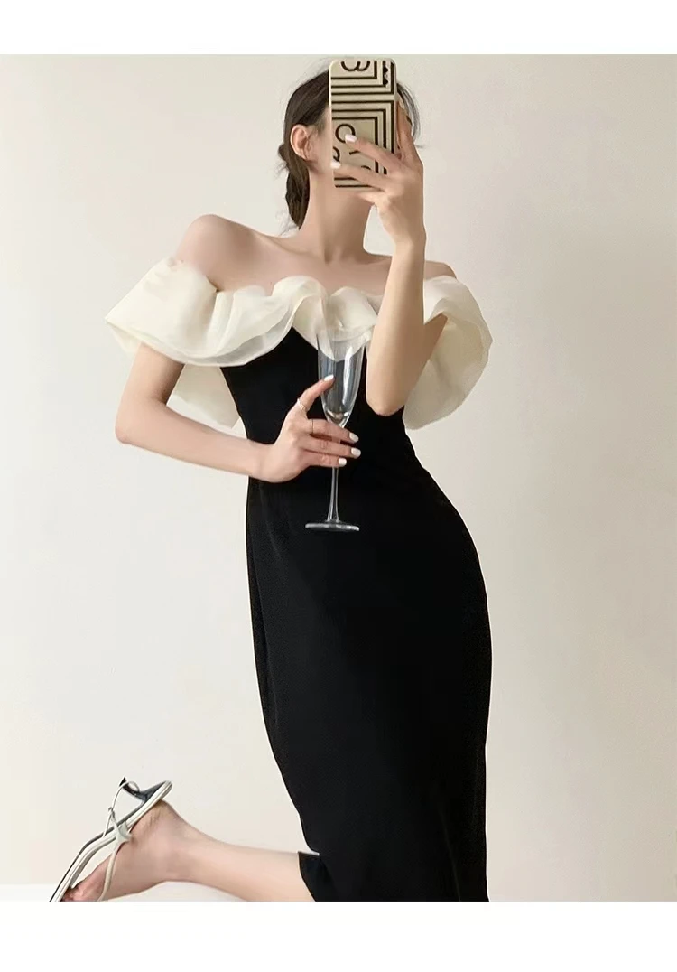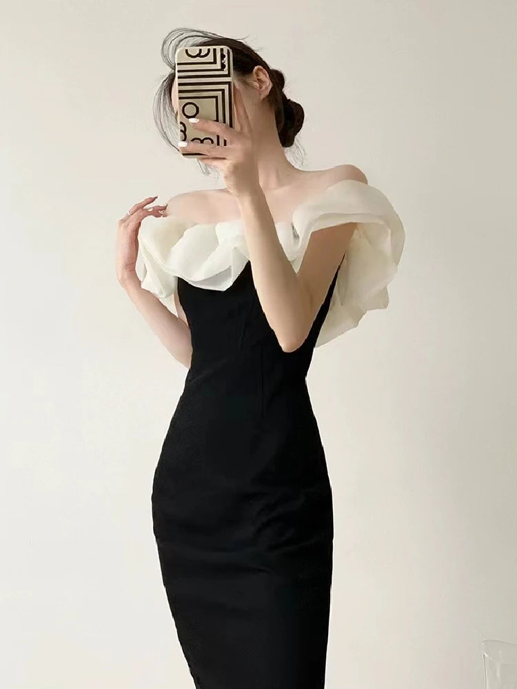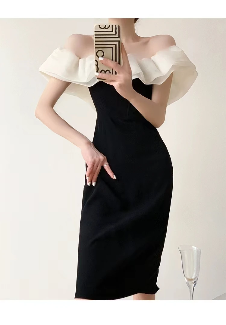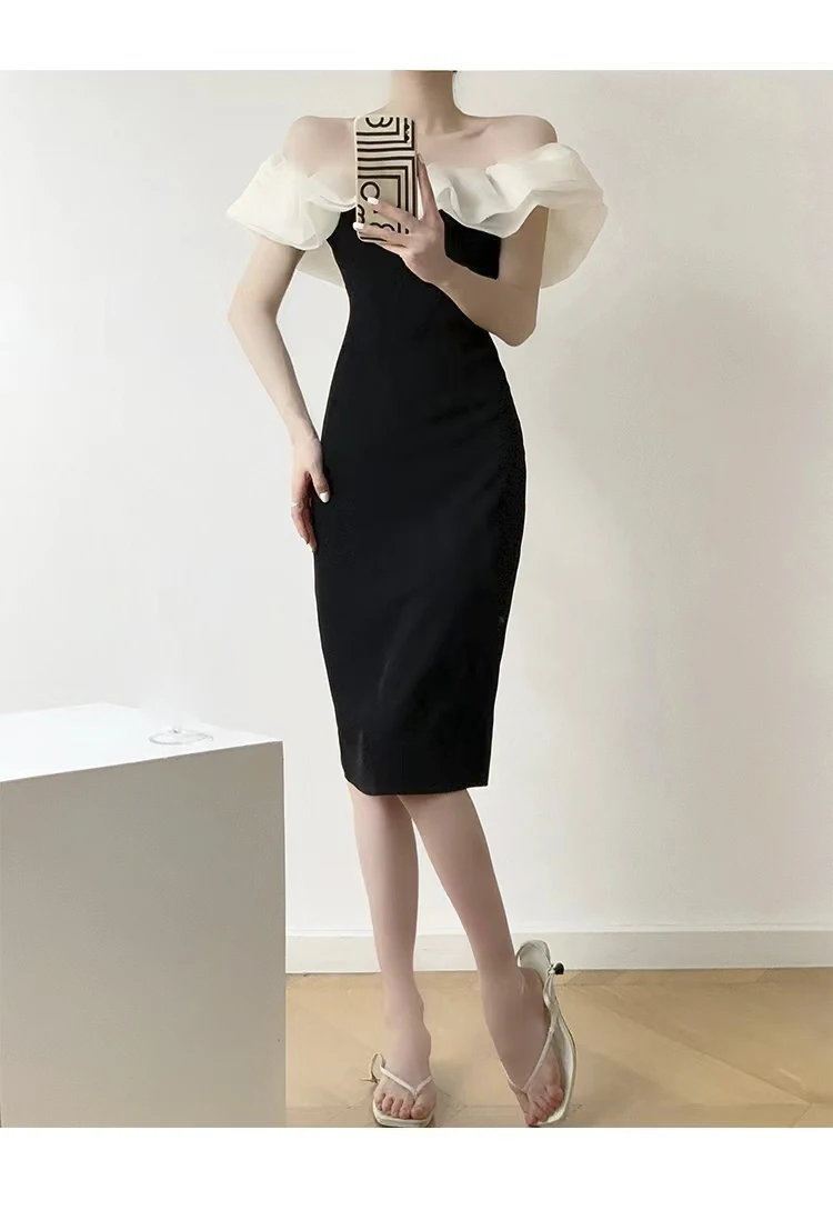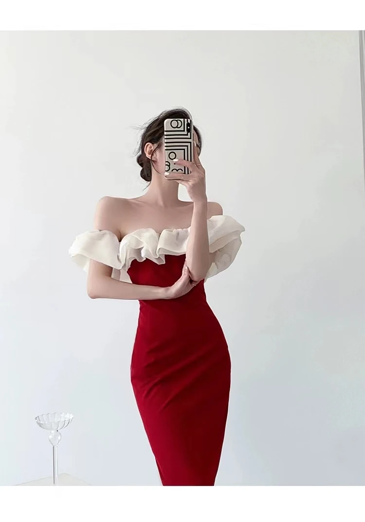 Cyflymder Sweet Hot Girl Pure Sexy Off Shoulder Dress for Women's Summer Slash Neck Slim Fit Party Dress Fashion Female Clothes