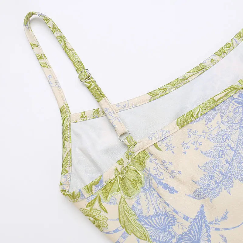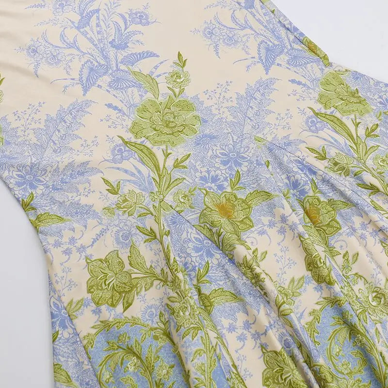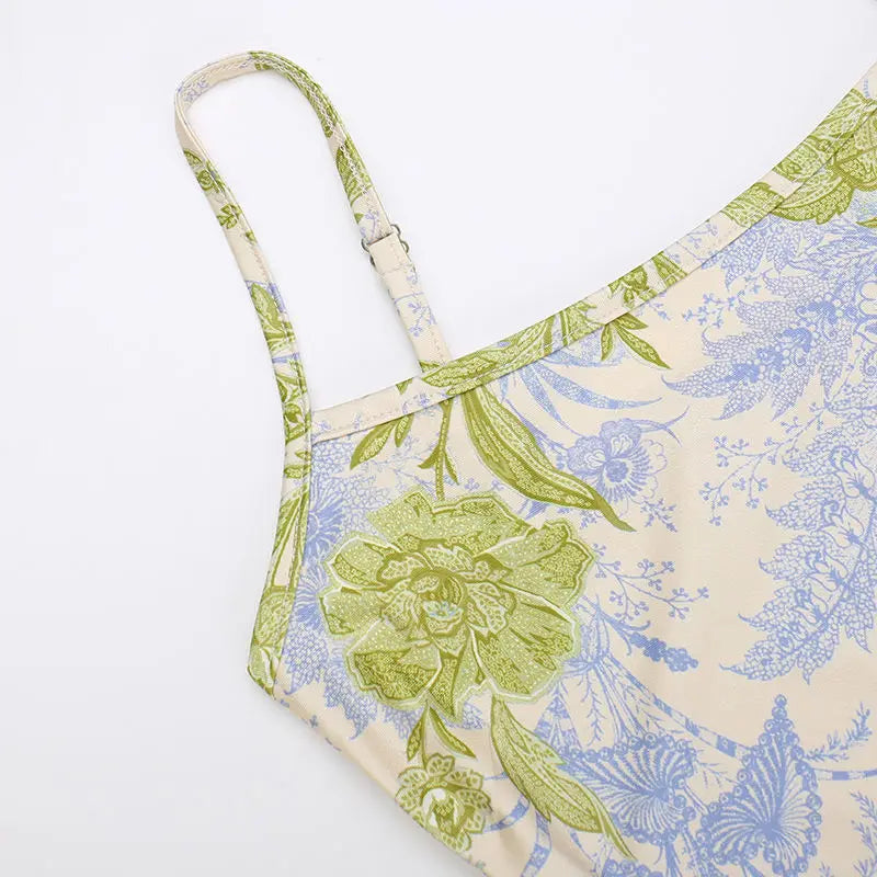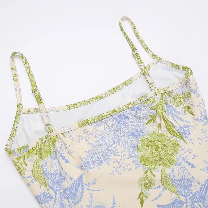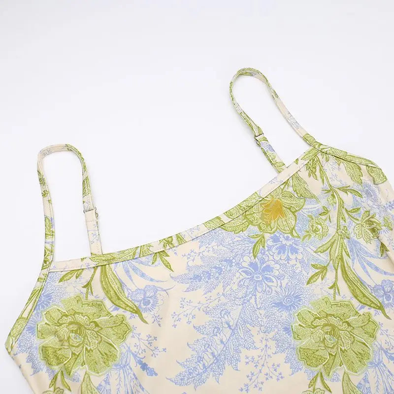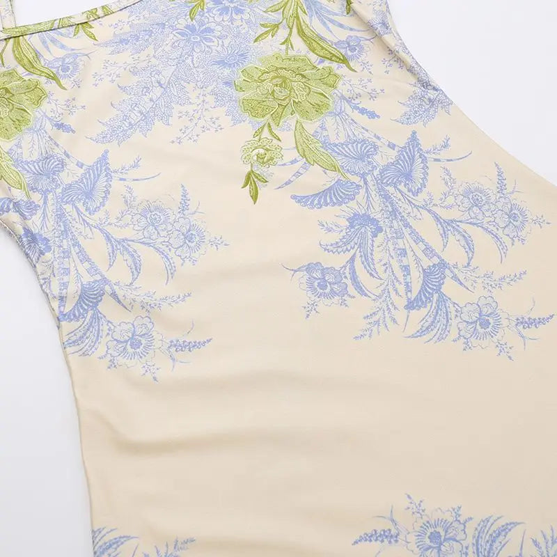 Cyflymder Sweet Hot Girl Pure Sexy Printed Strap Dress for Women's Summer Retro Square Collar Slim Fit Mermaid Long Dress Female Clothes