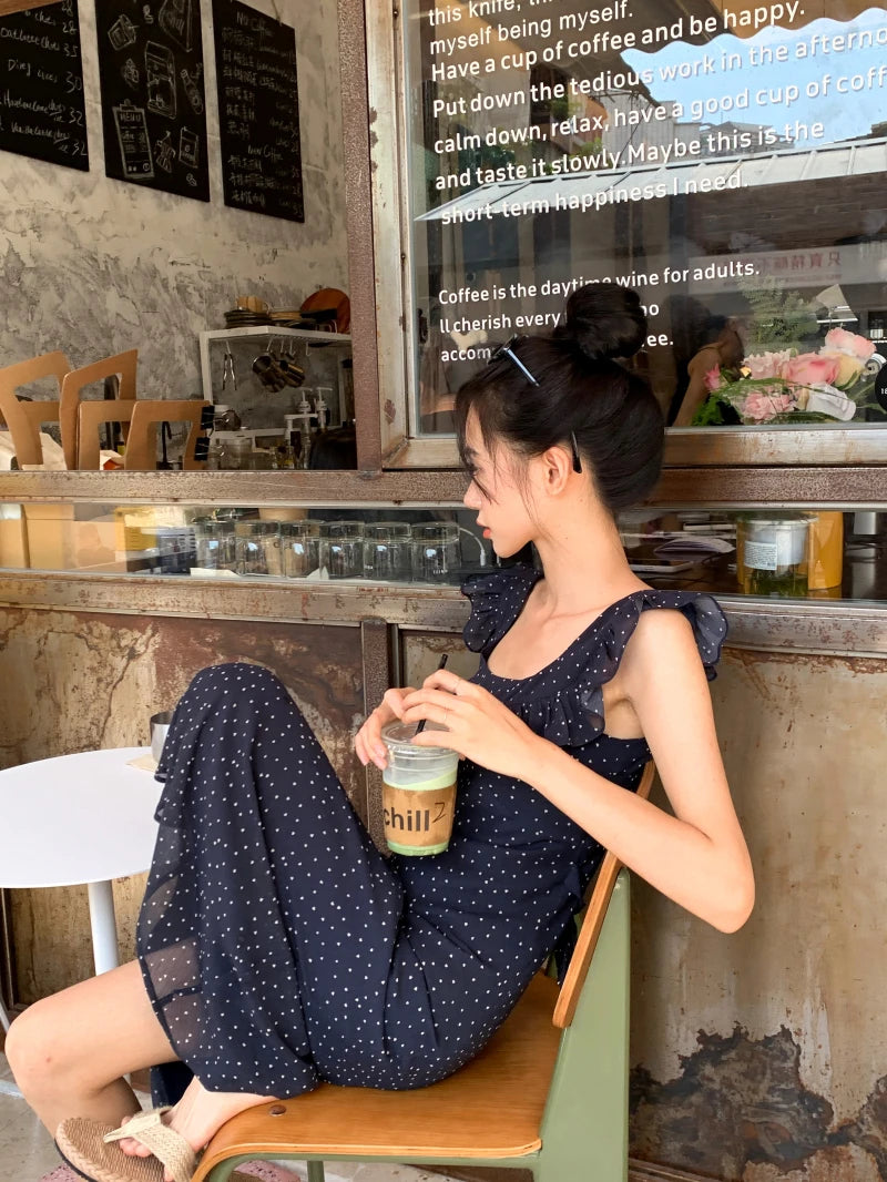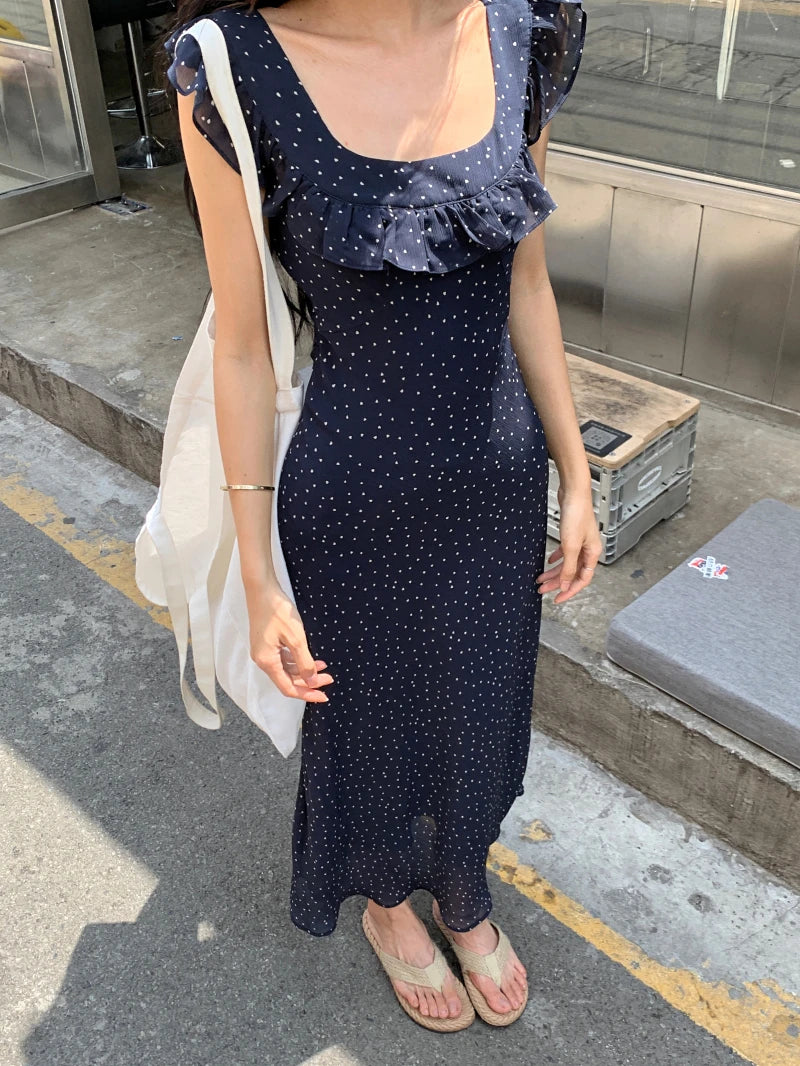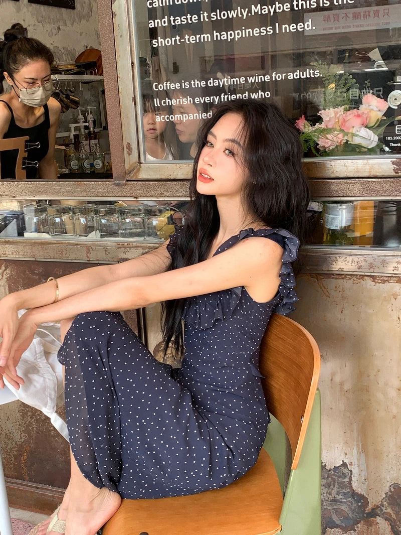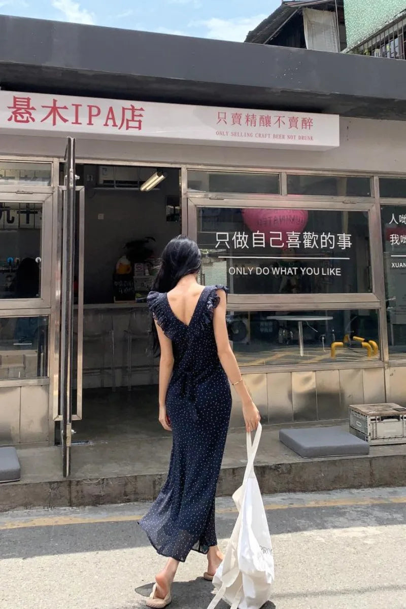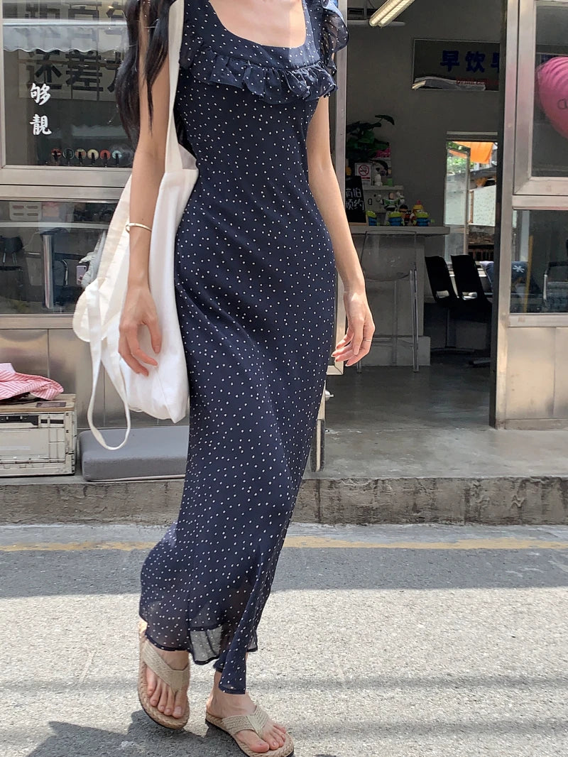 Cyflymder Sweet Hot Girl Pure Sexy Ruffled Short-sleeved Dress Women's Summer Backless Polka Dot Mid-length Dress Fashion Female Clothes