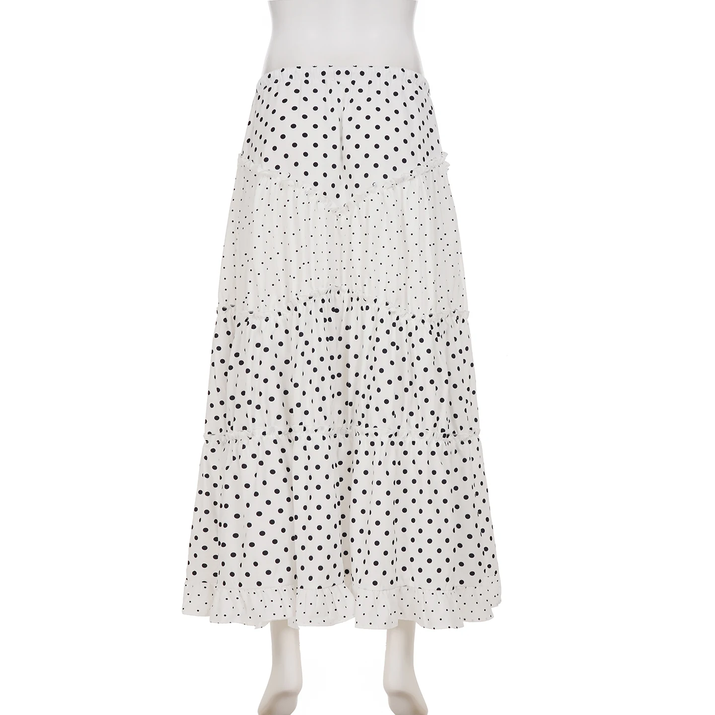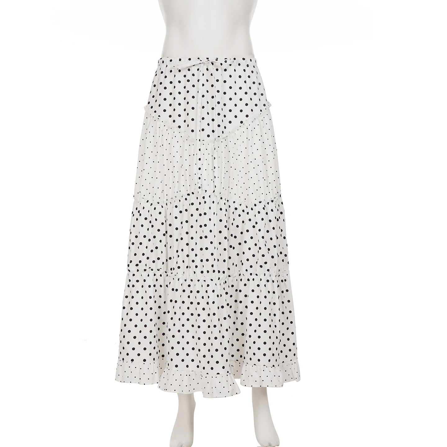 Cyflymder Sweet Patchwor Lace Ruched A-Line Skirts Holiday Casual Mid-Waisted Maxi Skirts Women Summer Fashion Streetwear