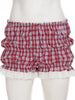 Cyflymder Sweet Plaid Lace Trim Low-Waisted Shorts Slim Patchwork Low-Waisted Shirts Women Summer Fashion Streetwear Ladies