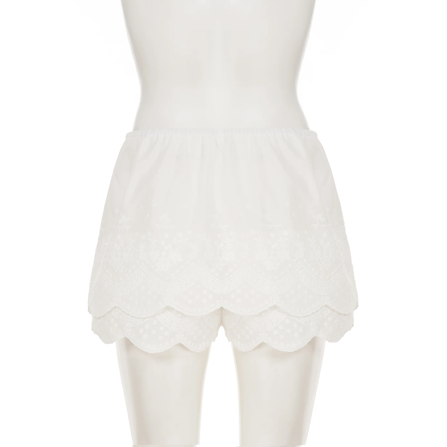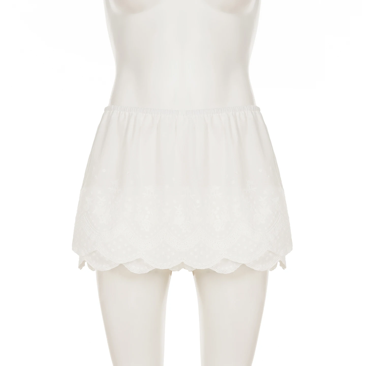 Cyflymder Sweet Solid Lace Trim A-Line Skirts With Shorts Holiday Slim Mid Waist Mini Skirts Women 2025 Summer Fashion Streetwear