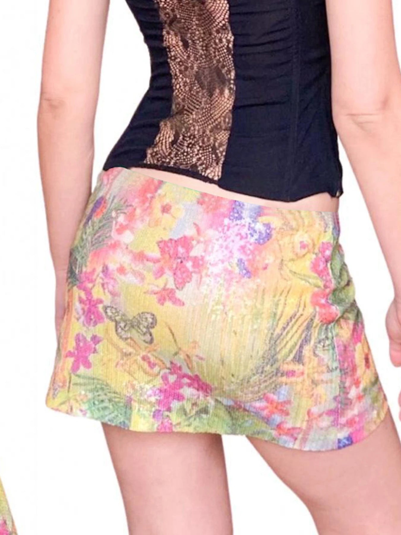 Cyflymder Sweet Sparkle Glitter Floral Bodycon Dress Sexy Slim Low-Waisted Mini Skirts Women Summer Fashion Streetwear Lady