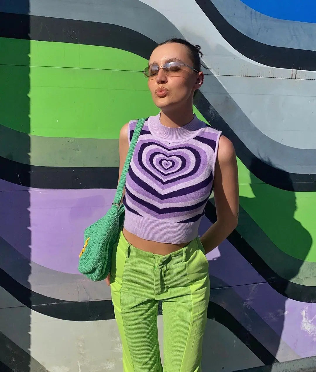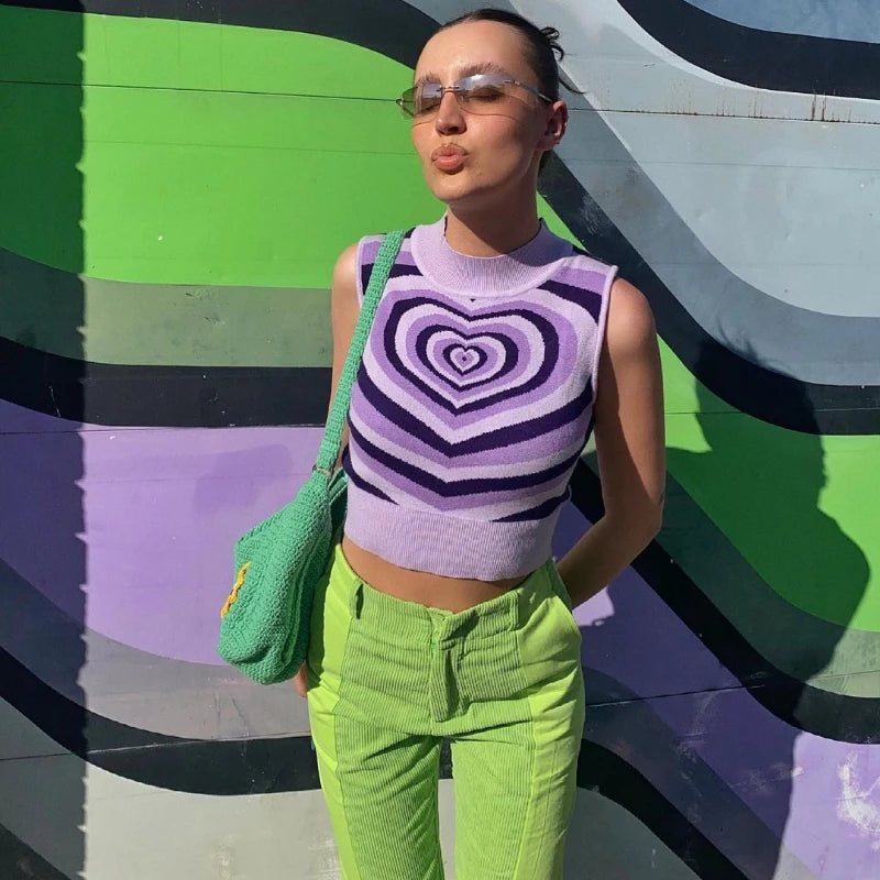 Cyflymder Sweet Y2k Knit Sweater Sleeveless Summer Aesthetics Heart Tank Tops Women Turtleneck Pullover Knitwear Cropped Top Harajuku Vest