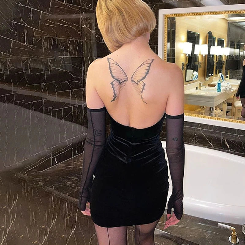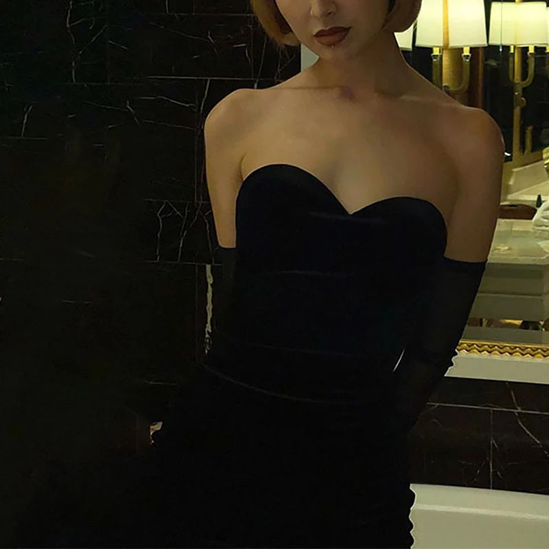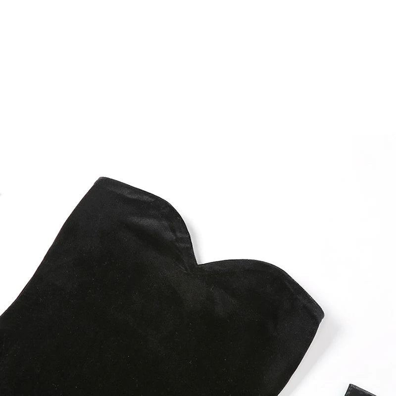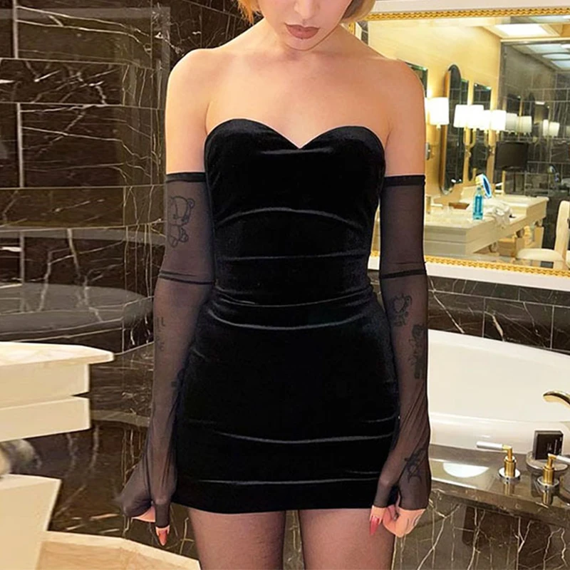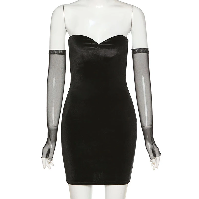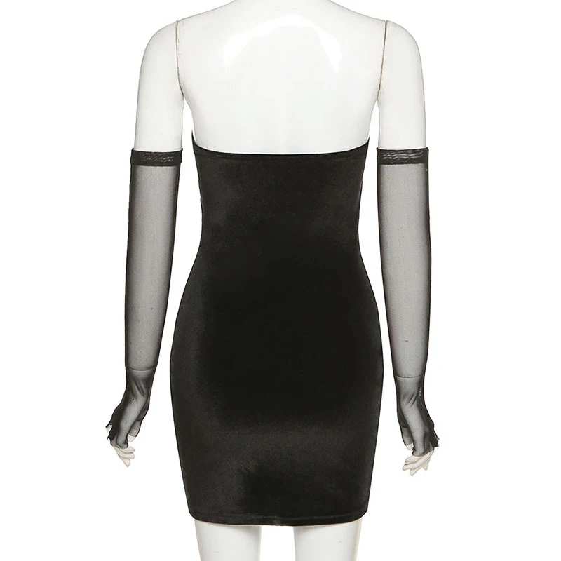 Cyflymder Sweetheart Neck Strapless Bodycon Party Velvet Dresses With Mesh Gloves 2024 Women Sexy Backless High Waist Mini Night Club Wear