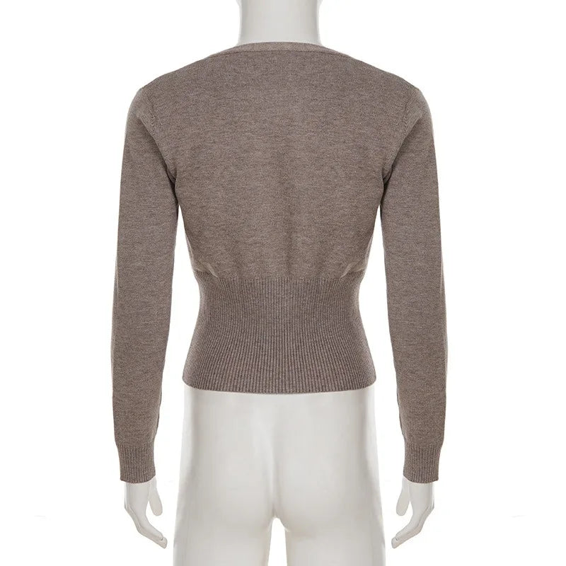 Cyflymder Temperament Cross V Neck Long Sleeve Double Breasted Sweater Y2k French Solid Simple Autumn Basic Clothes Lazy American Cardigan