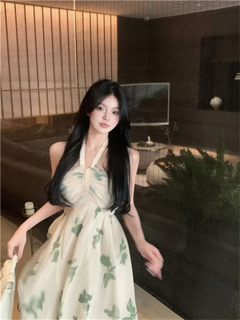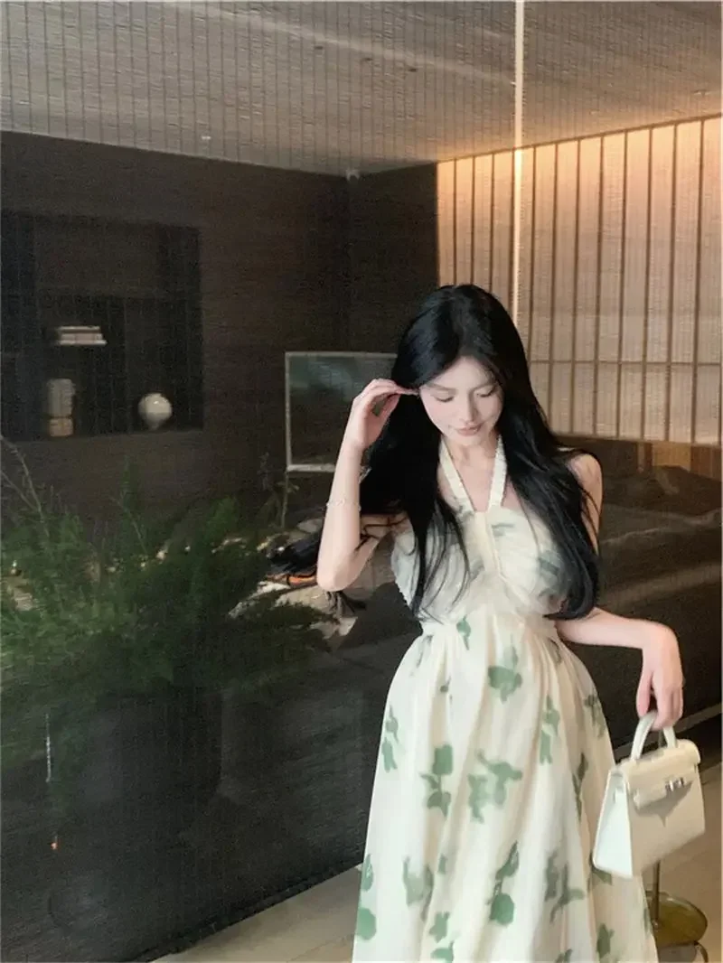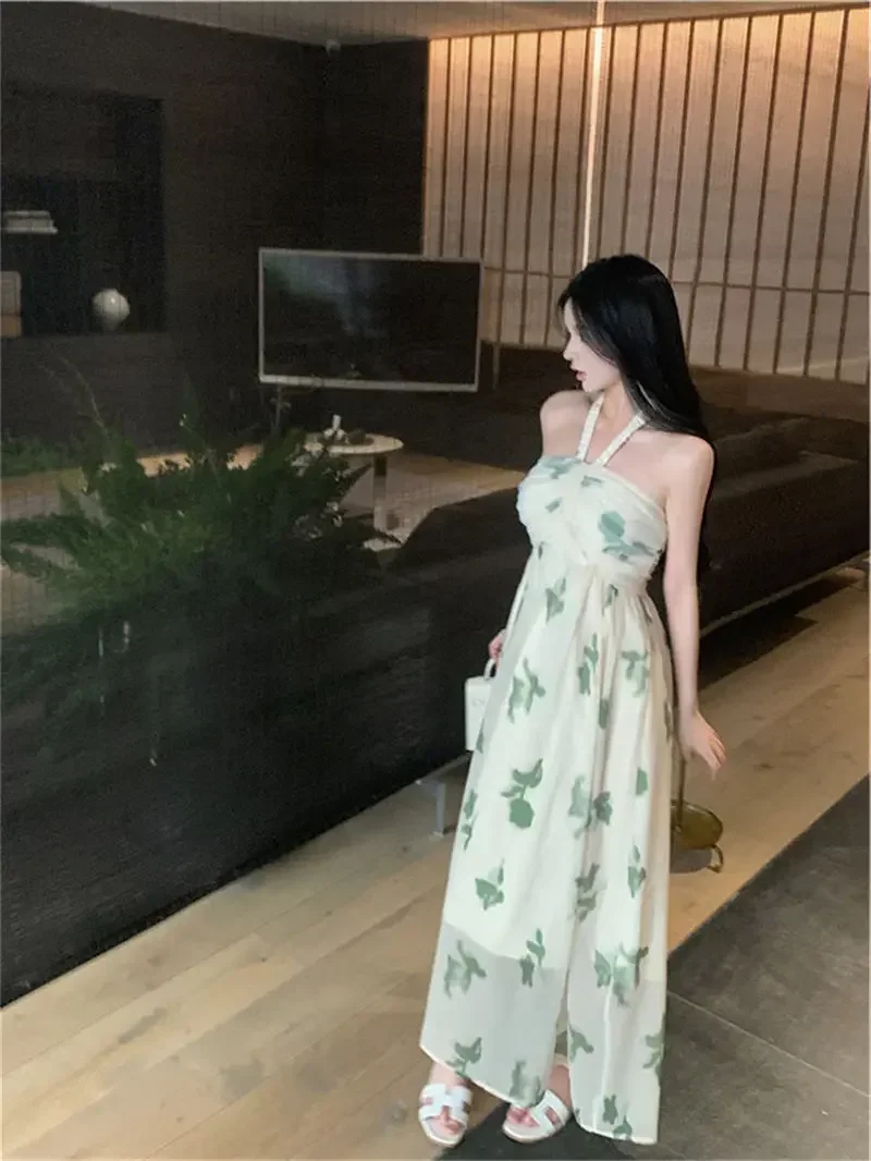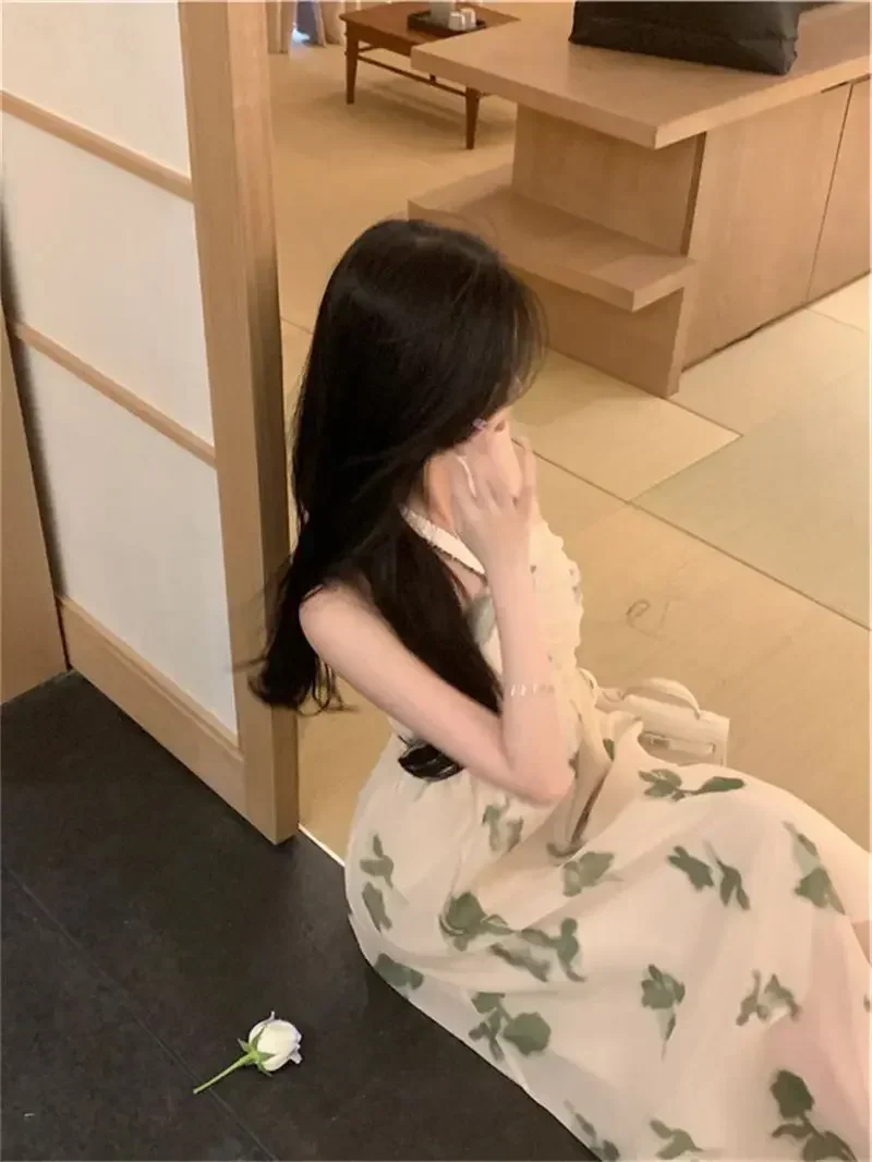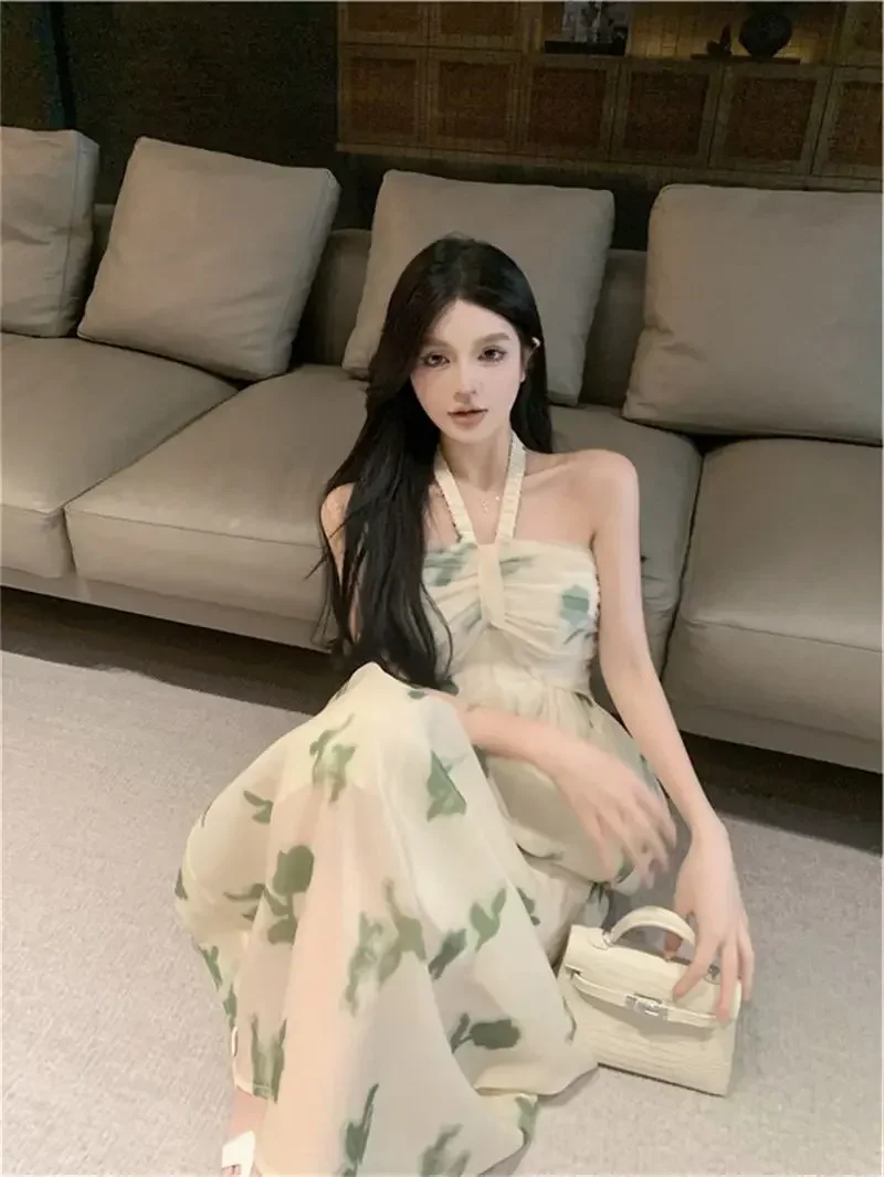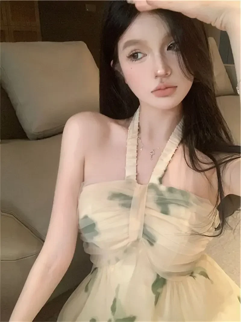 Cyflymder Temperament Floral Neck Strapless Tulle Skirt Gentle Style Slim A-line Long Skirt