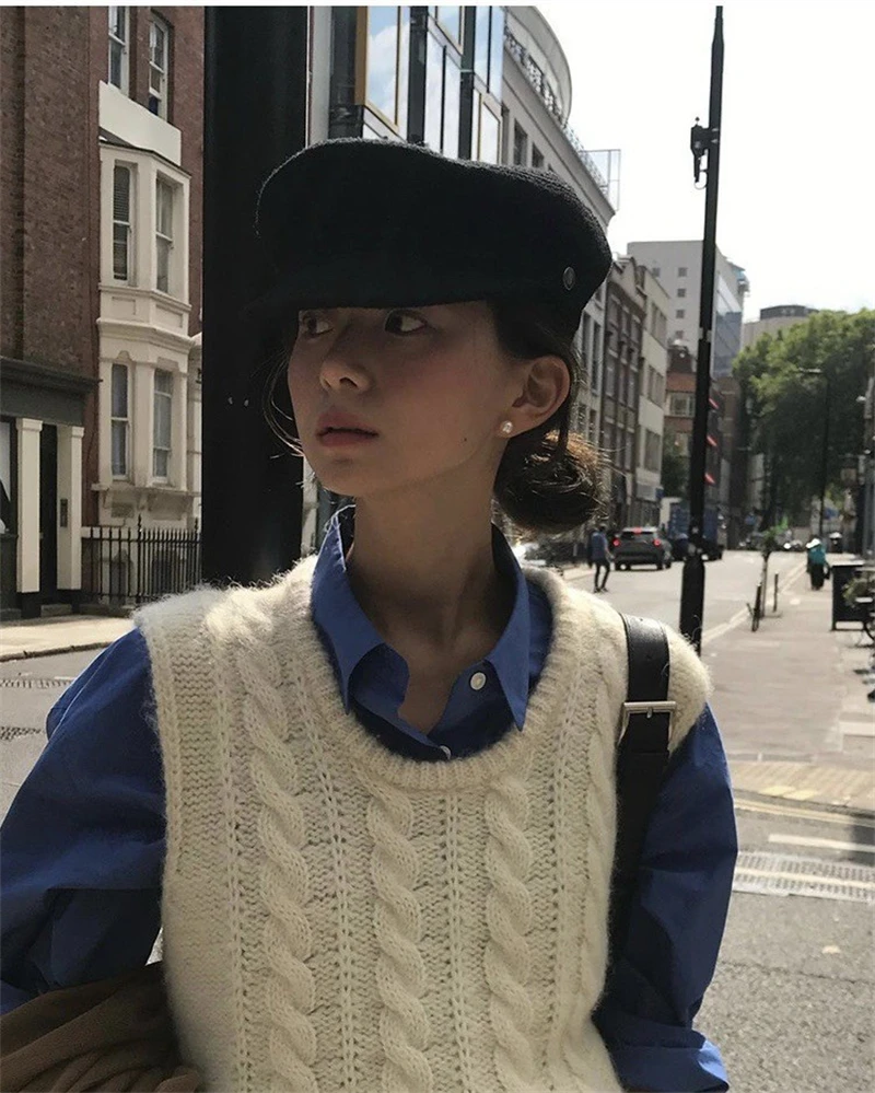 Cyflymder Thebarnet Crew Ne Svel Knitted Vest Women Faion Autumn Outdoor Plain Color Fake ket Soft Pure Lamb Camere Woolly