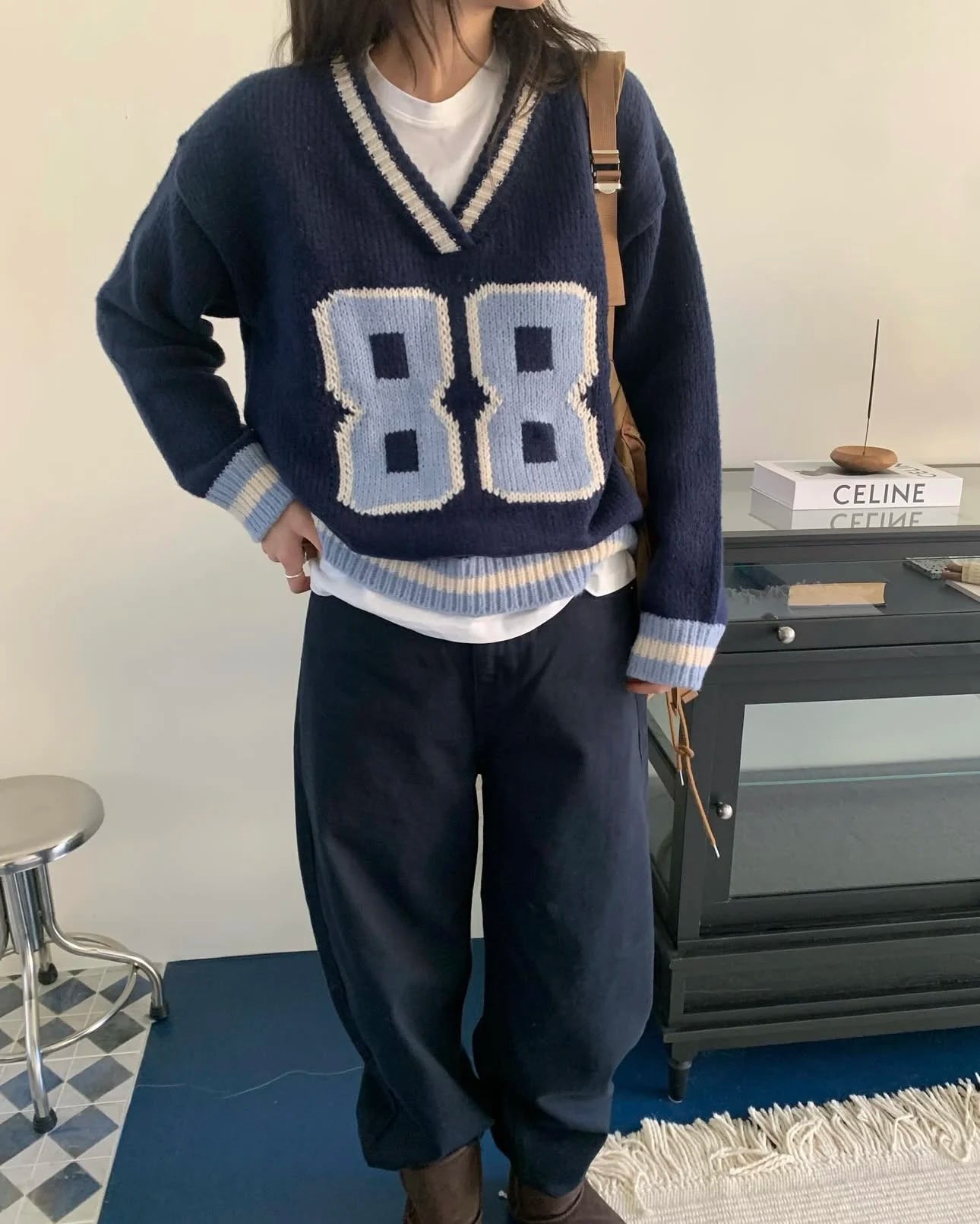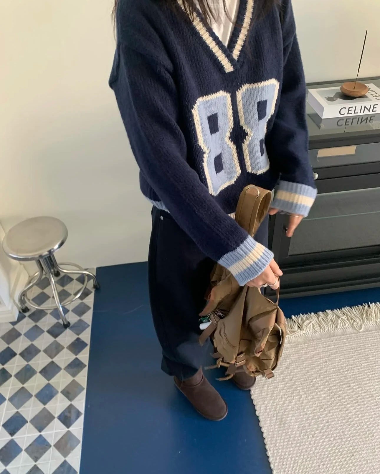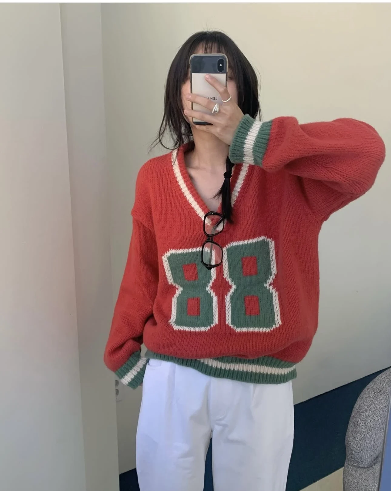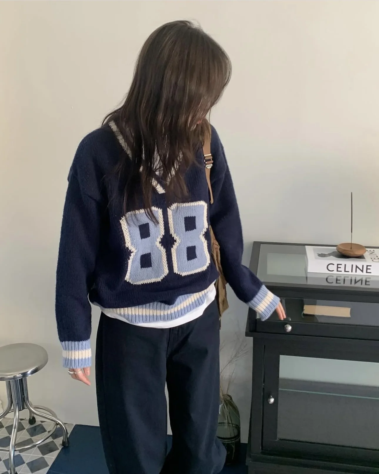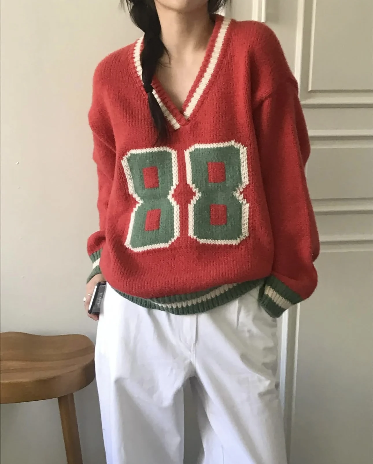 Cyflymder Thiened Long Sve Knitted Sweater Women's Chic Autumn Winter College Sle Color Blo Letter Design Versatile Knitwear