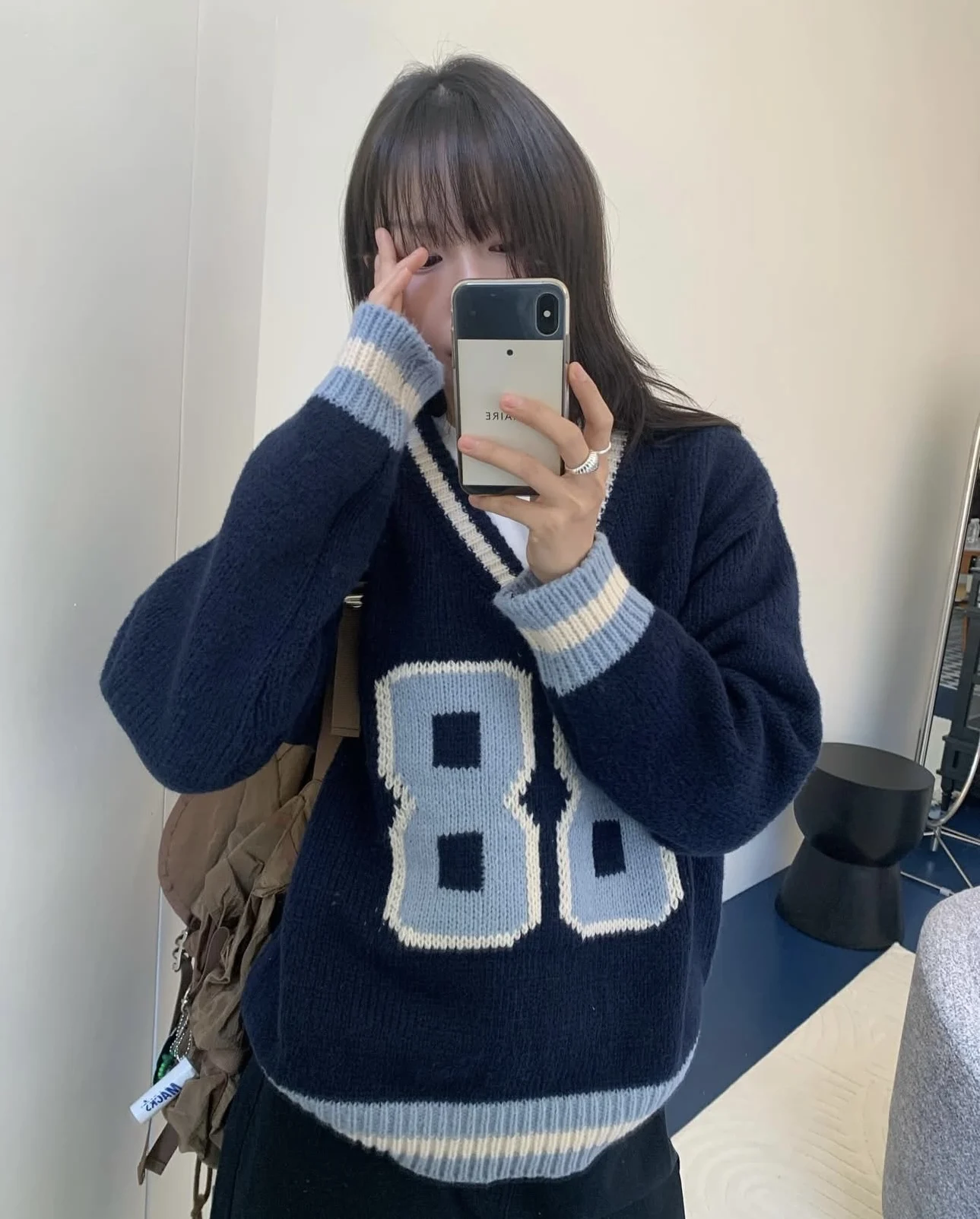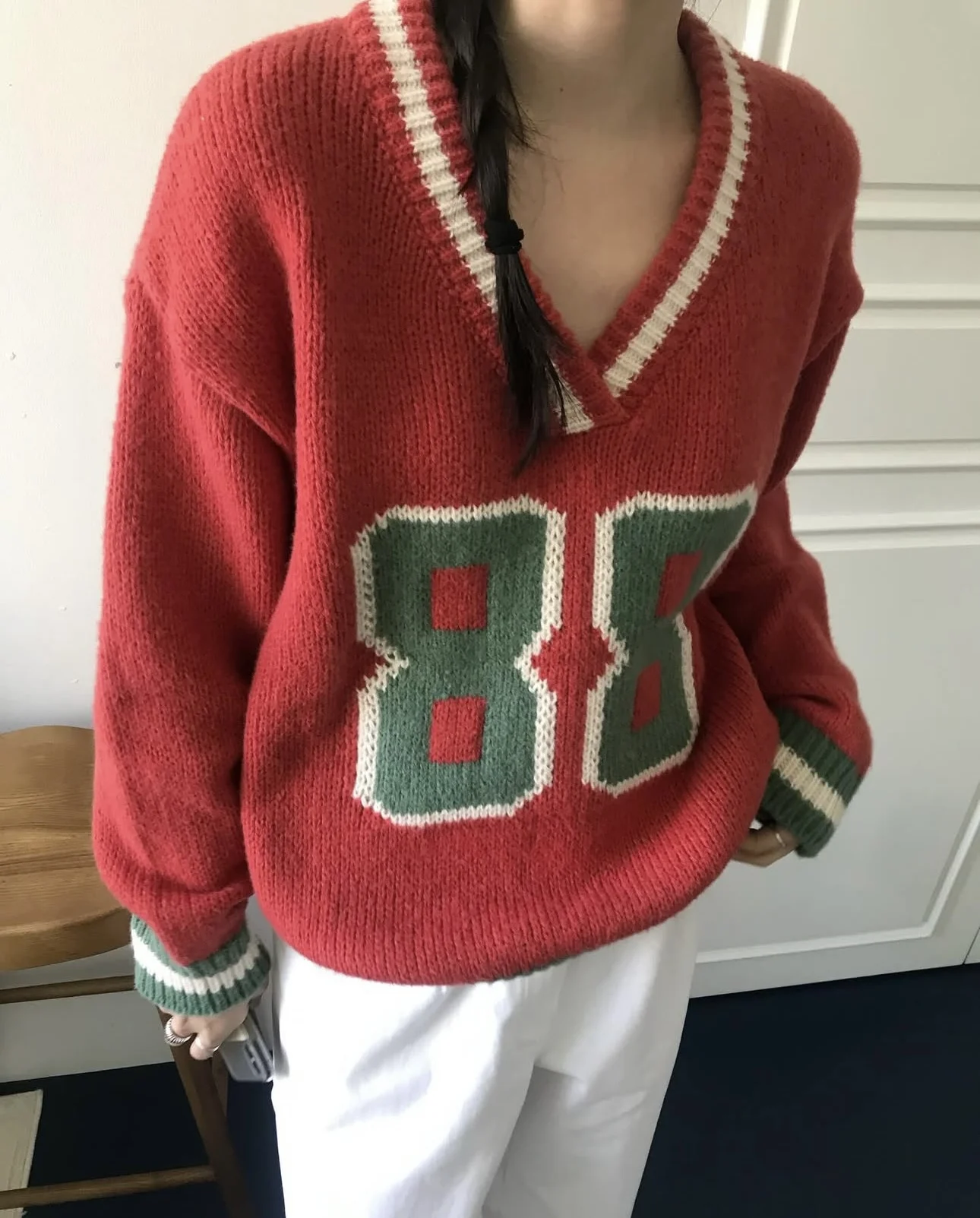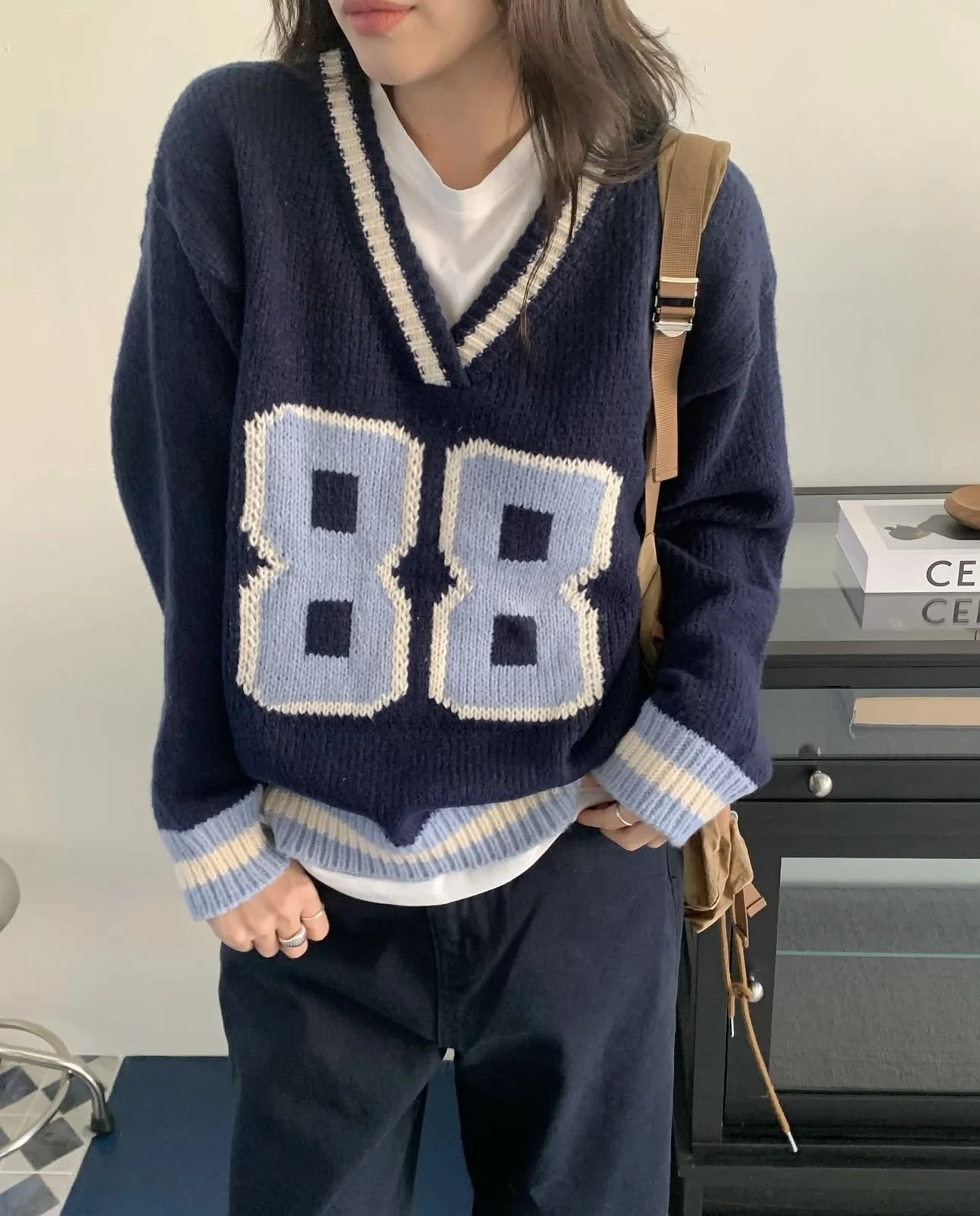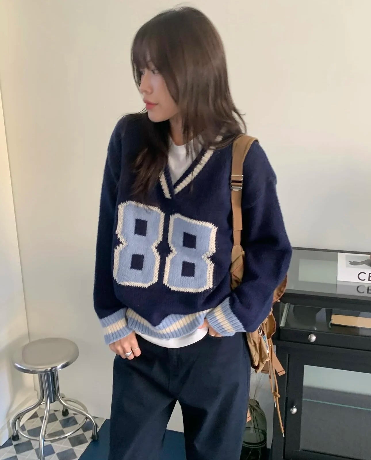 Cyflymder Thiened Long Sve Knitted Sweater Women's Chic Autumn Winter College Sle Color Blo Letter Design Versatile Knitwear
