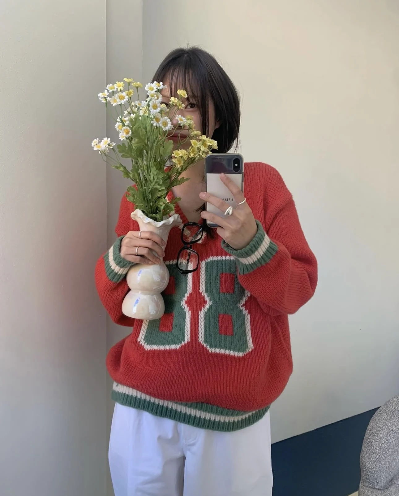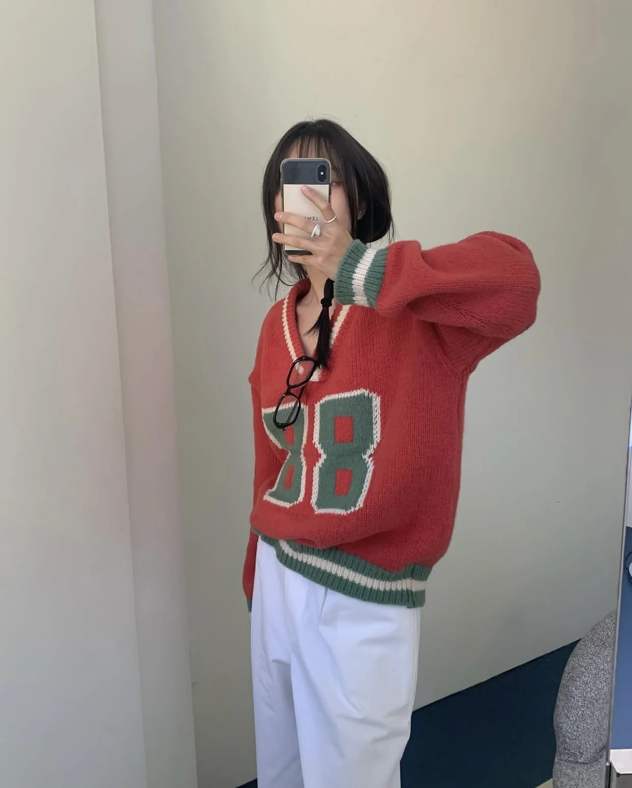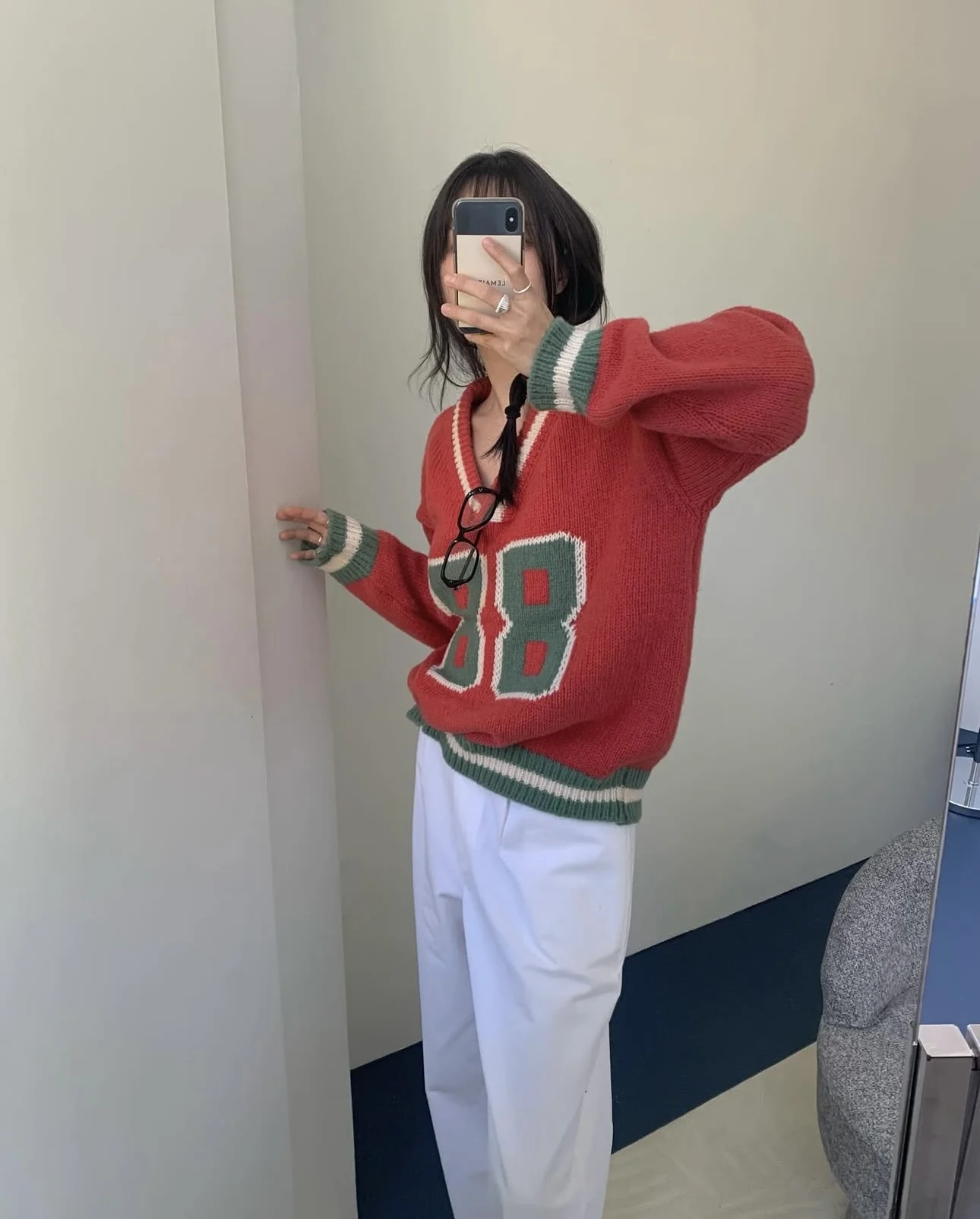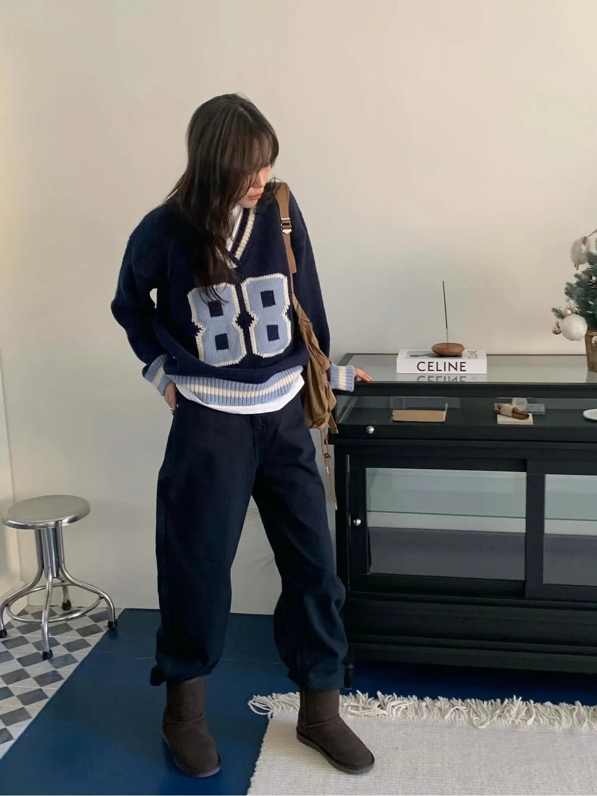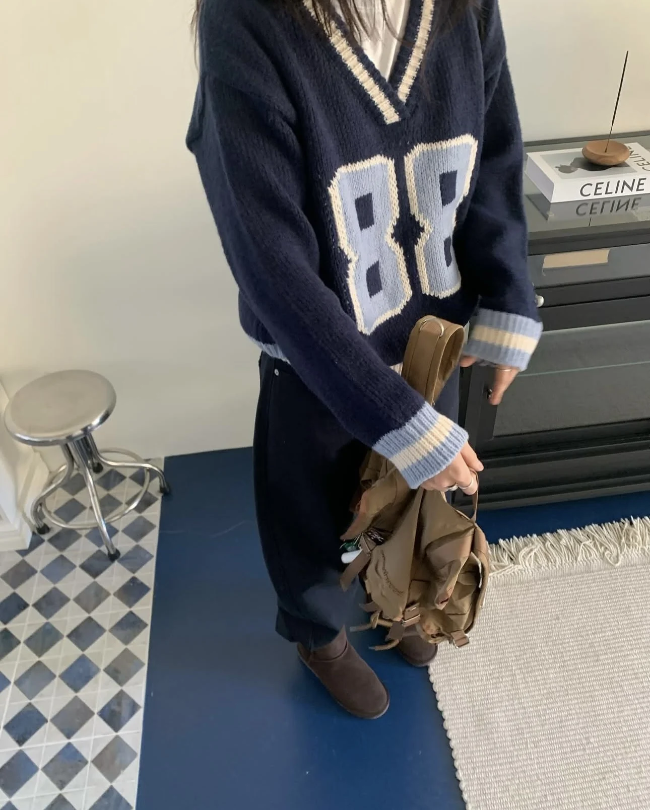 Cyflymder Thiened Long Sve Knitted Sweater Women's Chic Autumn Winter College Sle Color Blo Letter Design Versatile Knitwear