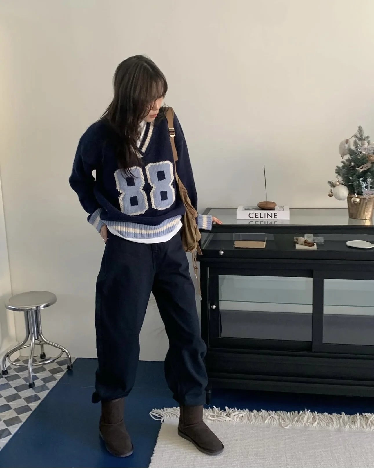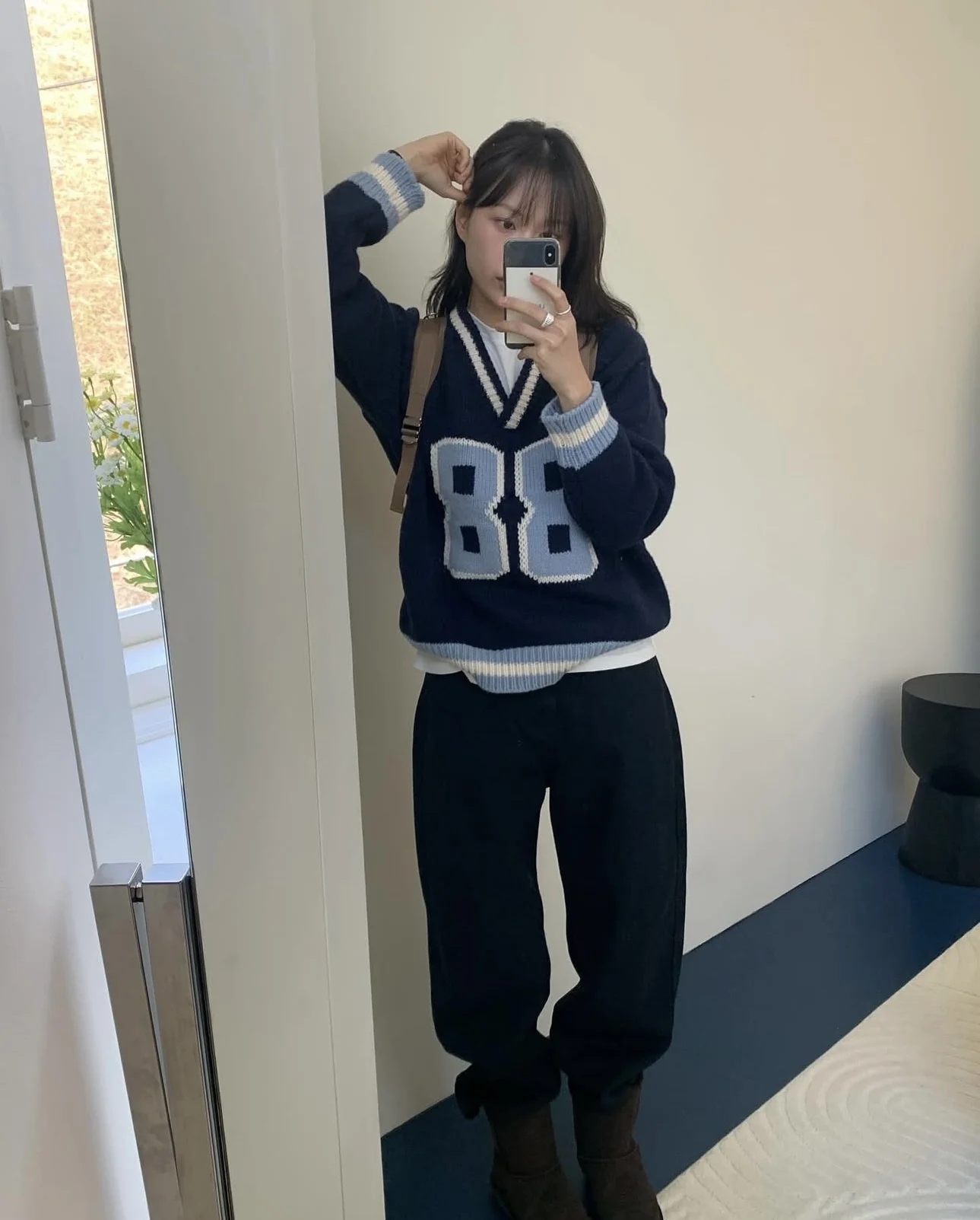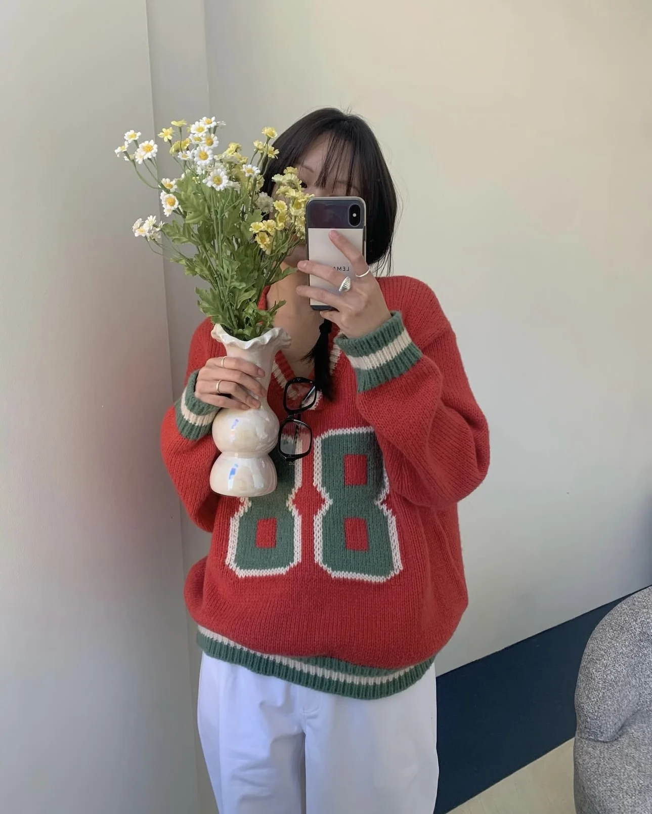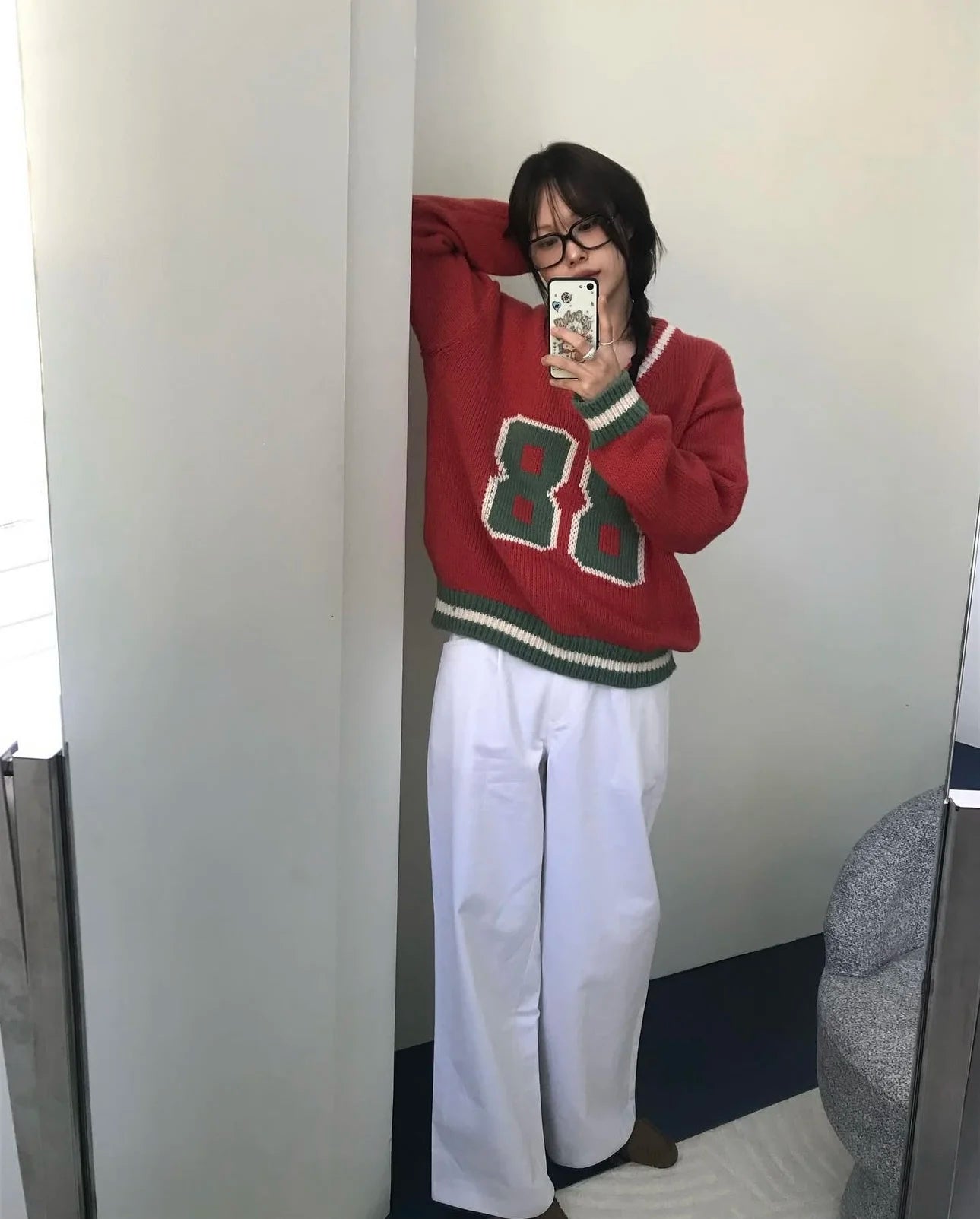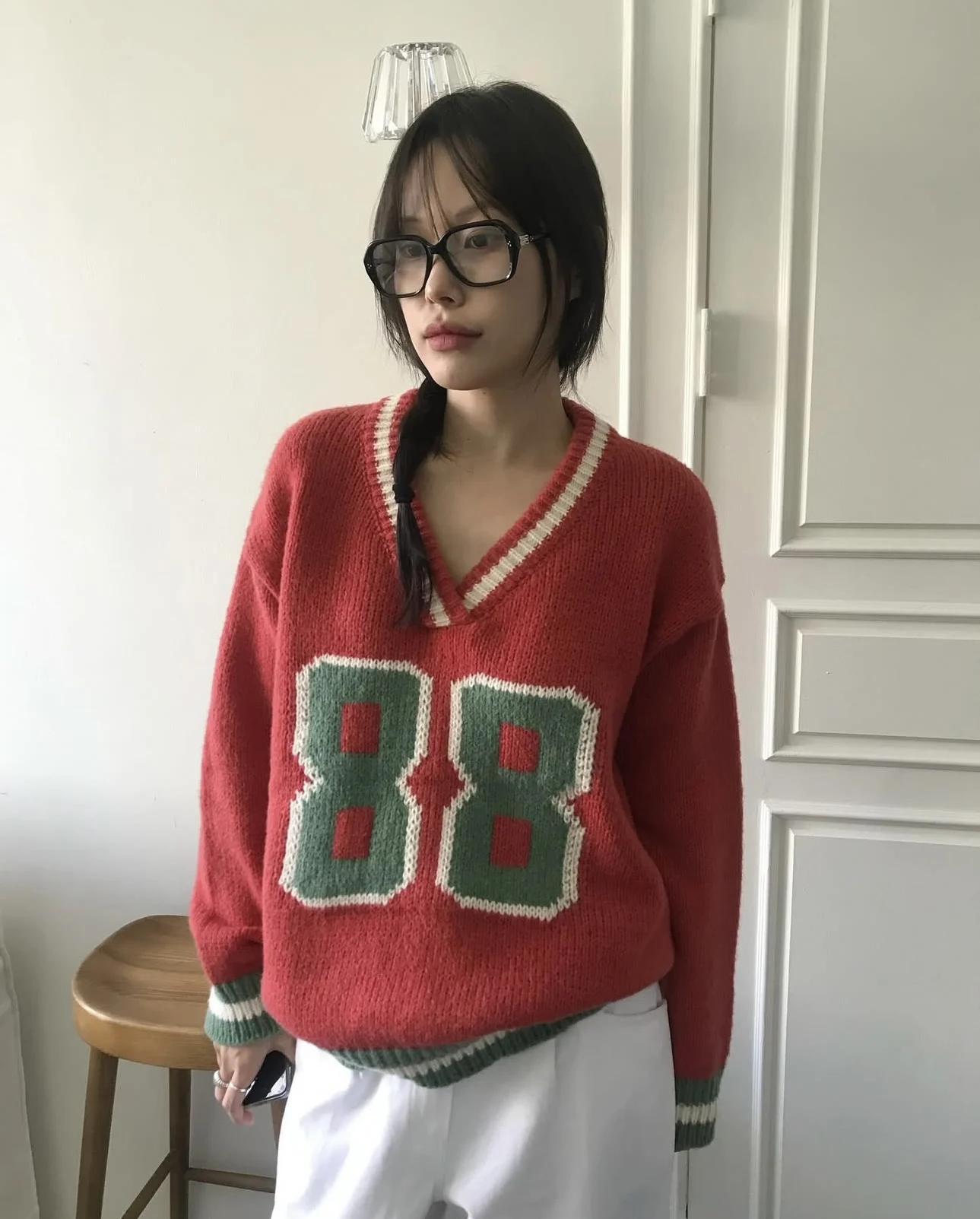 Cyflymder Thiened Long Sve Knitted Sweater Women's Chic Autumn Winter College Sle Color Blo Letter Design Versatile Knitwear