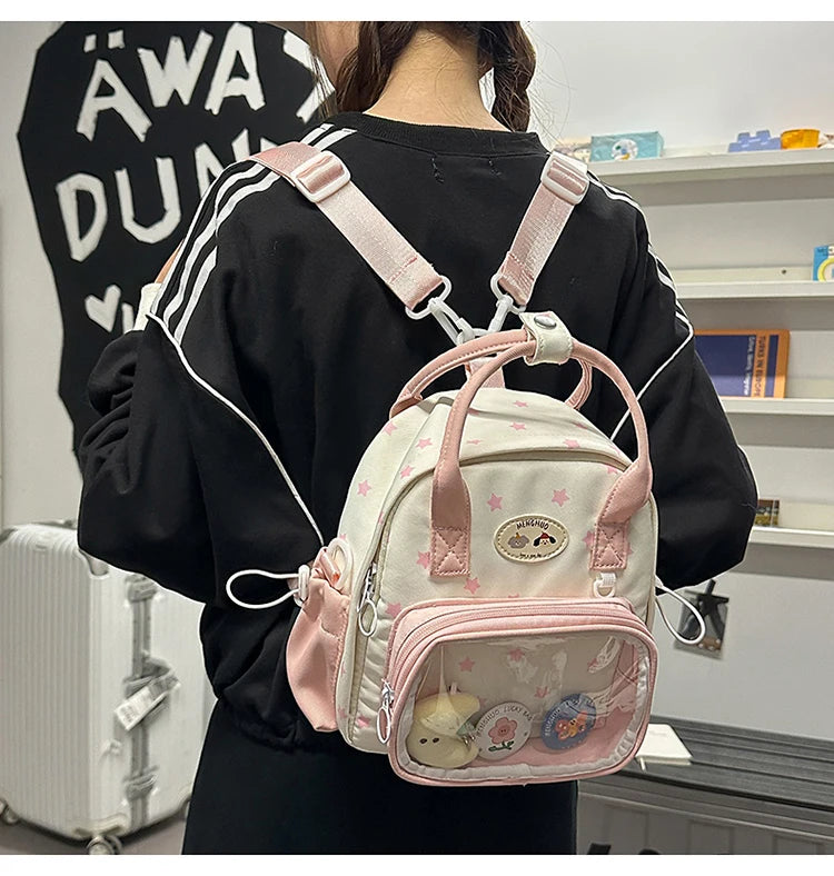 Cyflymder Transparent Fashion Preppy Mini Backpacks Sweet Kawaii Star Print Ita Bags Y2k Aesthetic Students Casual Travel Schoolbags Women