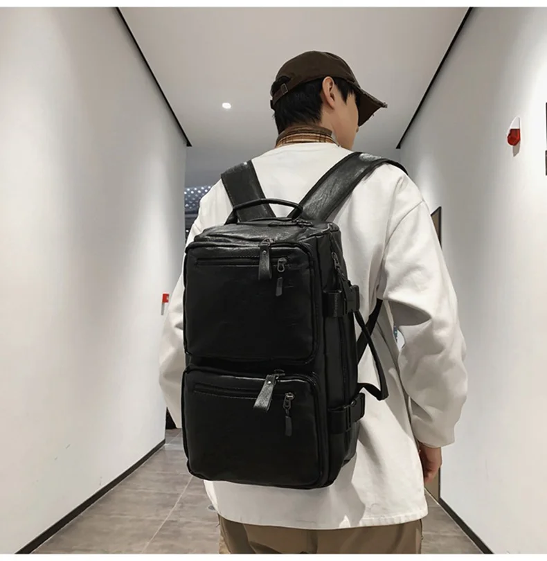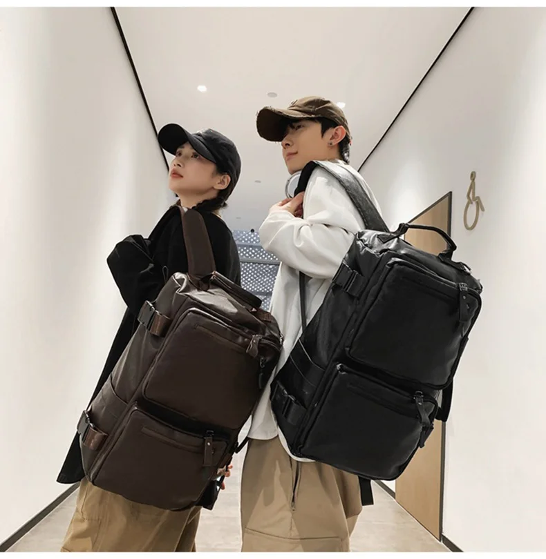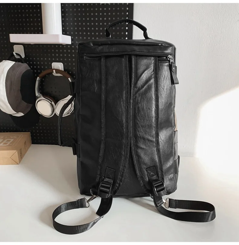 Cyflymder Travel Backpack Gym Fitness Bag Women Men PU Large Capacity Training College Students Schoolbag Sports Laptop Vintage Daypack