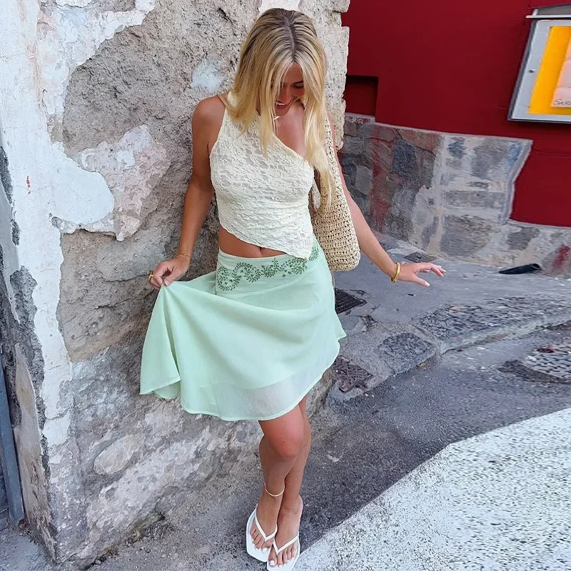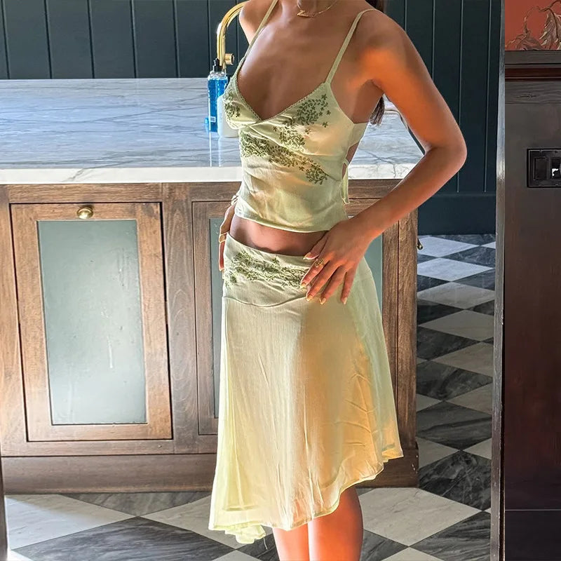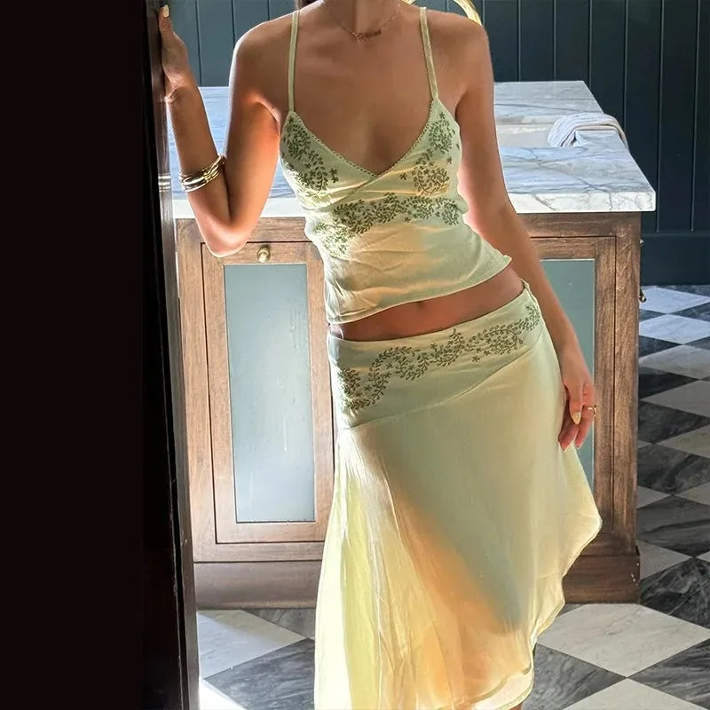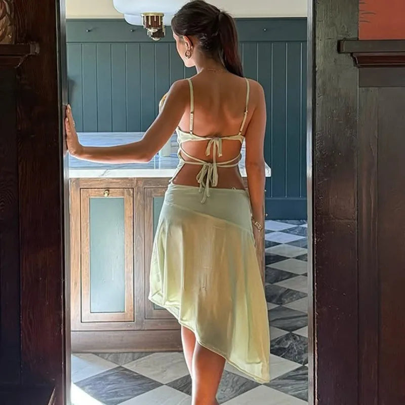 Cyflymder Vacation Long Skirt 2 Piece Summer Sexy Lace Up Halter Top Irregular Skirt Set Fashion Women New Dress Sets Outfits