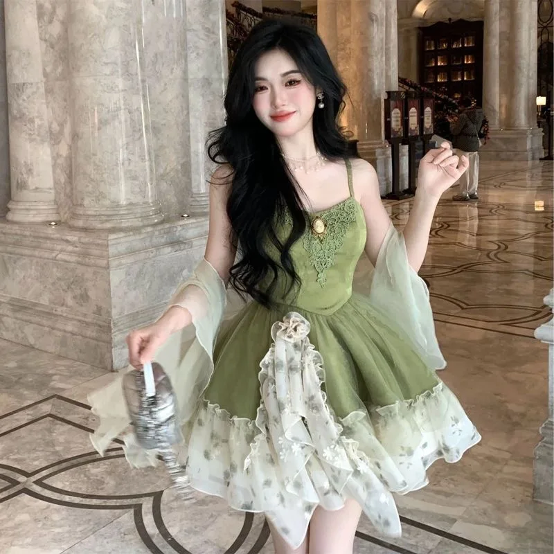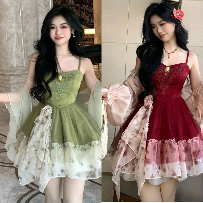 Cyflymder Vestidos De Fiesta Elegantes 2025 Temperament Chiffon Women Chiffon Ruffles Temperament Jacquard Waist Drawstring Pommel Dress