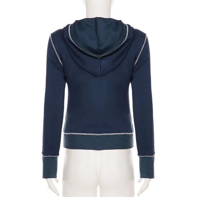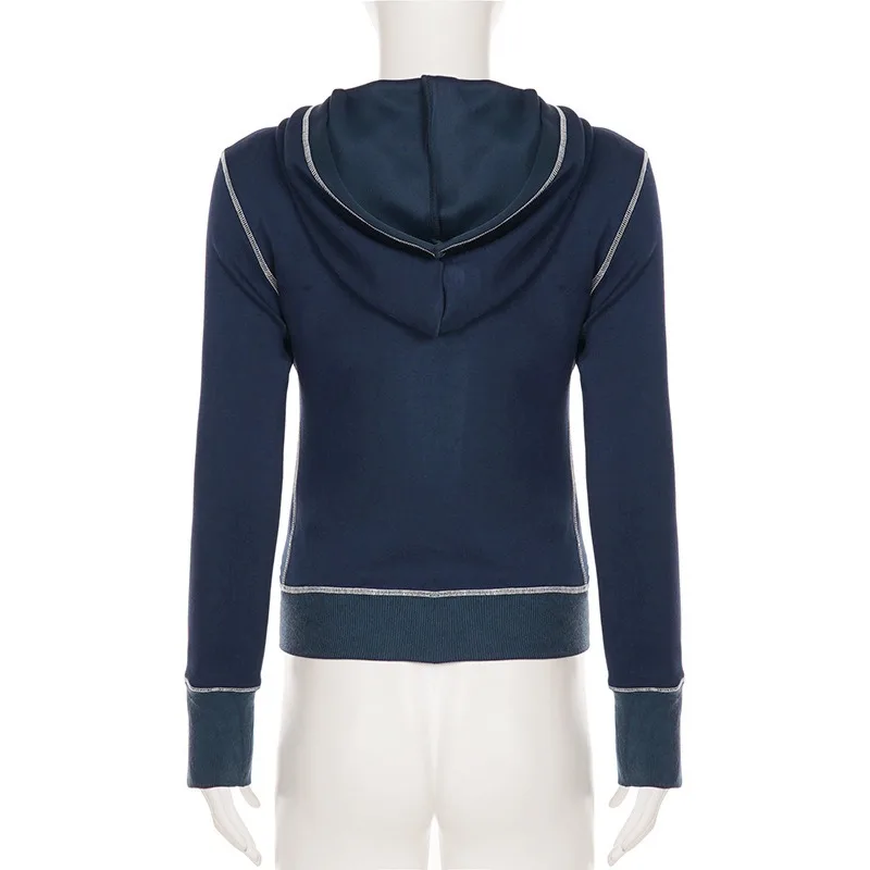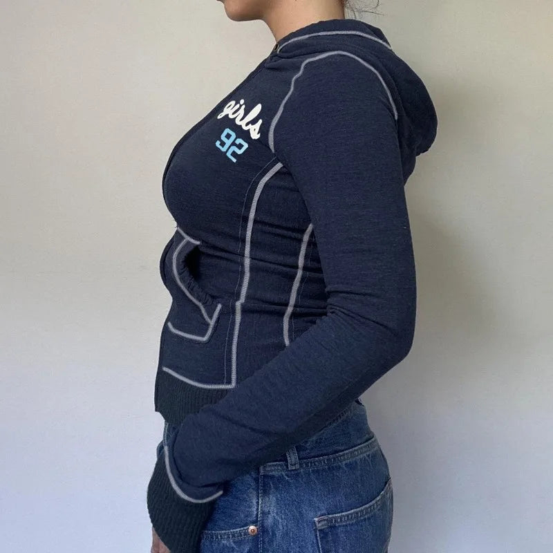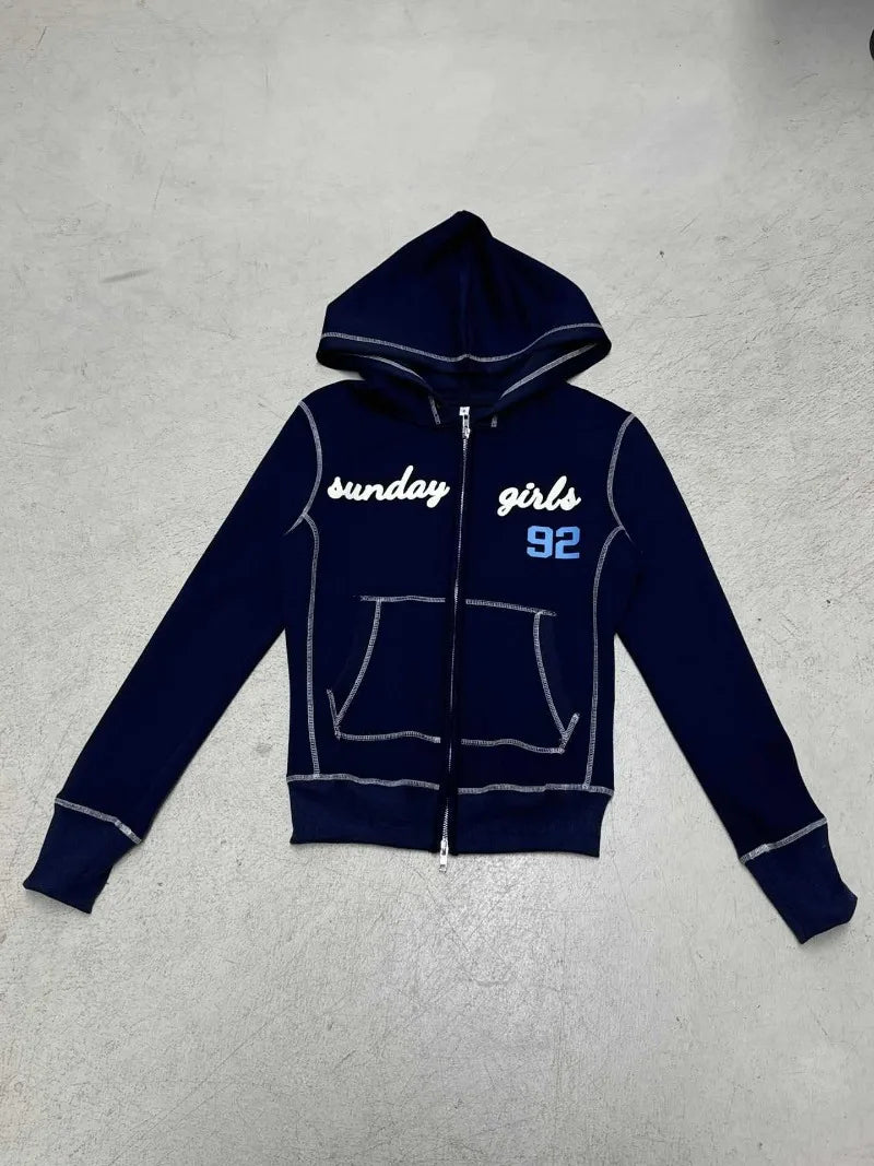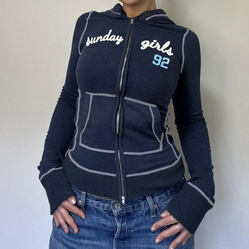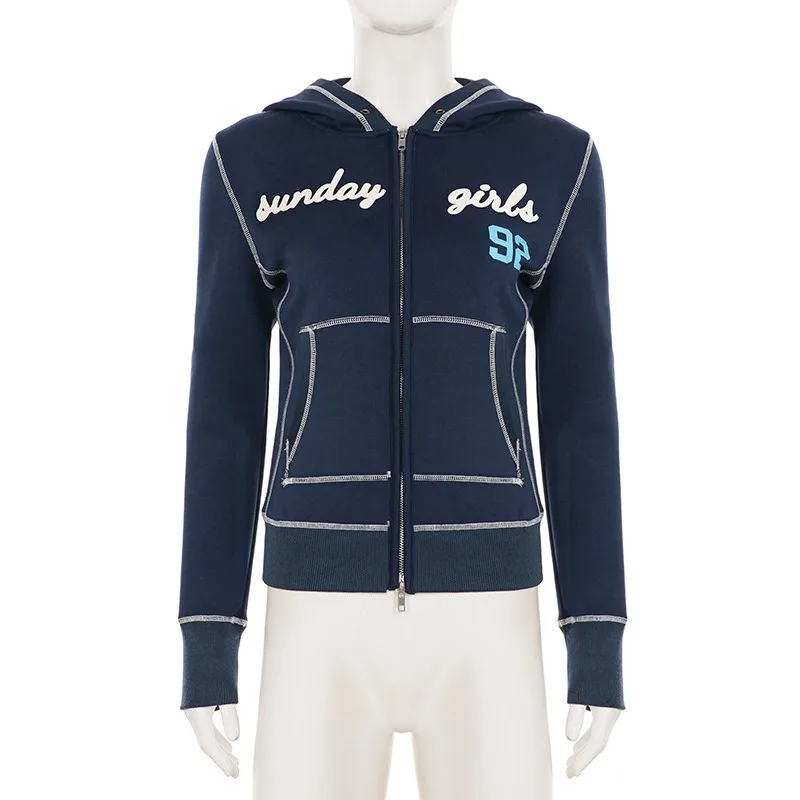 Cyflymder Vintage American Fashion Patchwork Design Slim Casual Coats Y2k Aesthetic Letter Print Hoodies Harajuku Punk Zip Women Cardigan