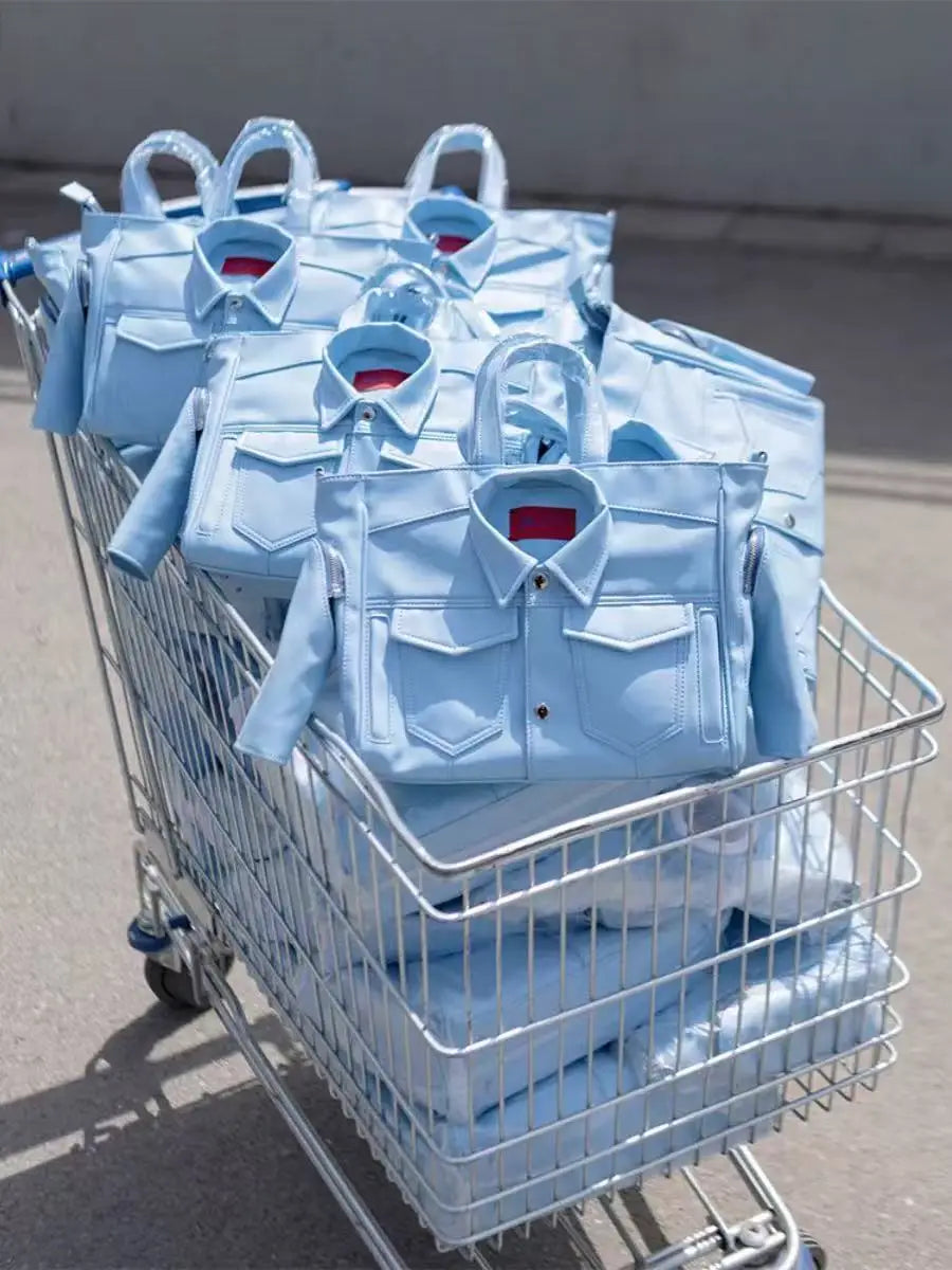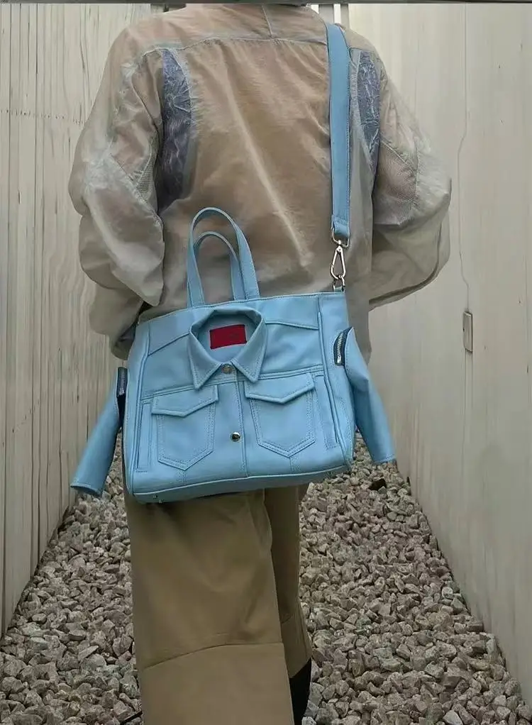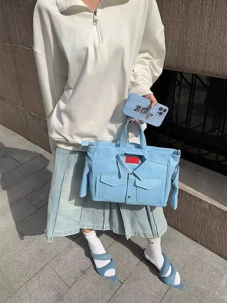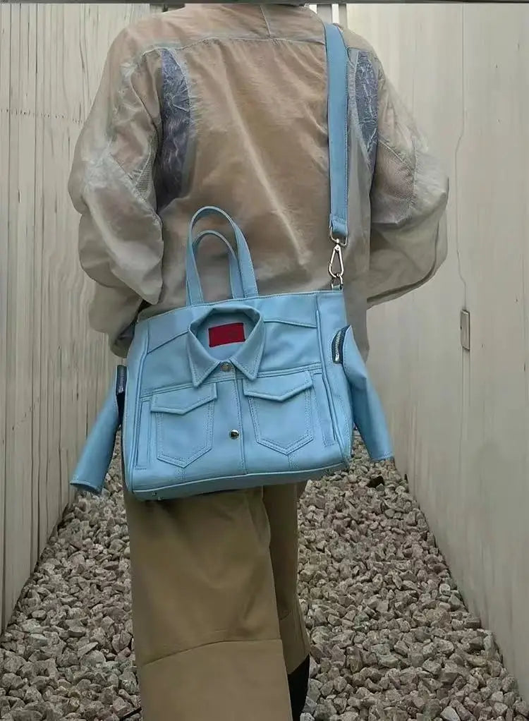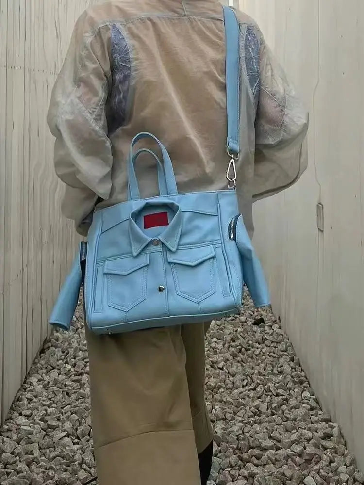 Cyflymder Vintage Blue Jacket Novelty Tote Bag Women Men Retro Large Capacity Gym Travel Unisex Shoulder Bag Fashion Leather Handbag 2025