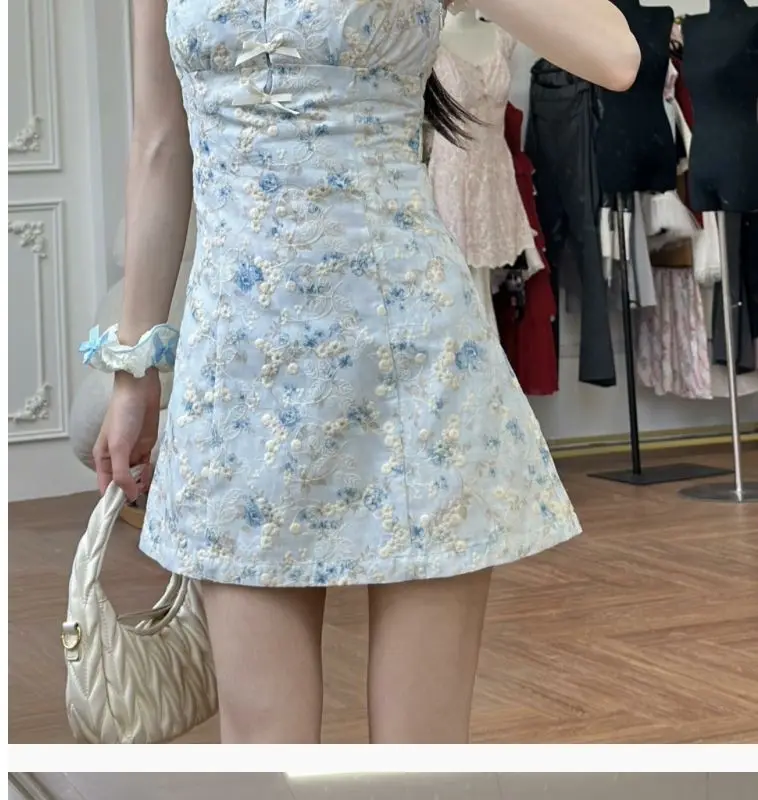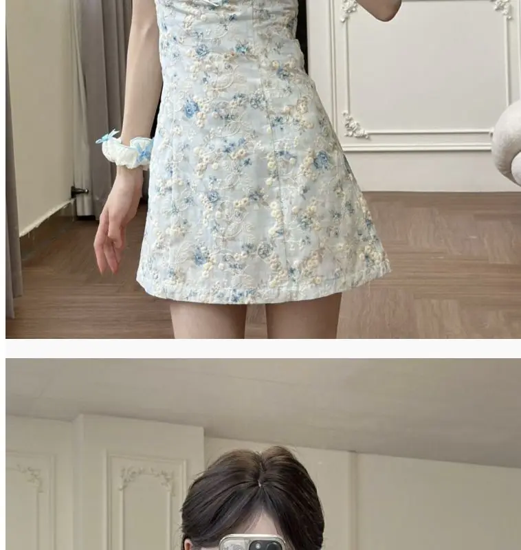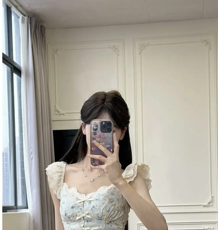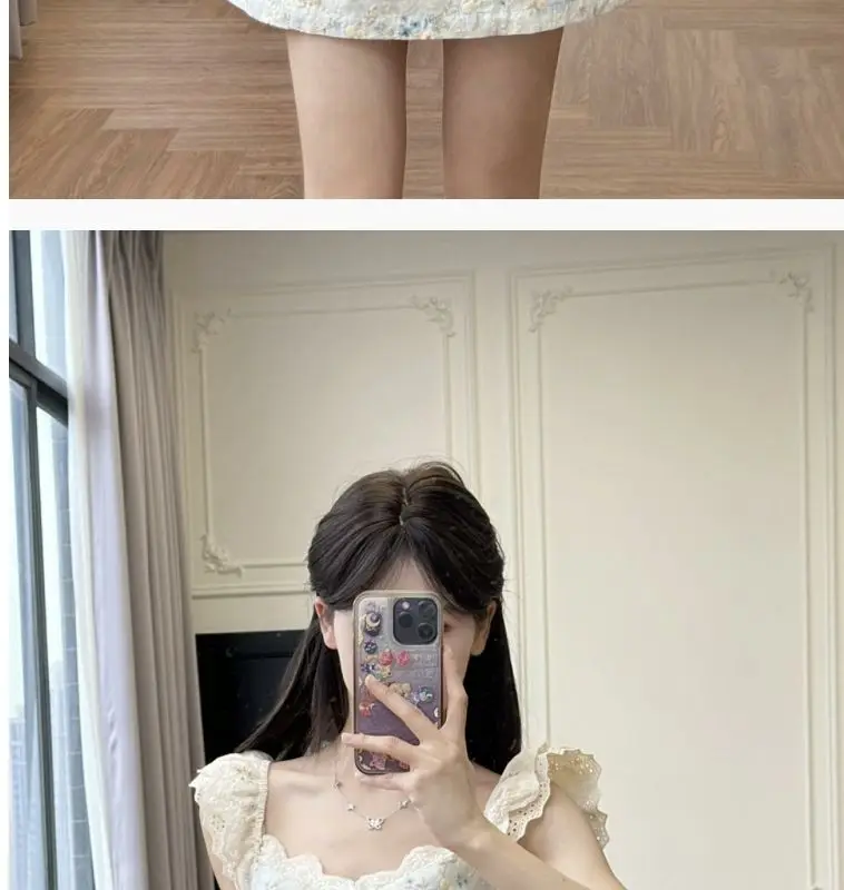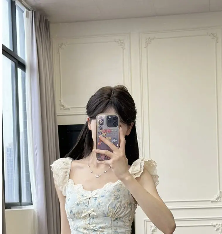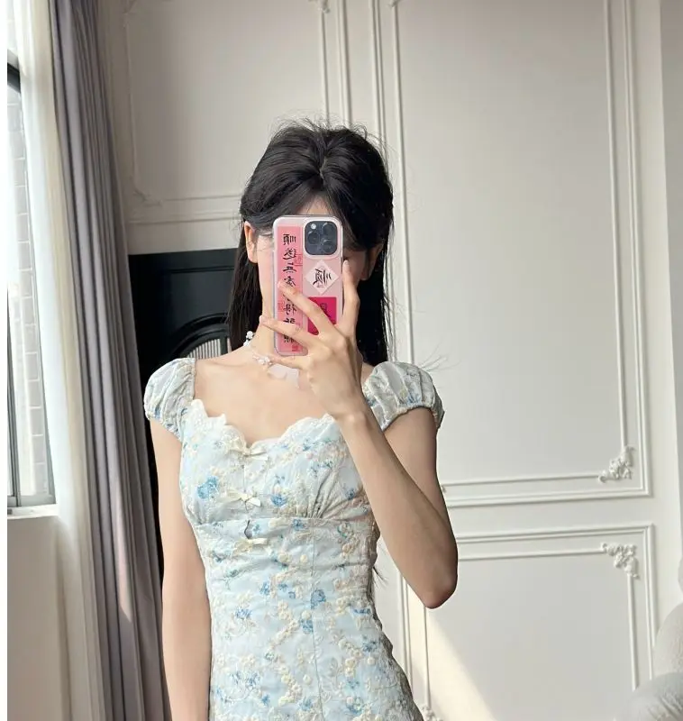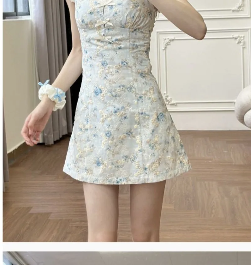 Cyflymder Vintage Floral Mini Dress Women Party Elegant Bow Lace Dresses Summer Korean Flying Sleeve Square Collar Bodycon Design Vestidos
