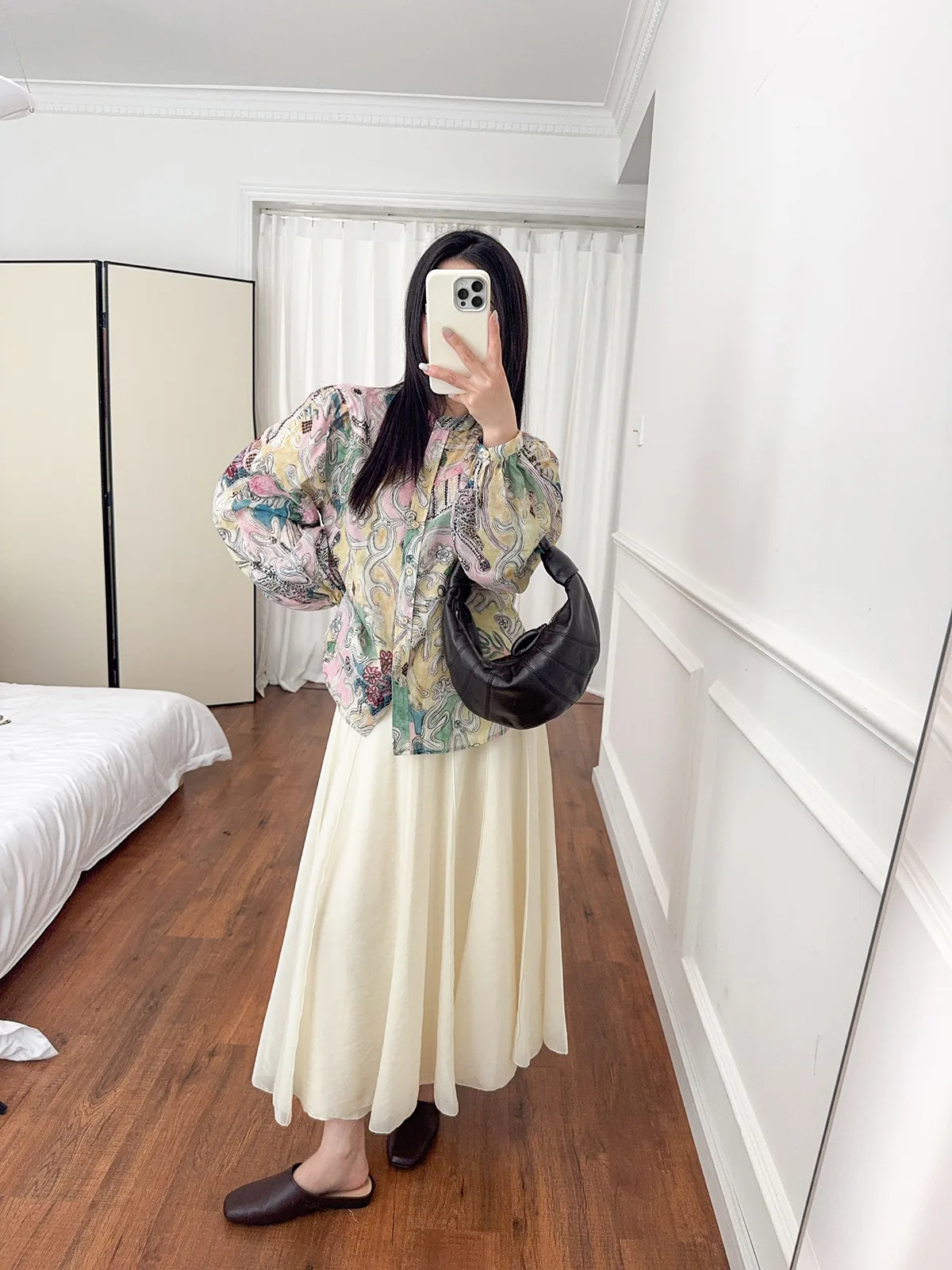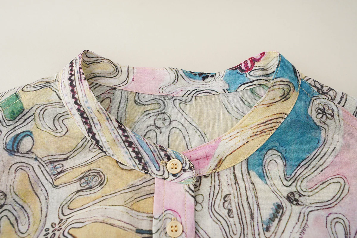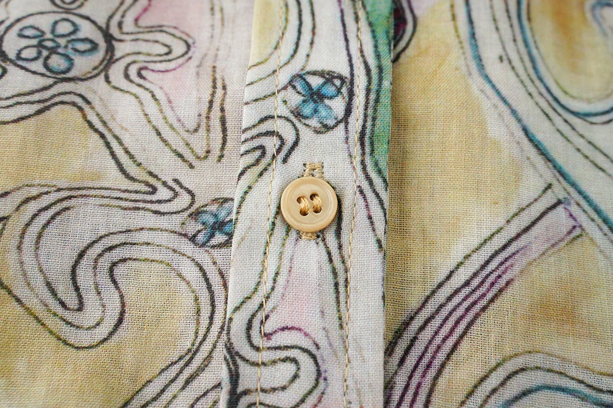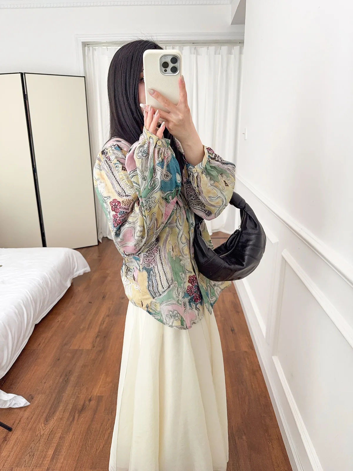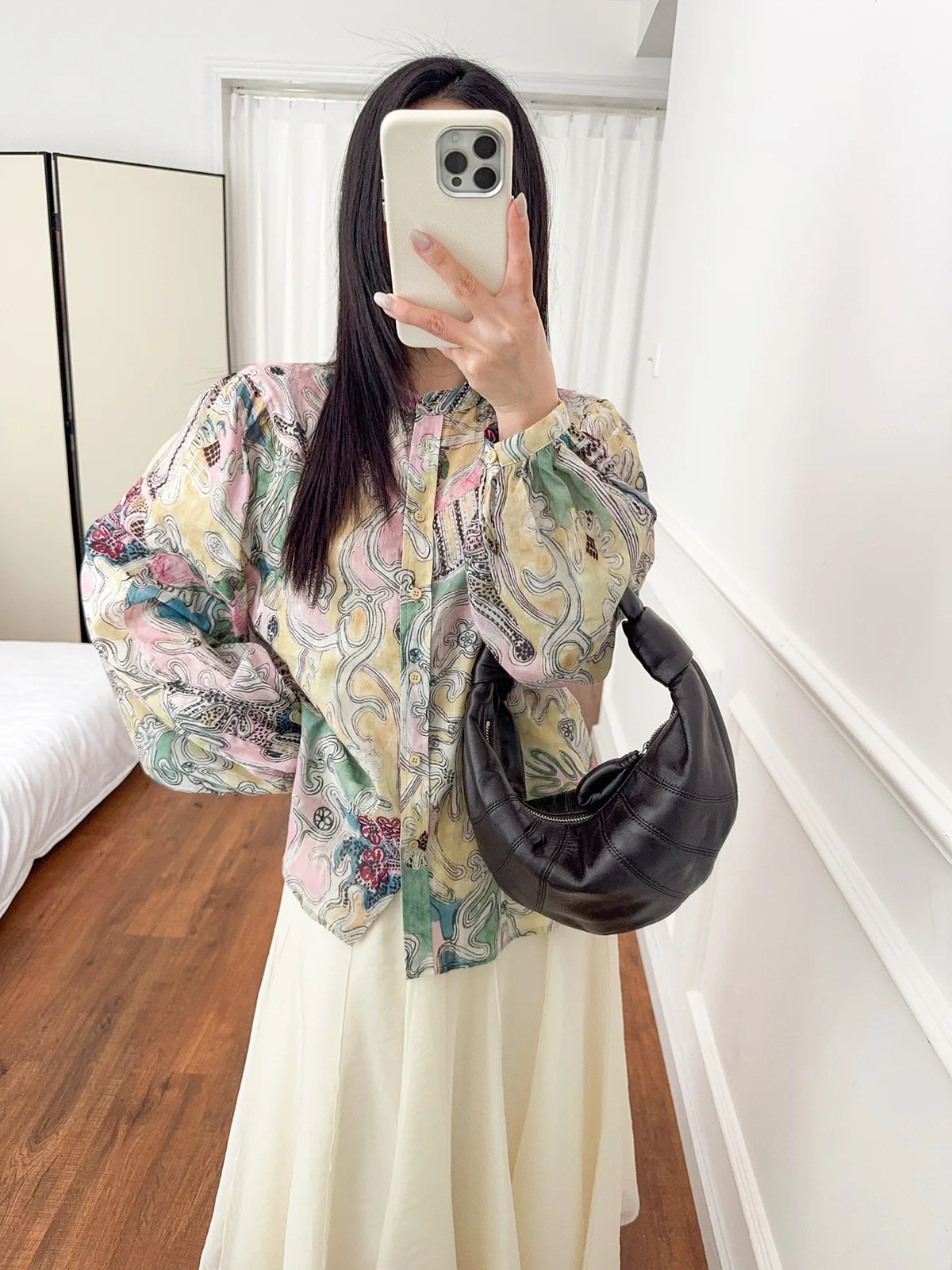 Cyflymder Vintage French Style Floral Shirt Blouse Painted Long Sleeves O-neck Bohemian Vocation Casual Ladies Women Shirt Tops