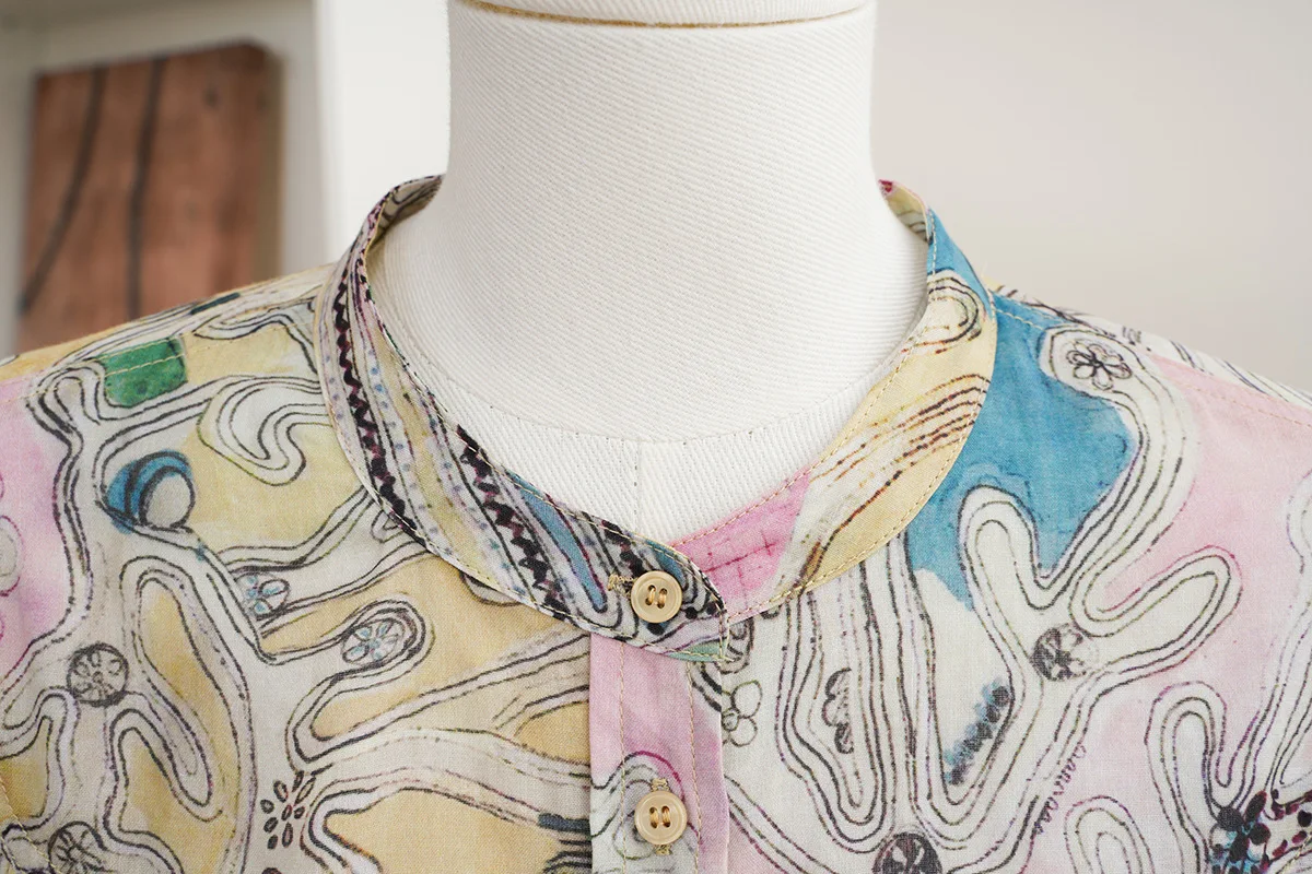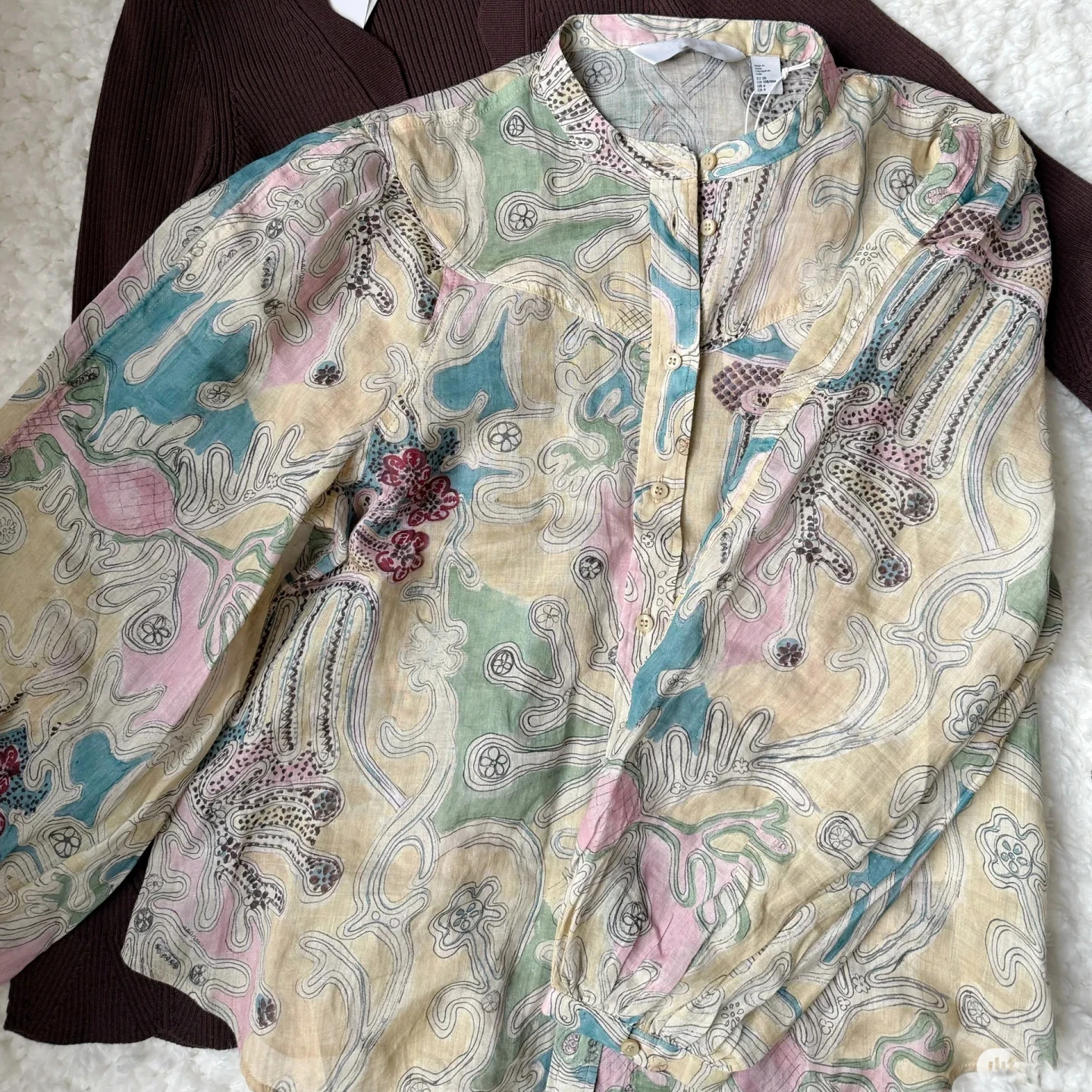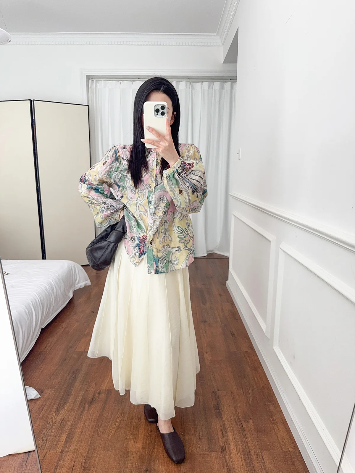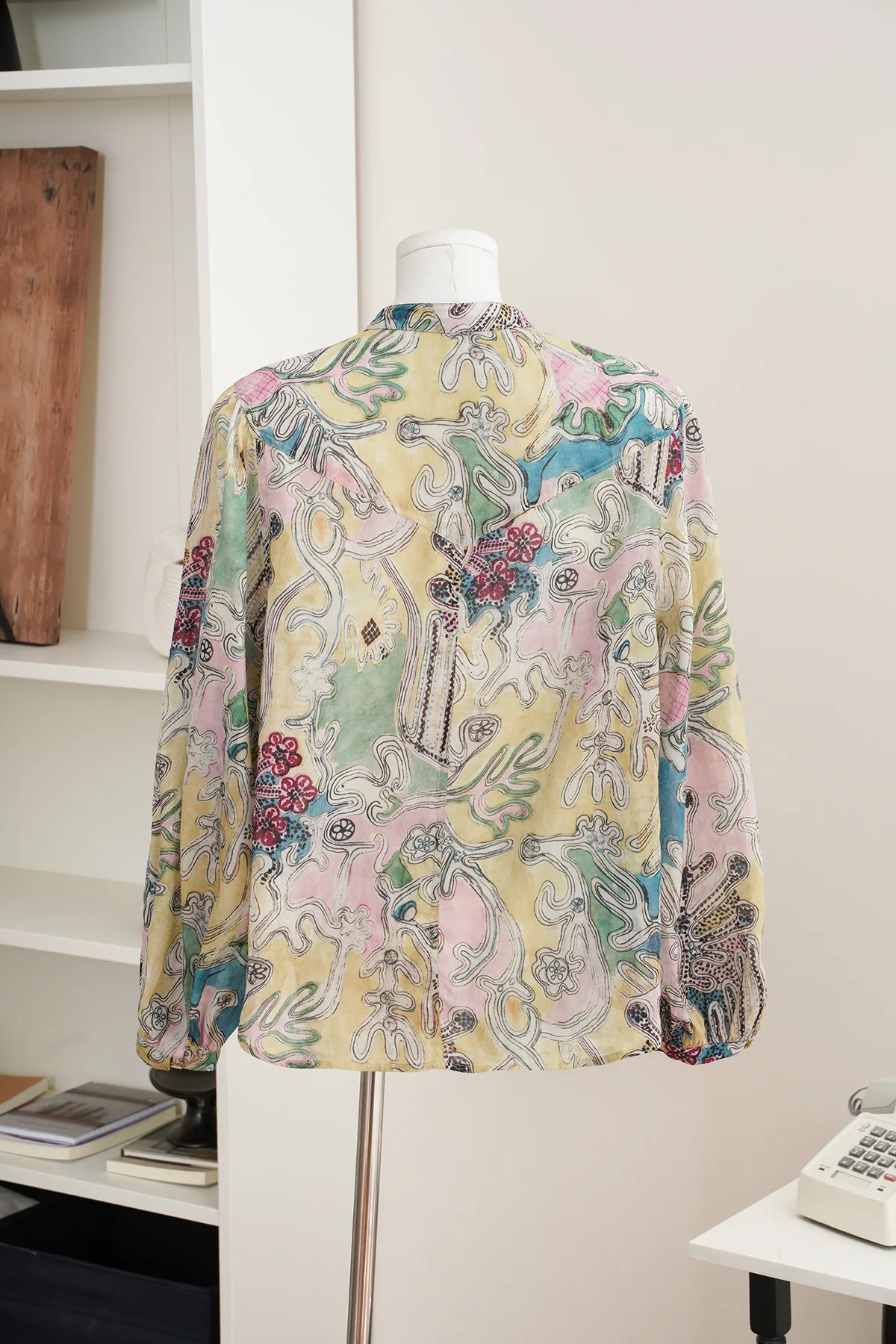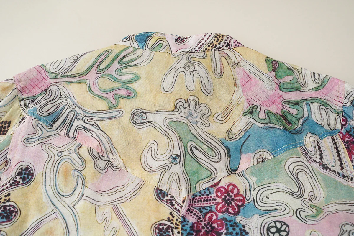 Cyflymder Vintage French Style Floral Shirt Blouse Painted Long Sleeves O-neck Bohemian Vocation Casual Ladies Women Shirt Tops