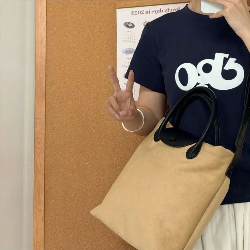 Cyflymder Vintage Large Capacity Khaki Handbag 2025 Women Retro Suede Handle Chic Casual Crossbody Bags Ladies Harajuku Tote Bag Aesthetic