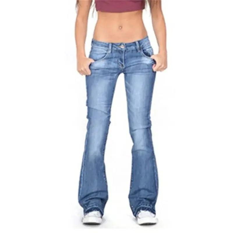Cyflymder Vintage Mid Waist Washed Jeans Women New Slim Fit Micro Flared Trousers Casual Commuter Female Denim Pants Trend Streetwear