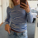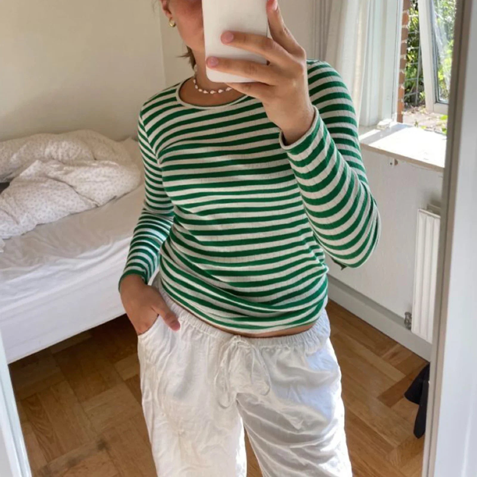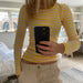 Cyflymder Vintage Preppy Style Y2K Crop Tops Clothes Cottage Striped Rib Knitted T-shirt Women Long Sleeve Casual Basic Tees Pullovers