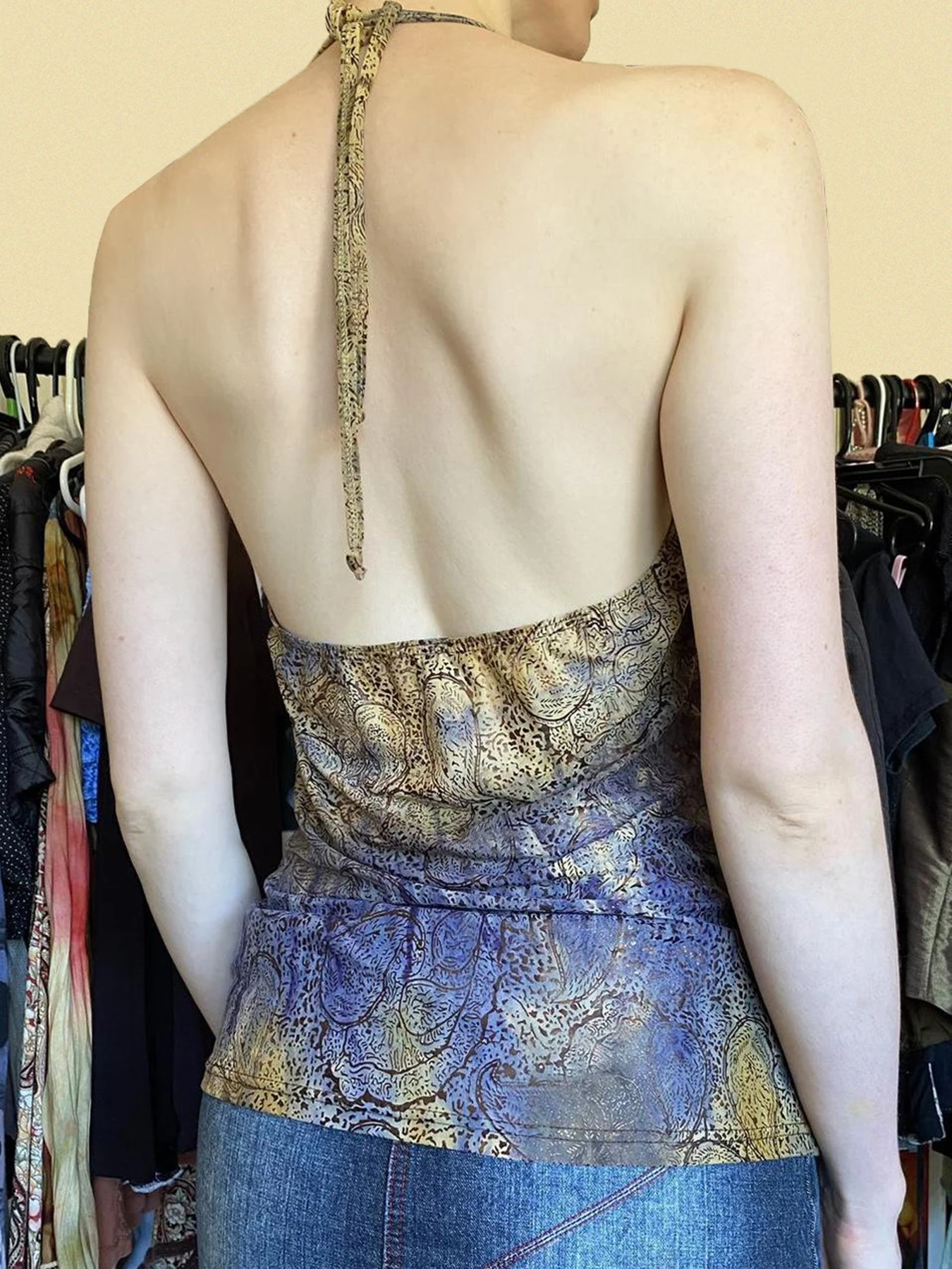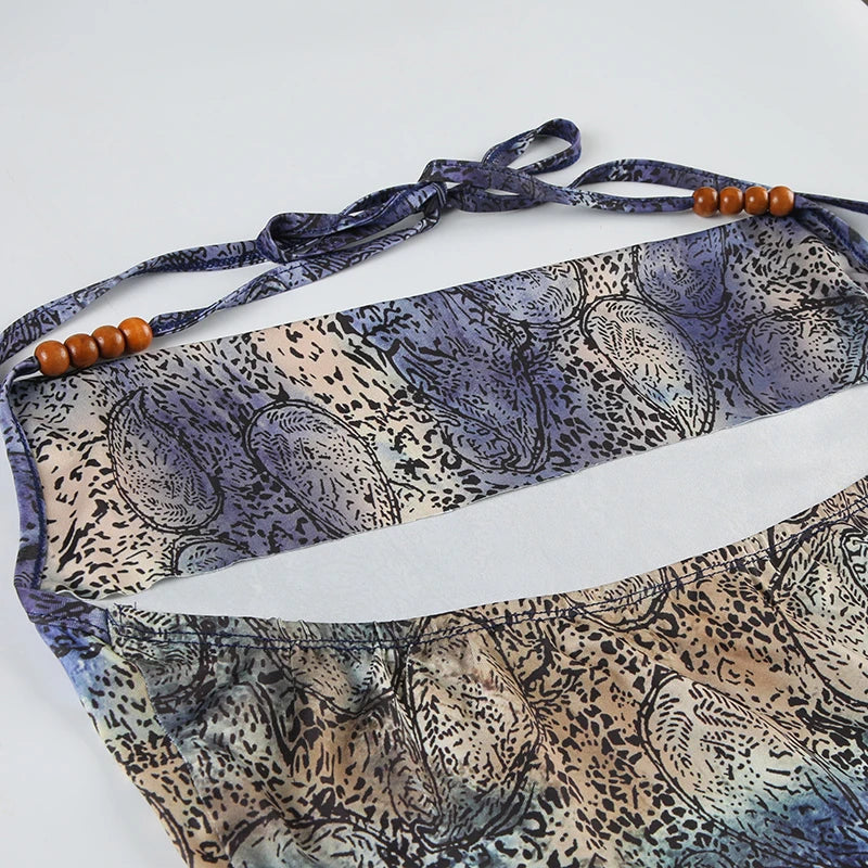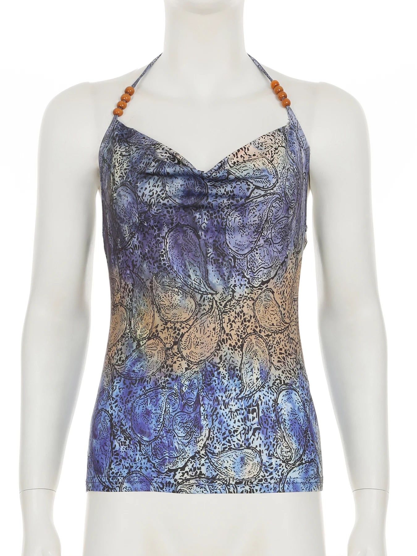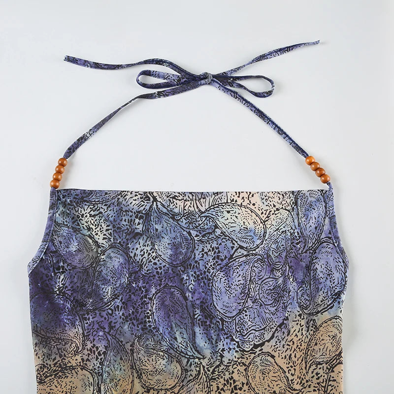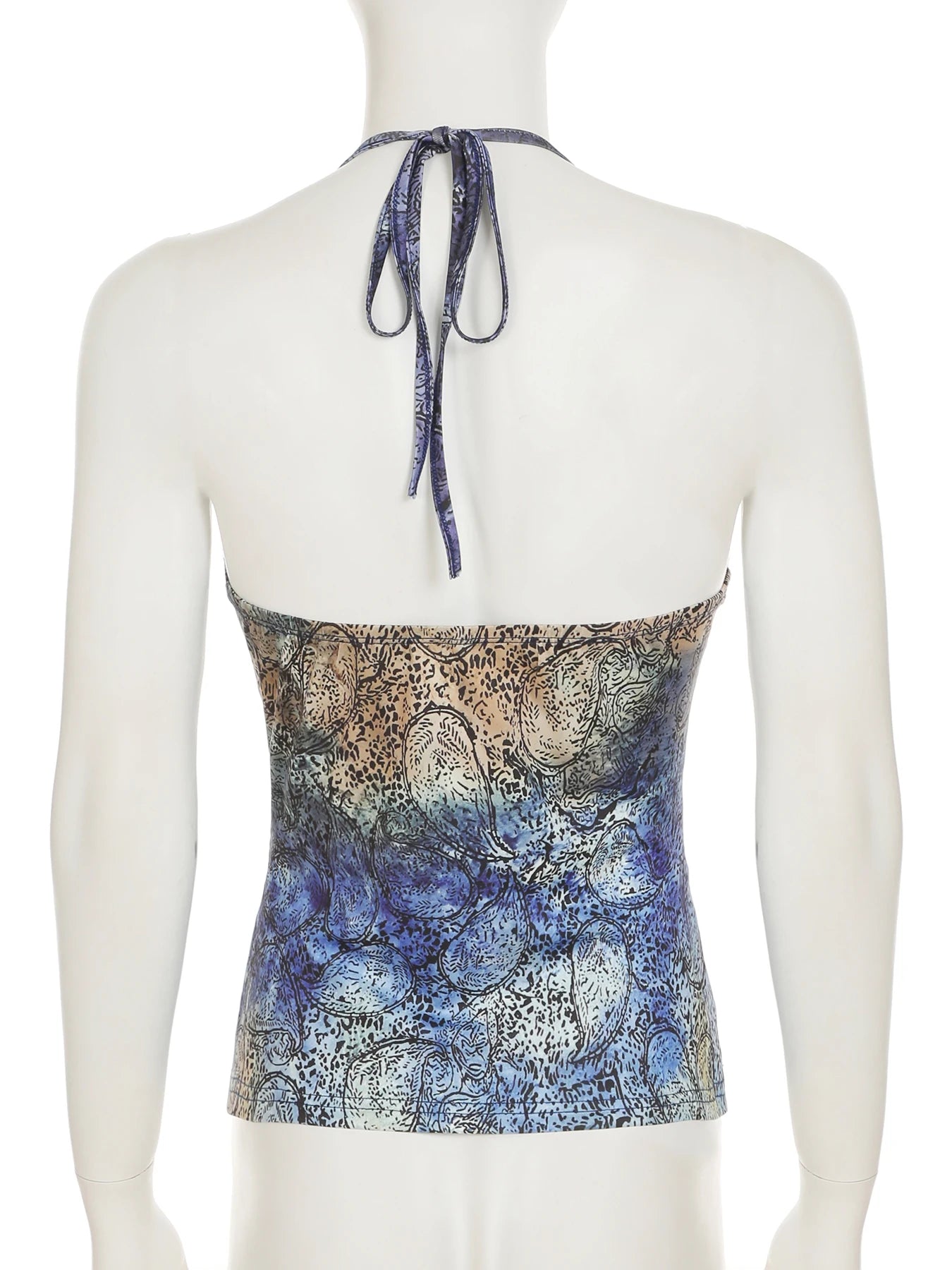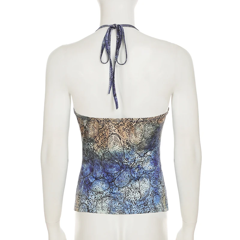 Cyflymder Vintage Printed Backless Halter Top Sexy Slim Deep V-Neck Sleeveless Tank Tops Women Summer Fashion Streetwear Lady