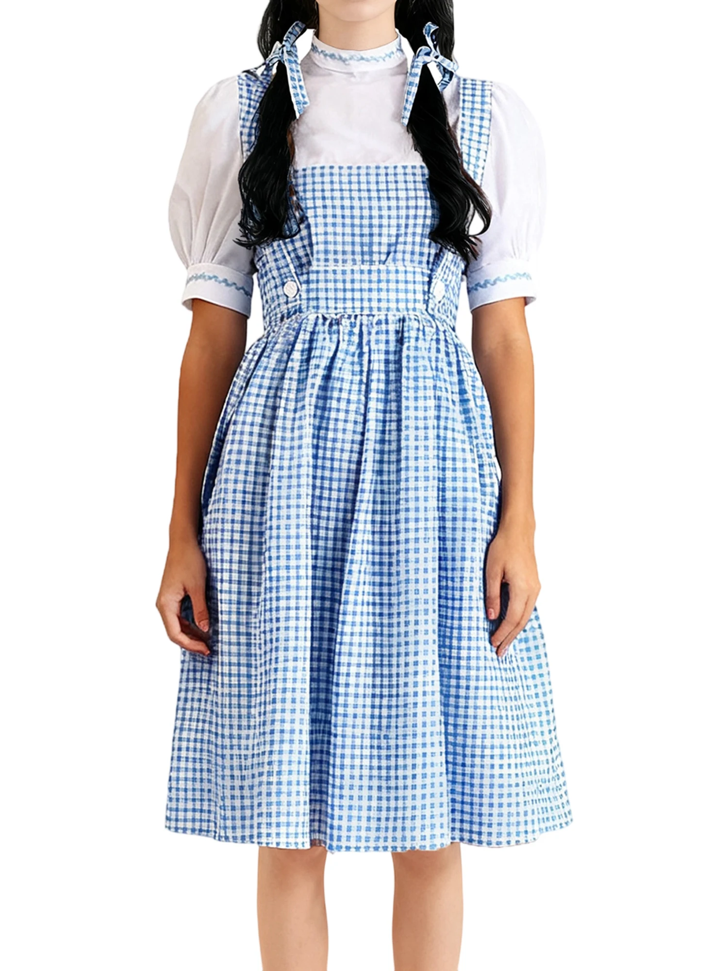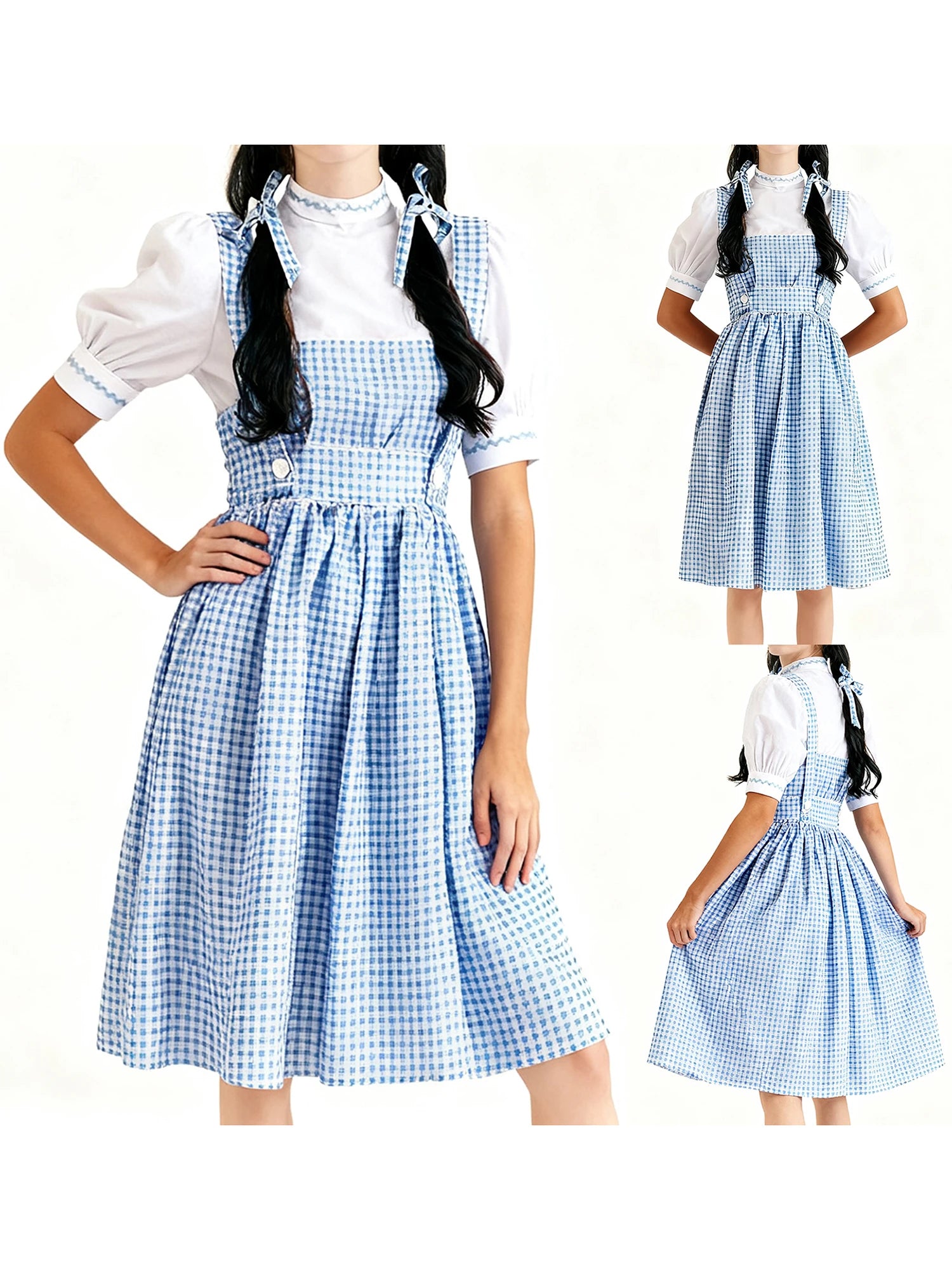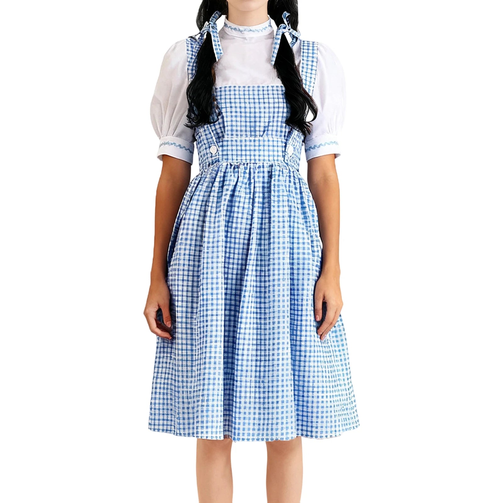 Cyflymder Vintage Retro Halloween Costume Women s Plaid Print Sleeveless Dress Cosplay Outfit with Long Tops