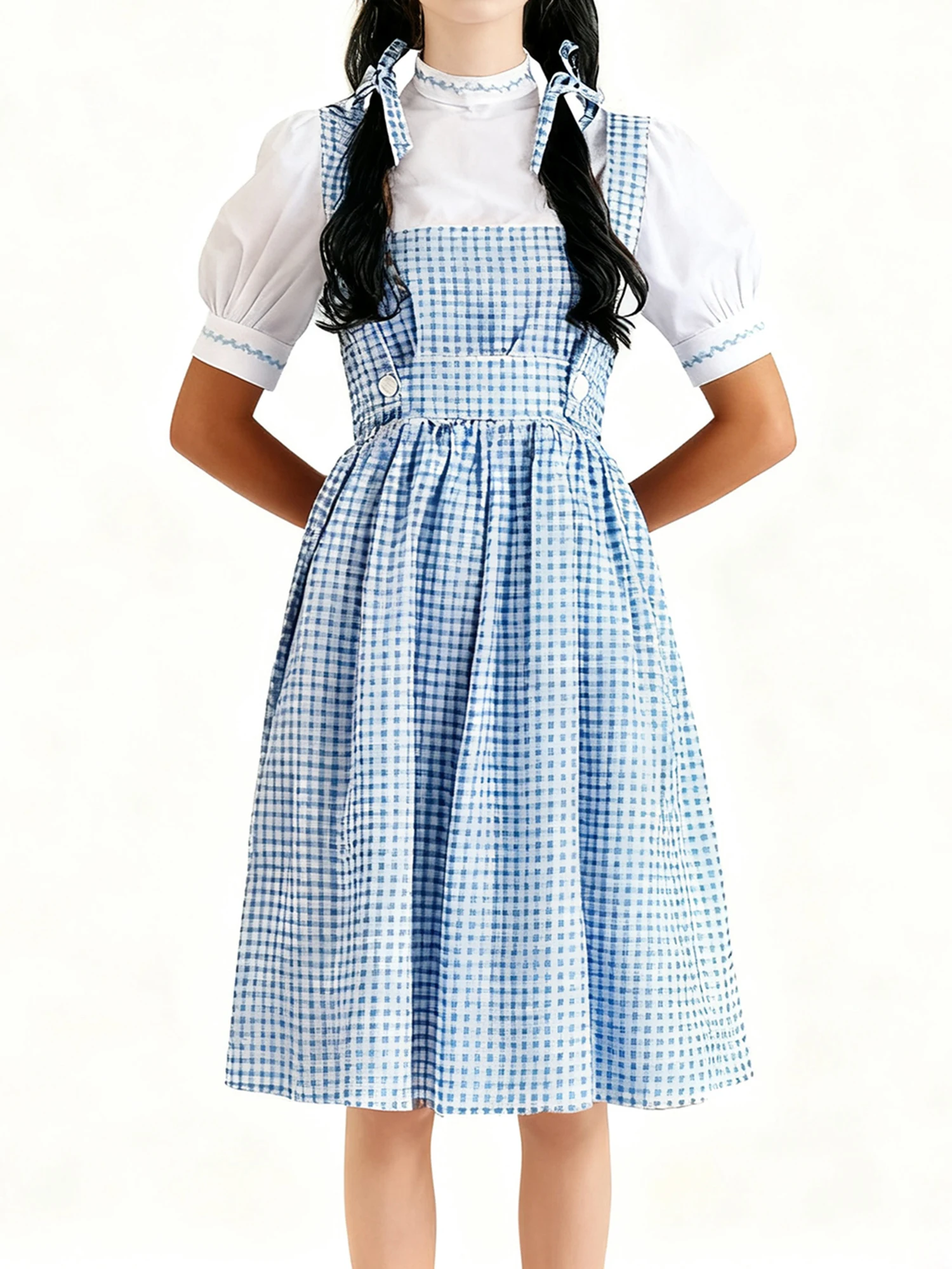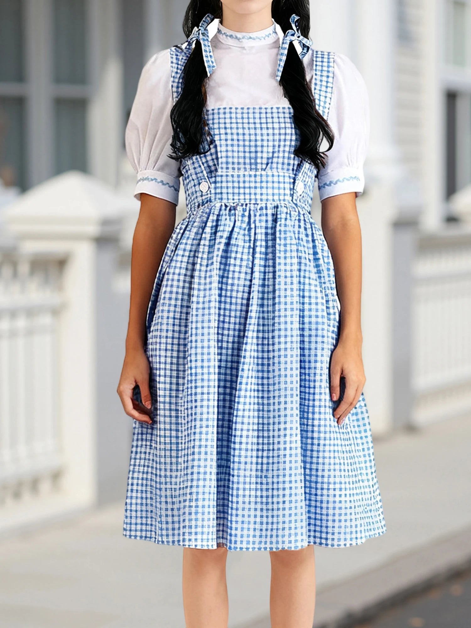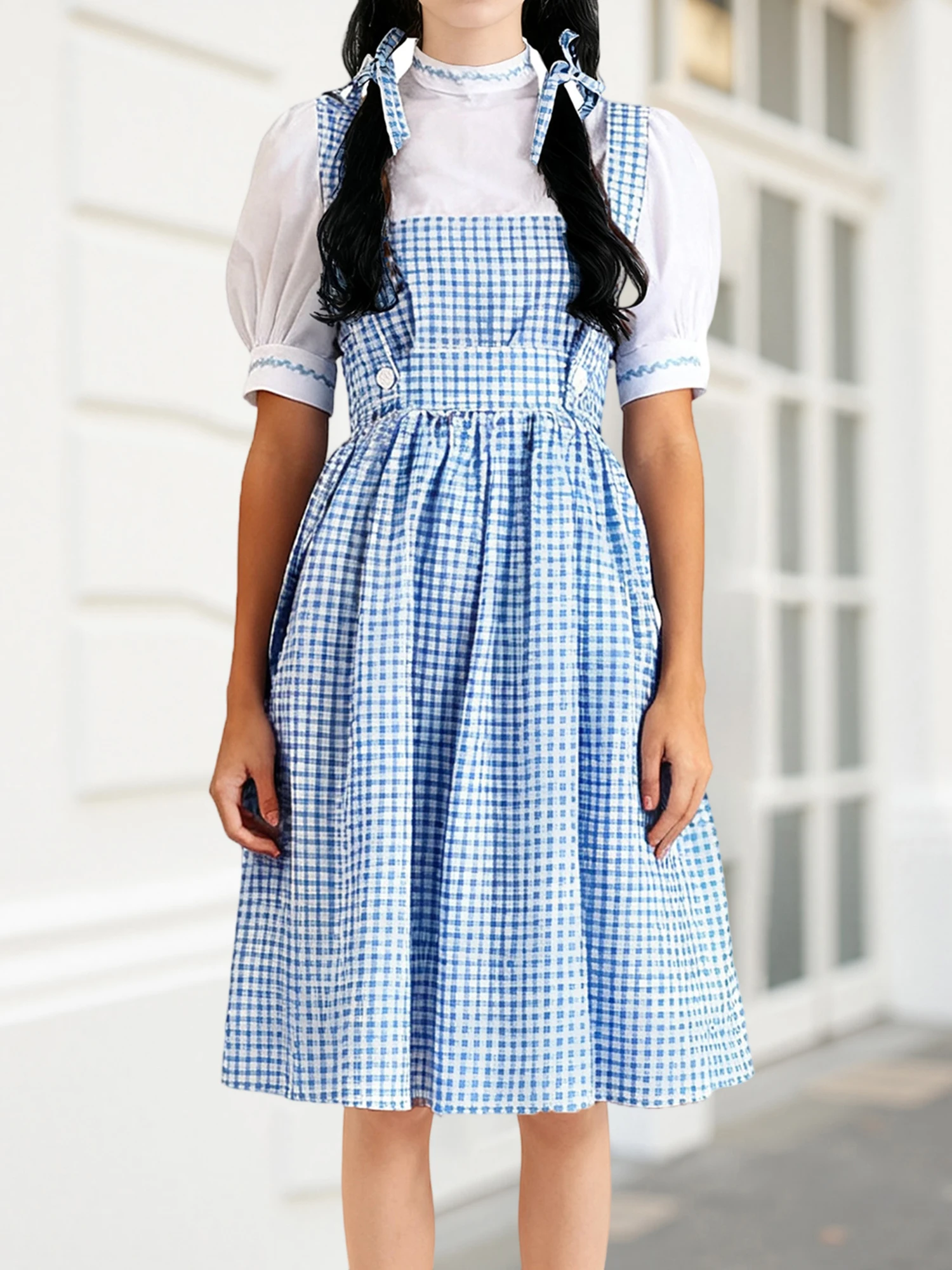 Cyflymder Vintage Retro Halloween Costume Women s Plaid Print Sleeveless Dress Cosplay Outfit with Long Tops