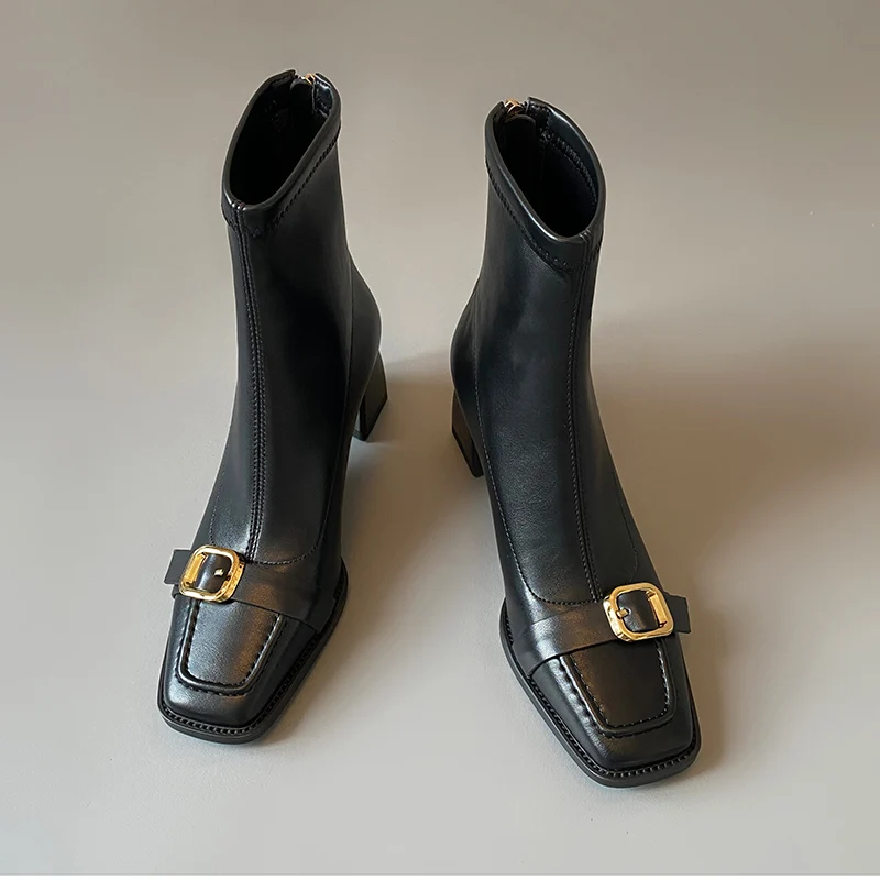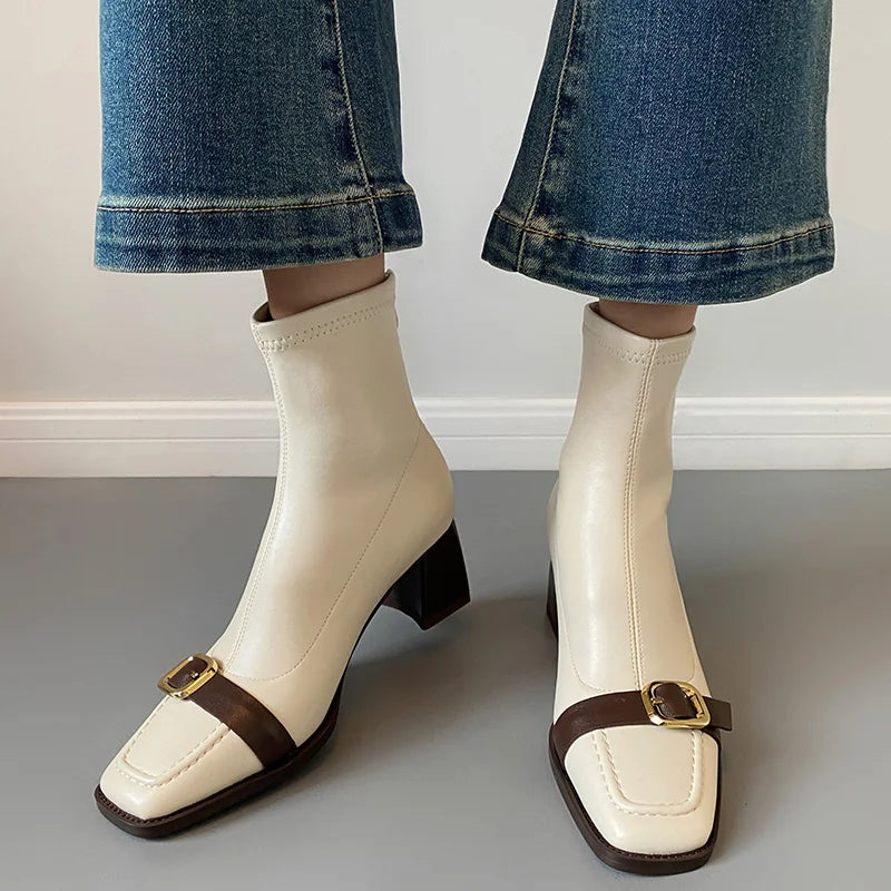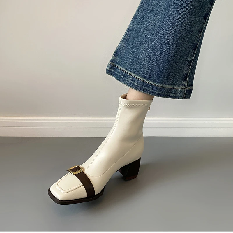 Cyflymder Vintage Thick Heel Woman Ankle Boot Fashion Belt Buckle Ladies Elastic Slim Short Booties Autumn Winter Women's Shoes