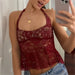 Cyflymder Vintage Transparent Lace Tees Sexy Backless Bandage Halter Crop Tops Women Chic Patchwork Tees Ladies Summer Clubwear