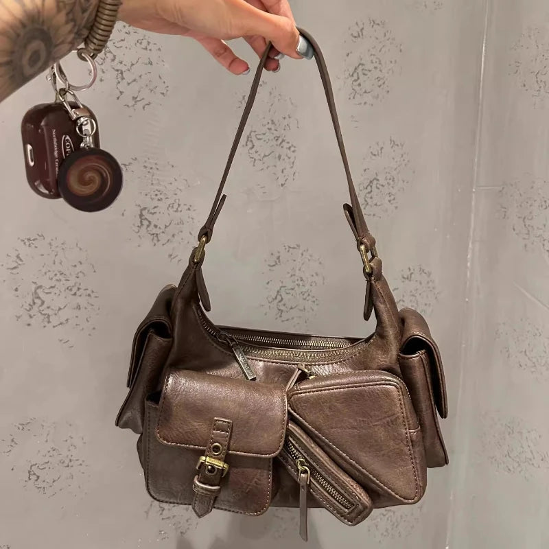 Cyflymder Vintage Y2k Aesthetic Zipper Pockets Underarm Bag Punk Cool Women Trendy Handbags Luxury Design Streetwear Female Shoulder Bags