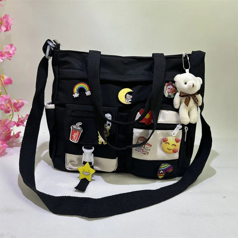 Cyflymder Waterproof Oxford Cloth Handbag Fashion Splicing Crossbody Bag with Badge Pendant Women Shoulder Bag Student School Bags Satchel