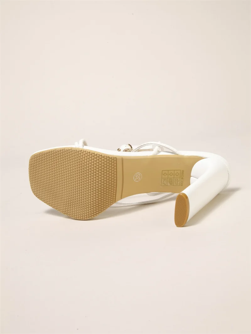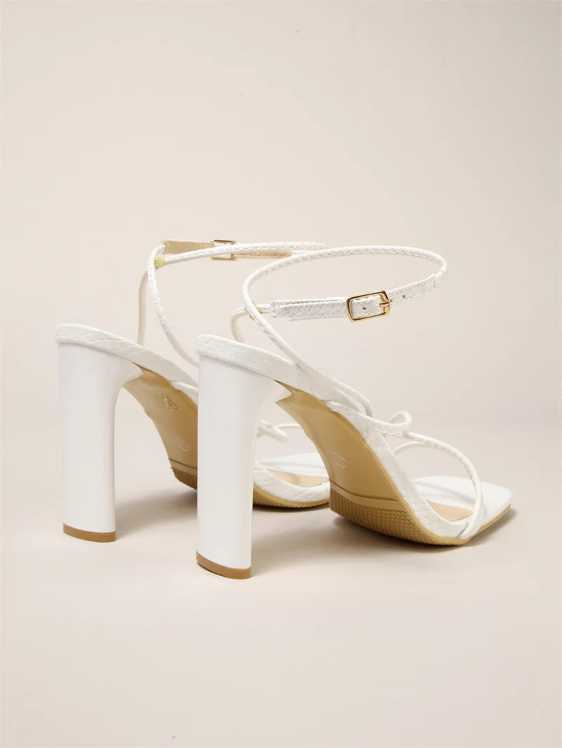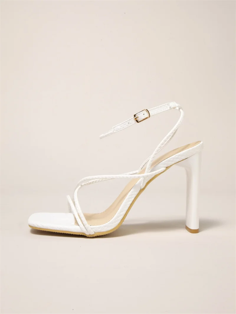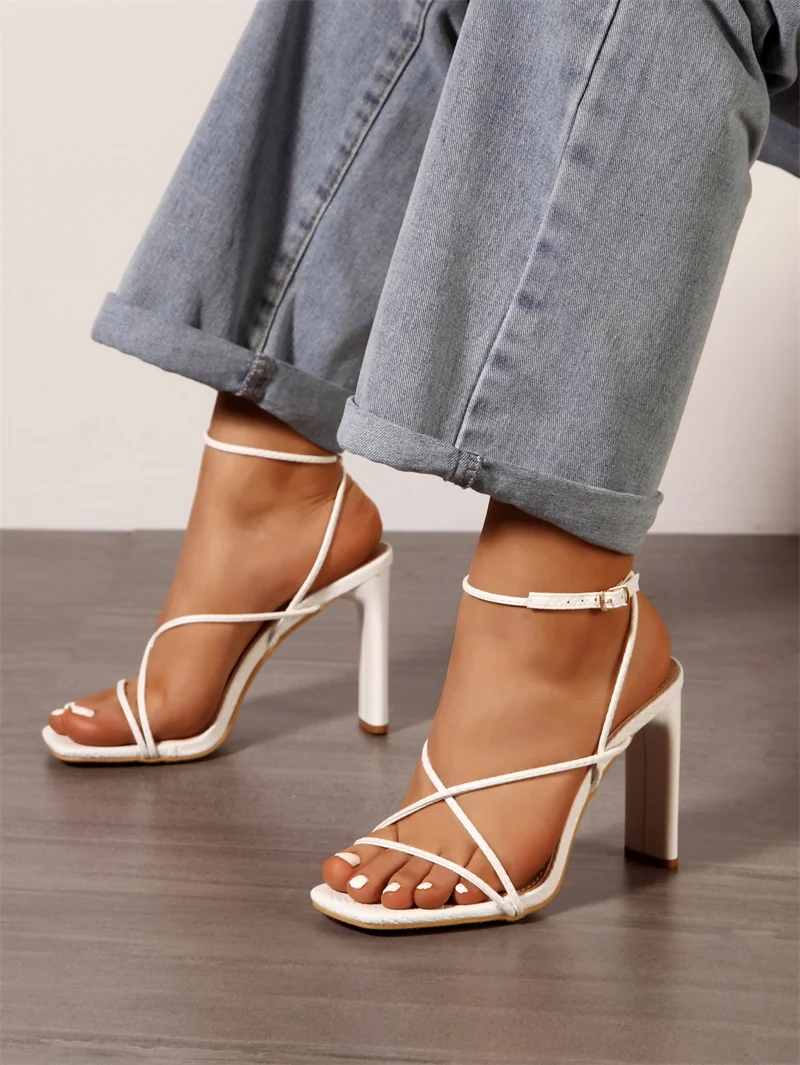 Cyflymder White Sandals For Women Cozy Leather Narrow Band Square Toe Buckle Strap Ladies Shoes High Heels Gladiator Sandalias Mujer