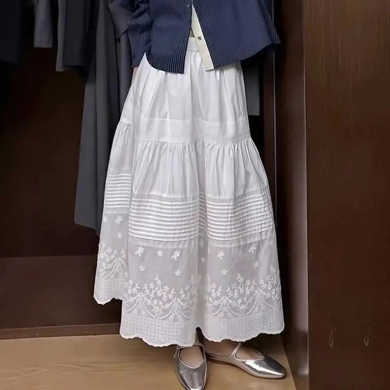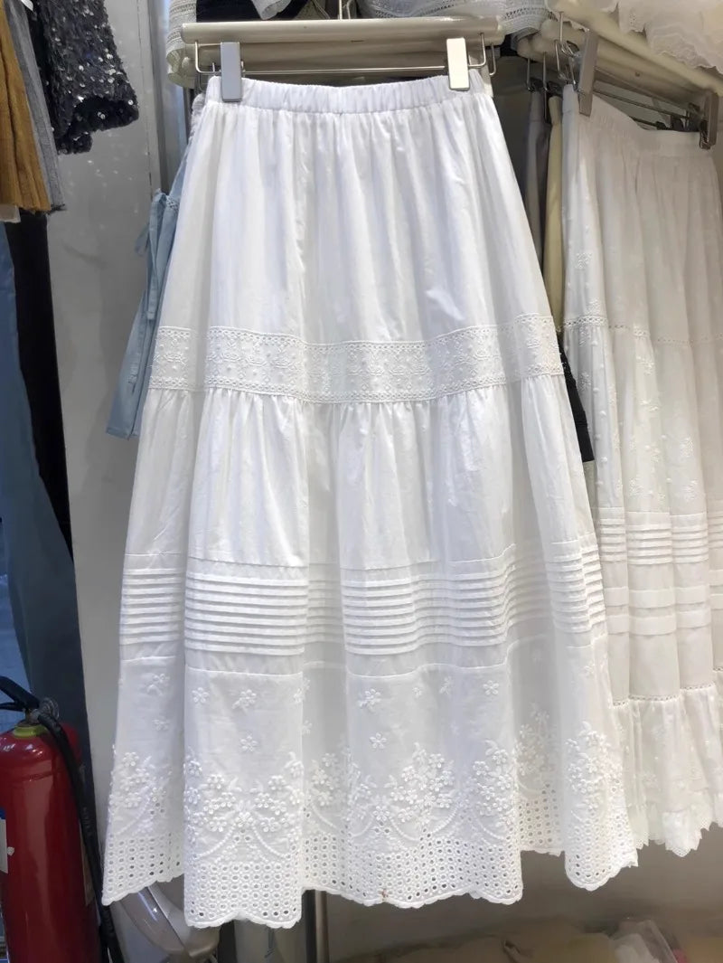 Cyflymder white skirt women cotton midi skirt spring summer skirt streetwear cotton elegant long skirts for women