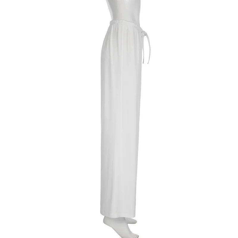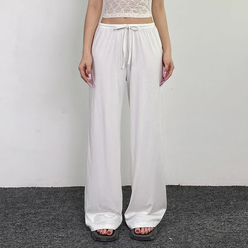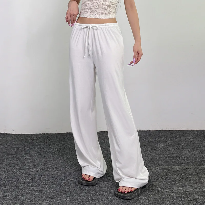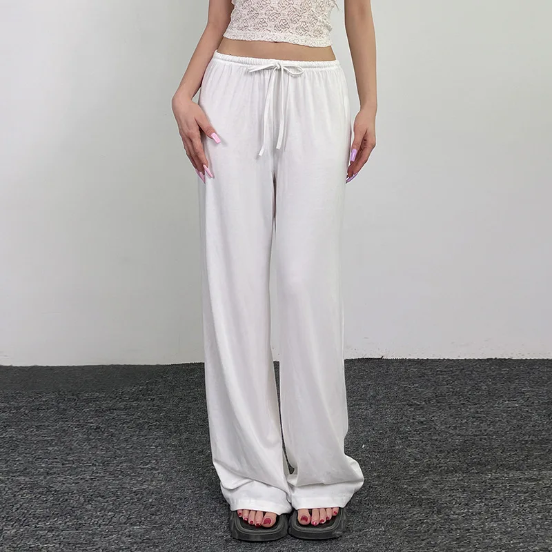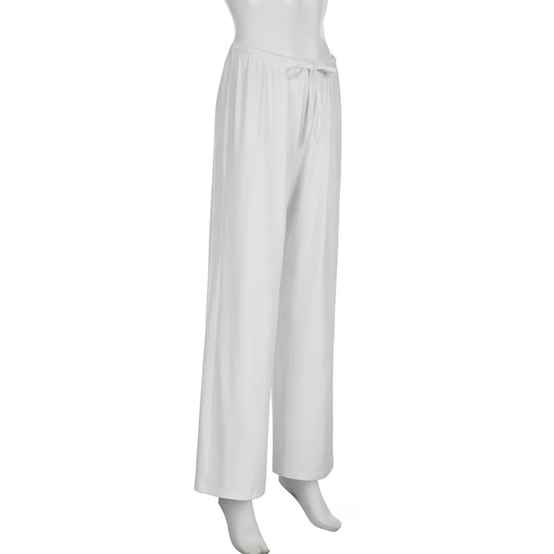 Cyflymder White Women's Casual Loose Straight Leg Sweatpants Full Length Homewear Pants with Shirring Basic All-Match Trousers