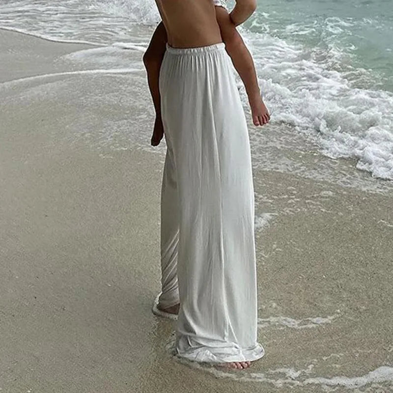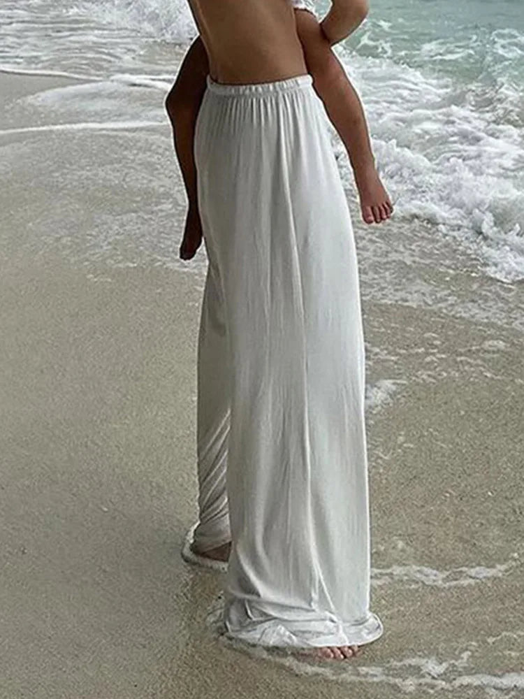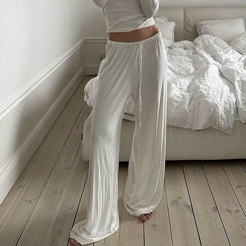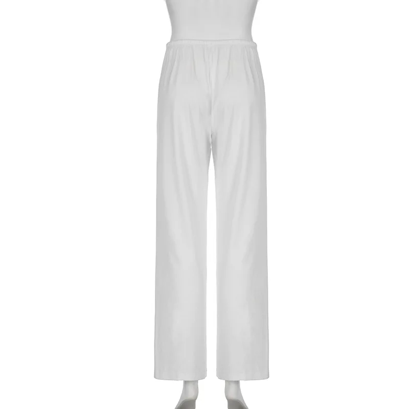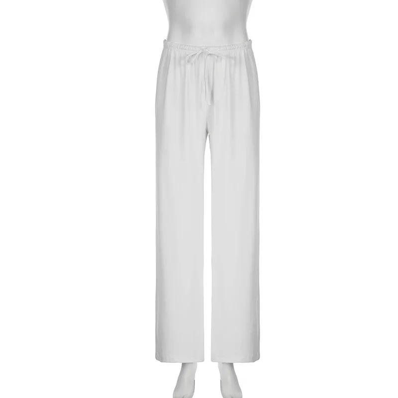 Cyflymder White Women's Casual Loose Straight Leg Sweatpants Full Length Homewear Pants with Shirring Basic All-Match Trousers